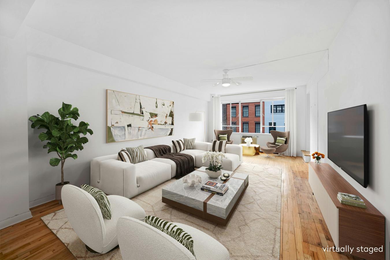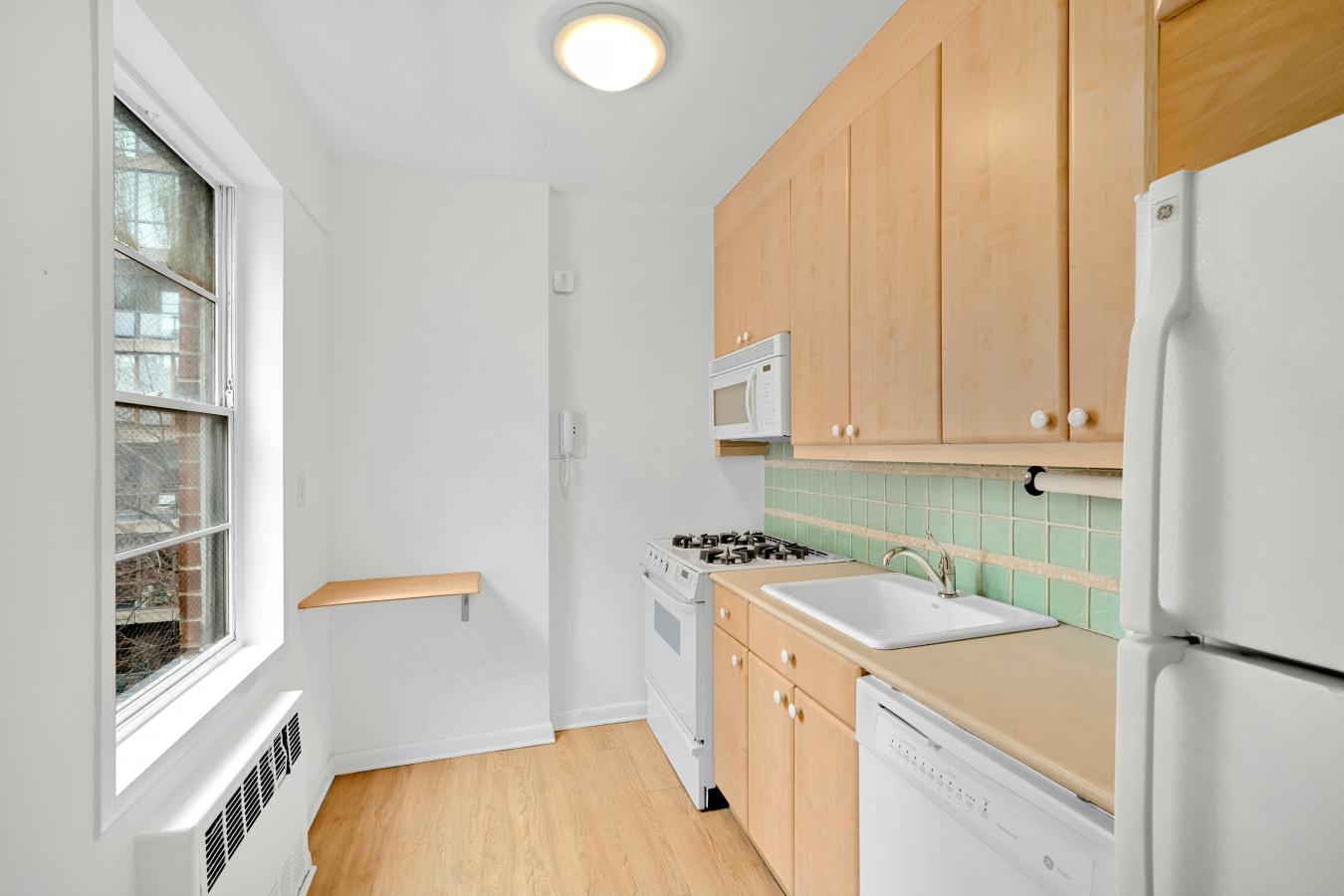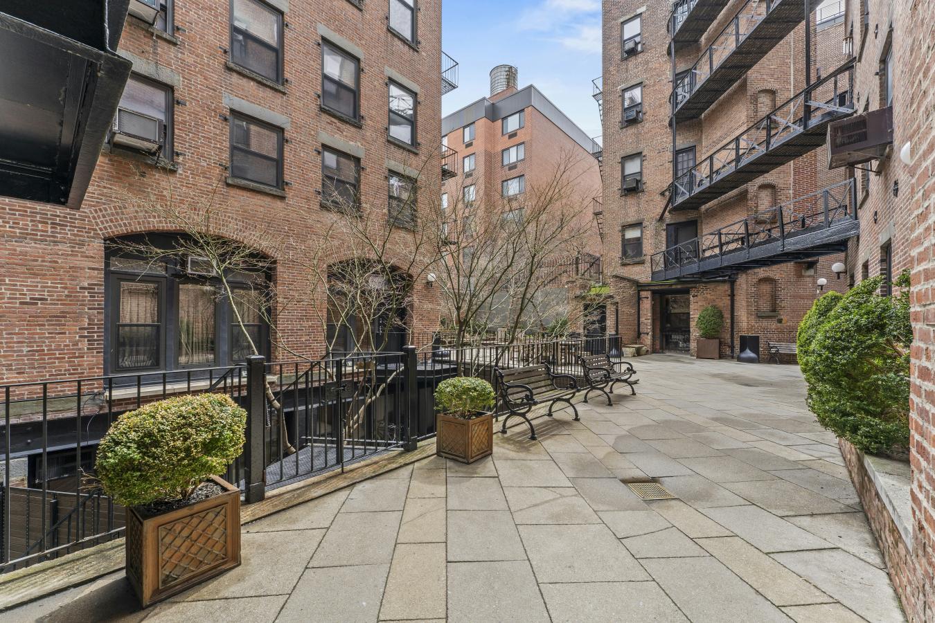 Large south-facing one-bedroom with private terrace. Apartment 5C in this coveted co-op in Greenwich Villages "Gold Coast" is a rarely available line offering an oversized living room with access to a private terrace overlooking the First Presbyterian Church spire. Entering the apartment is a generous foyer with two coat closets and a linen closet. The living room can easily accommodate a combination of seating spaces before reaching magnificent casement windows bringing in extraordinary sunlight. From the living room, you access a private terrace at treetop level with views of the historic village architecture. The primary bedroom is adjacent to the living room with two closets and south-facing casement windows looking onto your private terrace. The bathroom was recently renovated for ease of wheelchair movement with a threshold-less shower area and is accessible from either the primary bedroom or the entry foyer. There is a linen closet for abundant storage in the bathroom as well. From the foyer, by turning in the opposite direction of the living room, you enter a dining room with a china closet and pantry closet. The dining room also has a west-facing window to bring in additional light. The efficient windowed kitchen is a galley style with full-sized appliances, including a dishwasher. This generously sized apartment is ideal for entertaining, working from home, or a quiet respite from your busy New York City lifestyle. 15 West 12th Street is a full-service co-op with a 24-hour doorman staffing an elegant lobby and a live-in super. Just off Fifth Avenue, on one of the most picturesque tree-lined blocks in the city, it is located between Washington Square Park and Union Square. This is in close proximity to myriad subway stations to ensure easy access with A/C/E, B/D/F/M, 4/5/6, N/Q/R/W, 1, and L trains. The pet-friendly building includes a gym, laundry room, storage units, and bike room. Subletting is allowed with restrictions. 75% financing; guarantors and pied--terre allowed on a case-by-case basis. An in-unit washer/dryer is permitted with board approval. A 2% flip tax is paid by the seller. This property is being sold in "as is" condition.