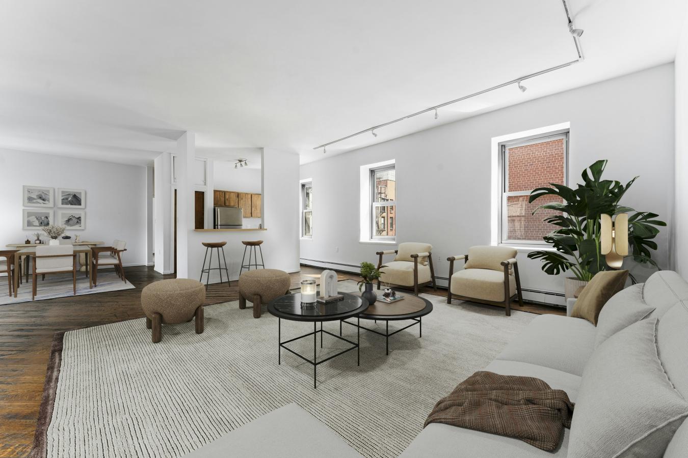 COVERTIBLE 3BR/2BTH U.E.S. POSTWAR CO-OP AWAITS YOUR PERSONAL TOUCH!! This spacious home featuring a classic floor plan with split bedrooms offers excellent flow. The living room has direct southern exposure through a panel window with street and cityscape views. The living room leads seamlessly to what is currently a formal dining room with lovely east city views and north to the buildings courtyard. This large space can easily be converted into a 3rd bedroom or a den. The windowed kitchen features two entrances and can be expanded to include additional storage and an eat-in countertop with stools. Both of the bedrooms are full-sized and can easily accommodate a king-sized bedroom set. The current primary bedroom has a large closet and an en-suite bathroom. The second bedroom has ample closet space, and the full bathroom is located just outside the bedroom. Additionally, brand new ultra-quiet windows have been installed throughout the apartment, and there are hardwood parquet floors throughout the apartment. This is a great saving for the next owner!! A full-size stackable washer/dryer can be installed with board approval. Beyond the residence, 201 East 79th Street has undergone a major transformation-the entire building has been reimagined! The original glazed white brick facade has been replaced with a striking, energy-efficient porcelain rainscreen system, which is supported by upgraded insulation, waterproofing, and structural enhancements-ensuring beauty, durability, and long-term value. Additionally, the lobby, all hallways, and the lobby-level outdoor garden have all been completely redone. For the first time ever, the new roof has been converted to a roof deck for shareholder use. All of the infrastructure has been updated. Improvements include elevator cabs, heating and cooling systems, laundry, garage, security systems, service entrance, and service area package storage room. All of this has made a strong financial building even stronger! 201 is a full-service, pet-friendly cooperative. Services include a 24-hour doorman, concierge, live-in resident manager, basement storage, bike room, shared laundry, and an on-site garage. Perfectly situated near Central Park, Museum Mile, and the citys finest dining and shopping, 201 offers elevated living in an exceptional location.