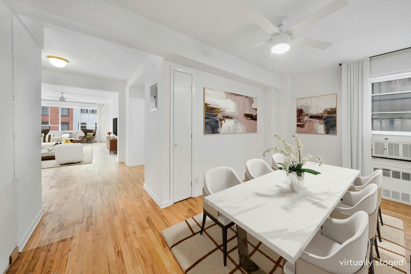Classic Elegance Off Park Avenue: Sophistication meets grand proportions in this rare eight-room sanctuary, perfectly positioned just off Park Avenue. At the heart of this four-bedroom, plus staff/guest room, and four-bathroom residence is an extraordinary 60-foot expanse of formal entertaining space.