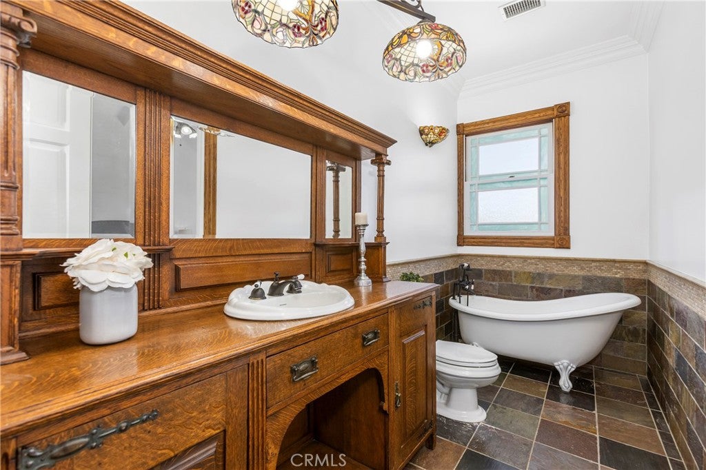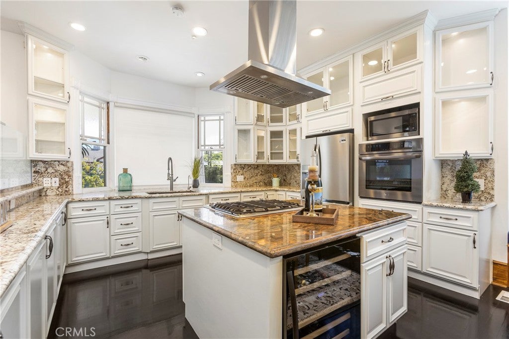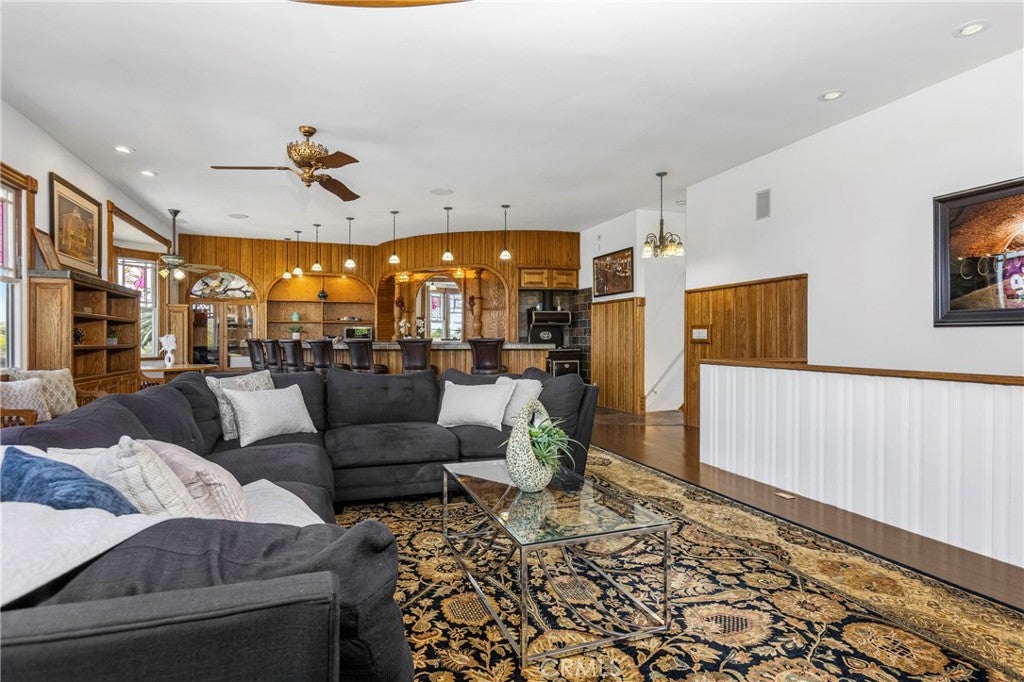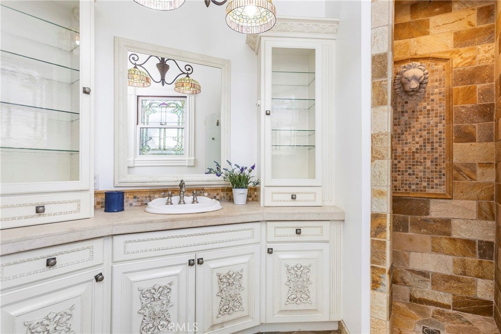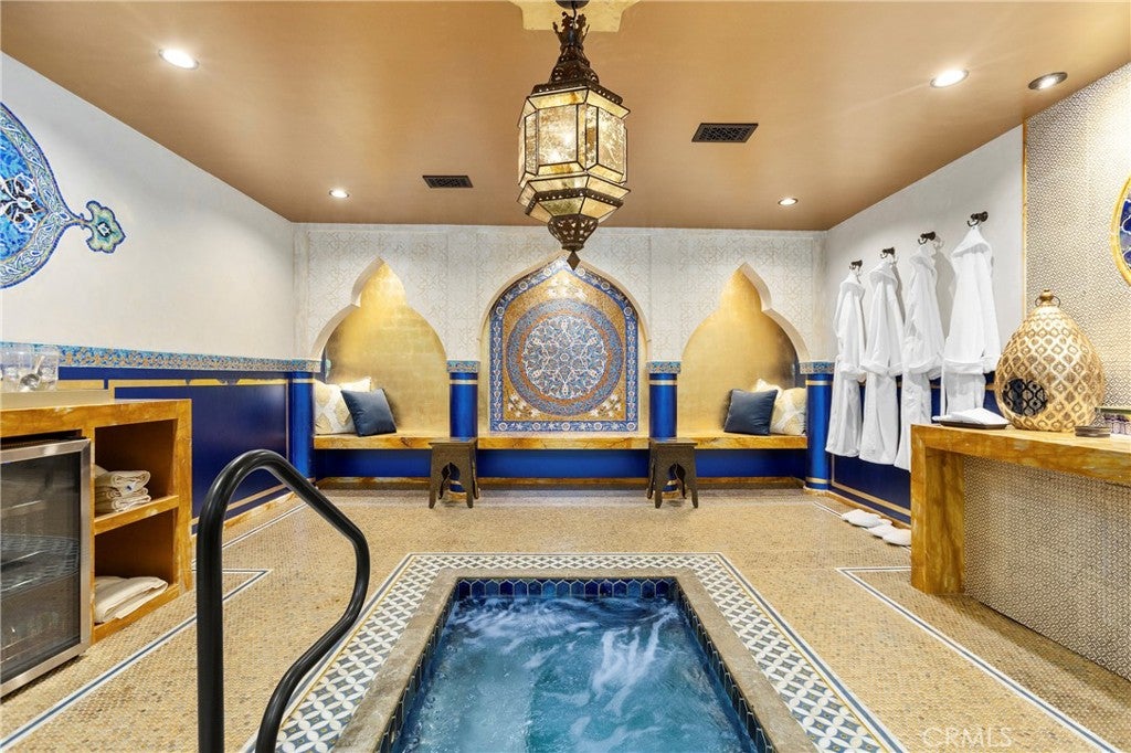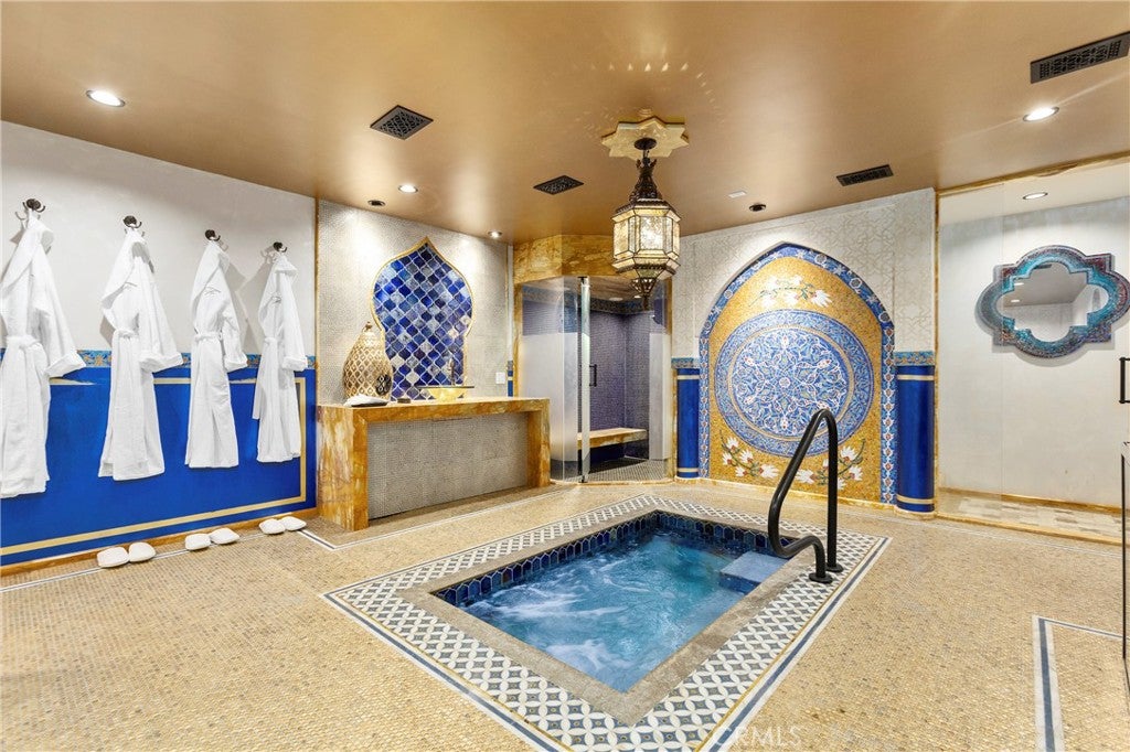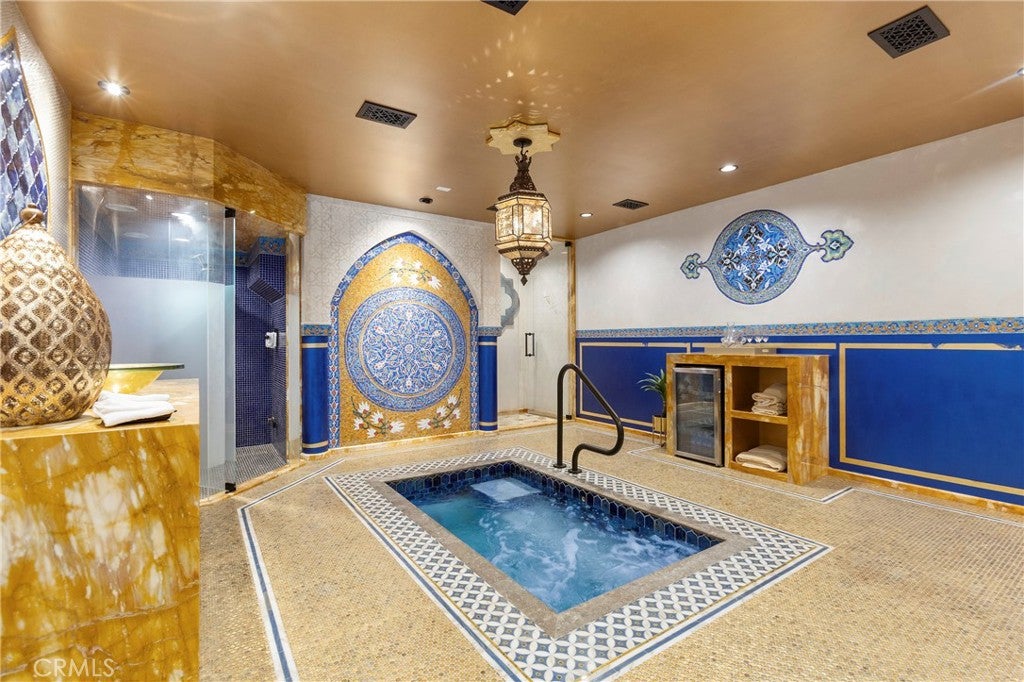 FIRST SHOWING: GRAND OPENING SATURDAY APRIL 4TH, 2026 FROM 1-4PMLocated in the heart of coveted Eastside Costa Mesa, this extraordinary four-story architectural residence stands as one of the neighborhoods most distinctive homes. Privately gated and designed with remarkable scale, the property blends character, craftsmanship, and unforgettable living spaces.Inside, soaring vaulted ceilings and walls of windows fill the home with natural light, while beautiful stained glass details add artistry and charm throughout. The updated chefs gourmet kitchen features granite countertops, stainless steel appliances, wine refrigerator, center island, and walk-in pantry, opening seamlessly to generous dining and living areas designed for both everyday living and entertaining.A spectacular rotunda entertainment room serves as the architectural centerpiece of the home, showcasing a dramatic double-vaulted ceiling with surrounding windows, custom wood paneling, a hand-painted sky ceiling, and a striking chandelier sourced from Caesars Palace in Las Vegas. The space is complemented by an impressive built-in bar designed for hosting and gatherings.The residence offers three spacious bedroom suites, each with its own private bathroom. The grand primary retreat features a fireplace, wood flooring, heart-motif stained glass windows, and a circular staircase leading to a private bonus lounge and patio.Additional highlights include a private Turkish hammam spa with steam room and jacuzzi, solar panels, and an expansive three-car garage including limousine-length parking and workshop space.This remarkable residence combines architectural drama, luxury amenities, and distinctive design, making it a truly iconic home in Eastside Costa Mesa.