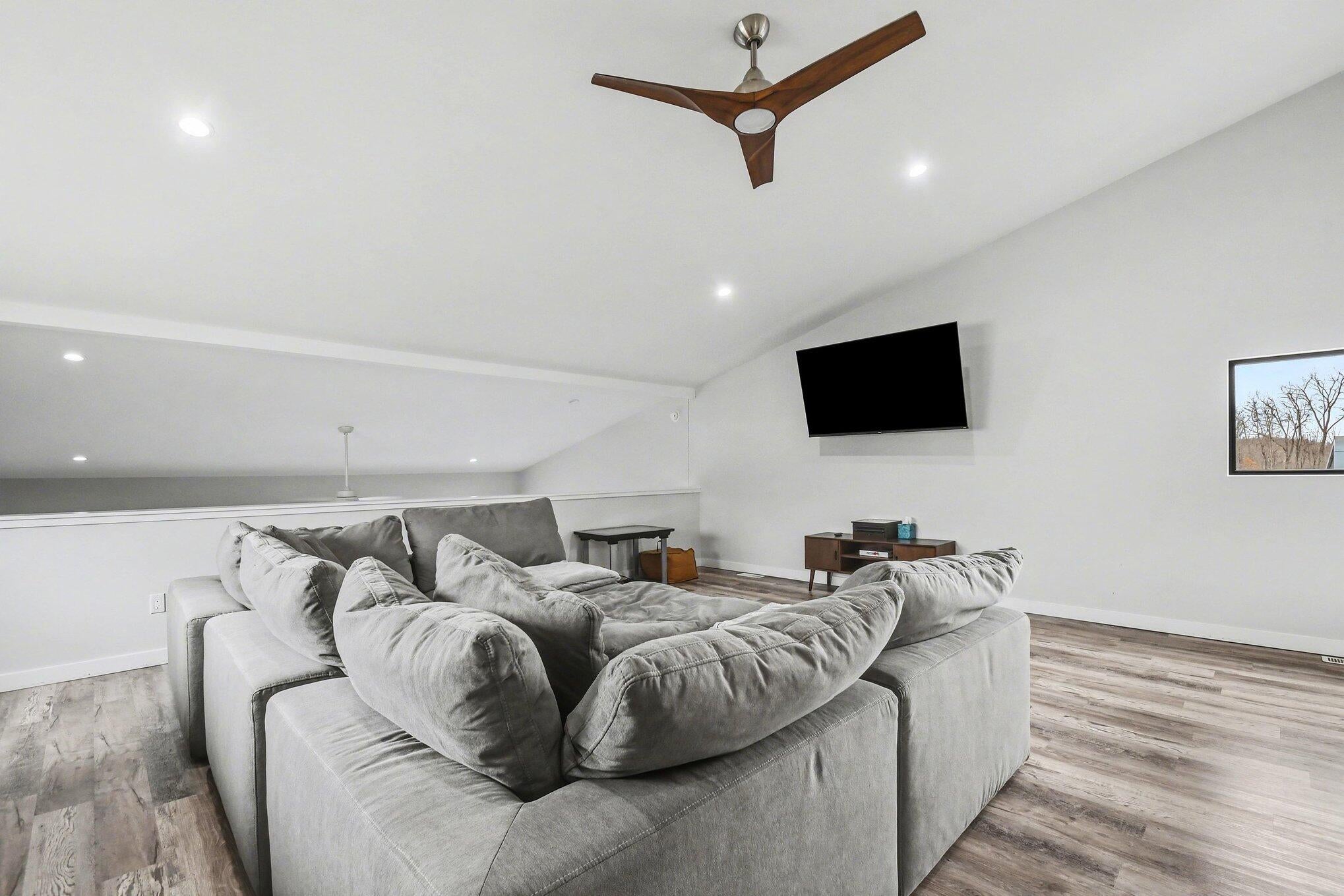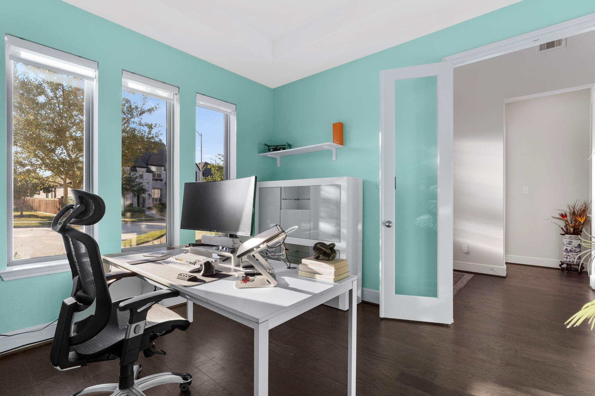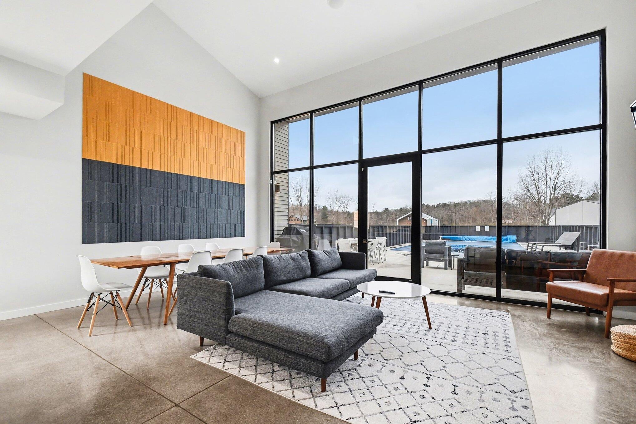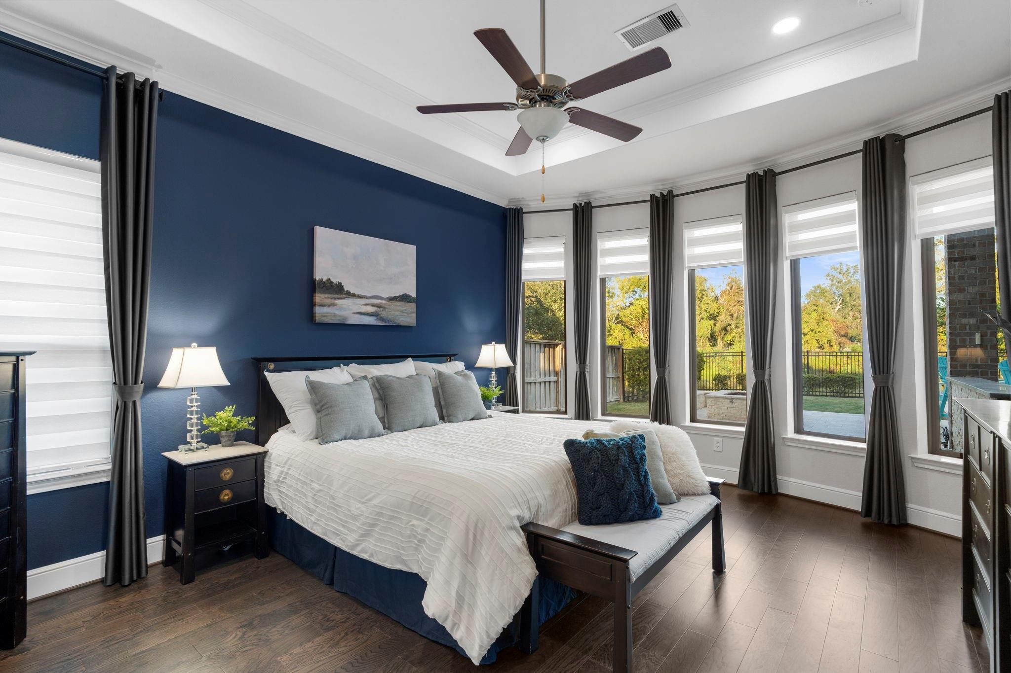 Gorgeous home on a quiet dead-end street, offering peaceful surroundings just minutes from everything. Expansive windows fill the home with natural light, highlighting the spacious step-down living room with a wall of floor-to-ceiling windows overlooking the serene backyard.