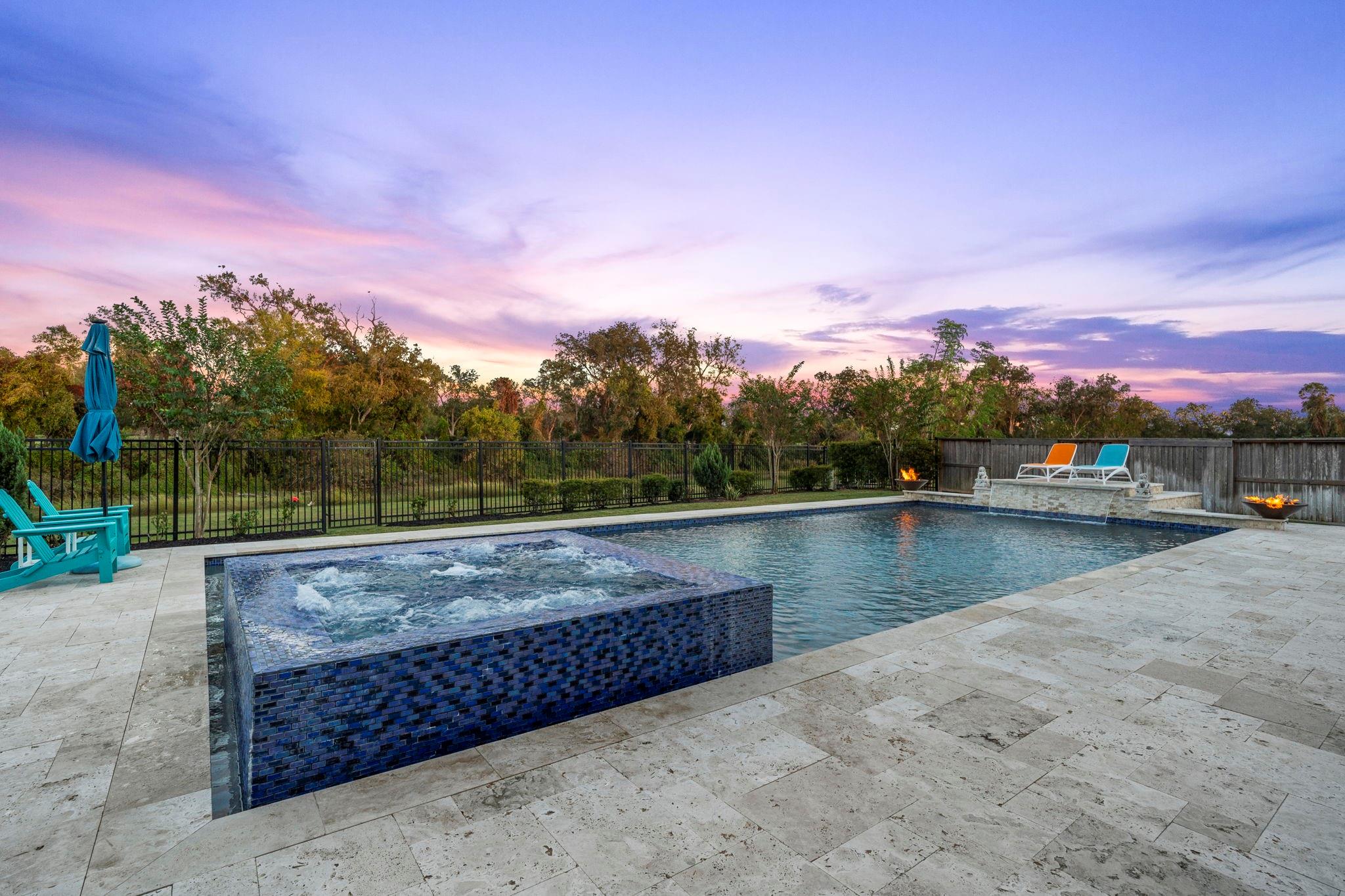 THIS PROPERTY HAS NO EQUAL! Situated on a private, 1/4 acre lot, enjoy your backyard oasis with no back neighbors or power lines overlooking Oyster Creek and the ultra-exclusive Shadow Hawk Golf Club! Travertine decking, heated pool and spa with exquisite glass tiling and quartzscape plaster, sun deck, waterfall and fountains, multiple fire features, and much more.