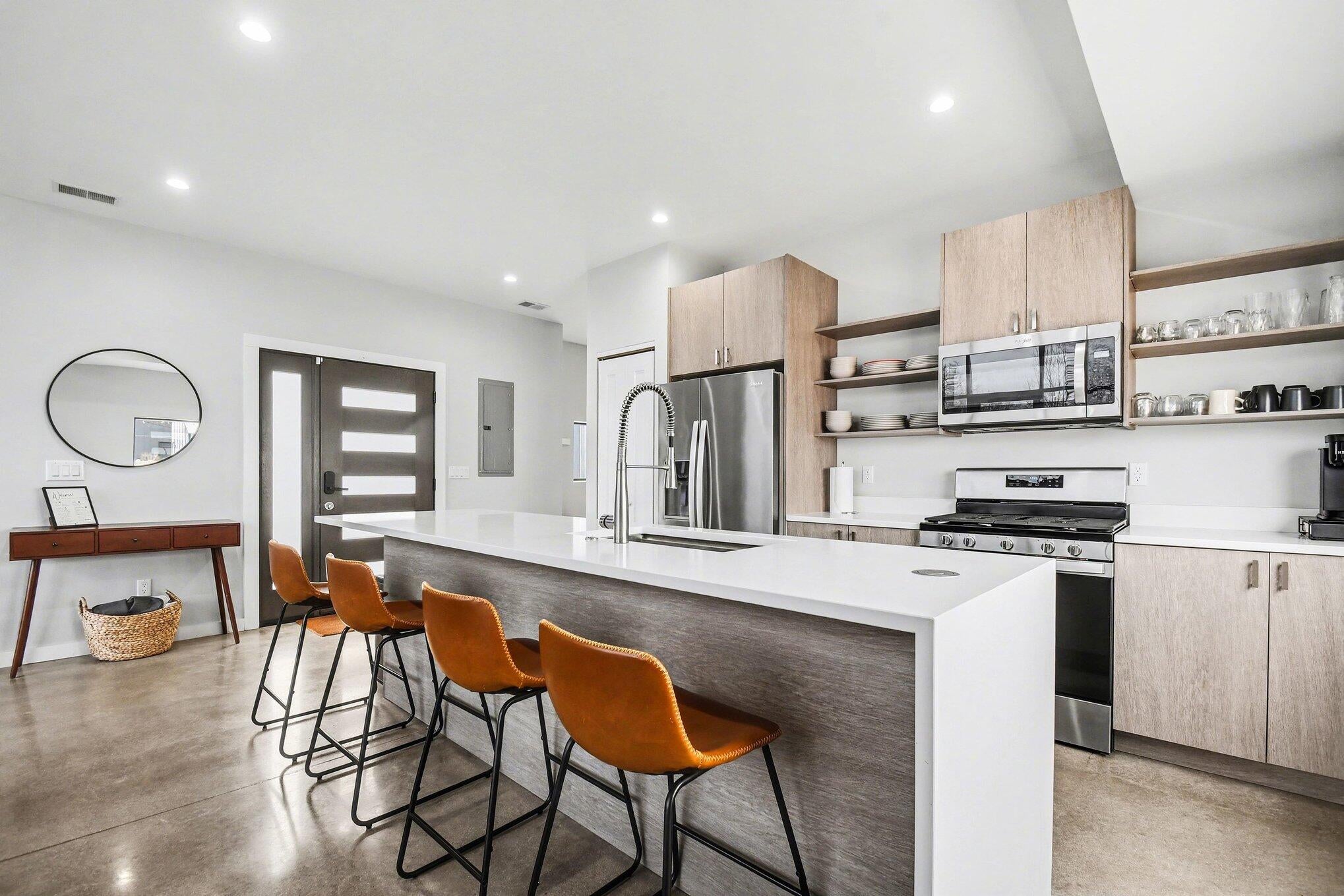 Modern elegance meets coastal serenity in this 4-bed, 3-bath contemporary masterpiece, set amid the coveted dunes of an exclusive upscale living. Clean architectural lines frame sun-soaked interiors, where an open great room flows effortlessly outside to a sparkling pool. The upscale kitchen features quartz counters and premium appliances, while 2 main-level bedroom suites offer flexible living.