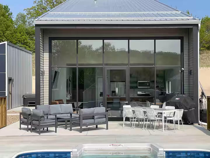 Modern elegance meets coastal serenity in this 4-bed, 3-bath contemporary masterpiece, set amid the coveted dunes of an exclusive upscale living. Clean architectural lines frame sun-soaked interiors, where an open great room flows effortlessly outside to a sparkling pool. The upscale kitchen features quartz counters and premium appliances, while 2 main-level bedroom suites offer flexible living. Upstairs, the luxe primary family room retreat boasts balcony views of the pool, joined by two generous guest rooms with Jack & Jill bathroom. A rare 3-car garage provides ample space for beach toys and vehicles. Sophisticated, low-maintenance, and steps from natures playground, this home delivers the ultimate coastal lifestyle. Currently set up to sleep 14. Being sold turnkey.
