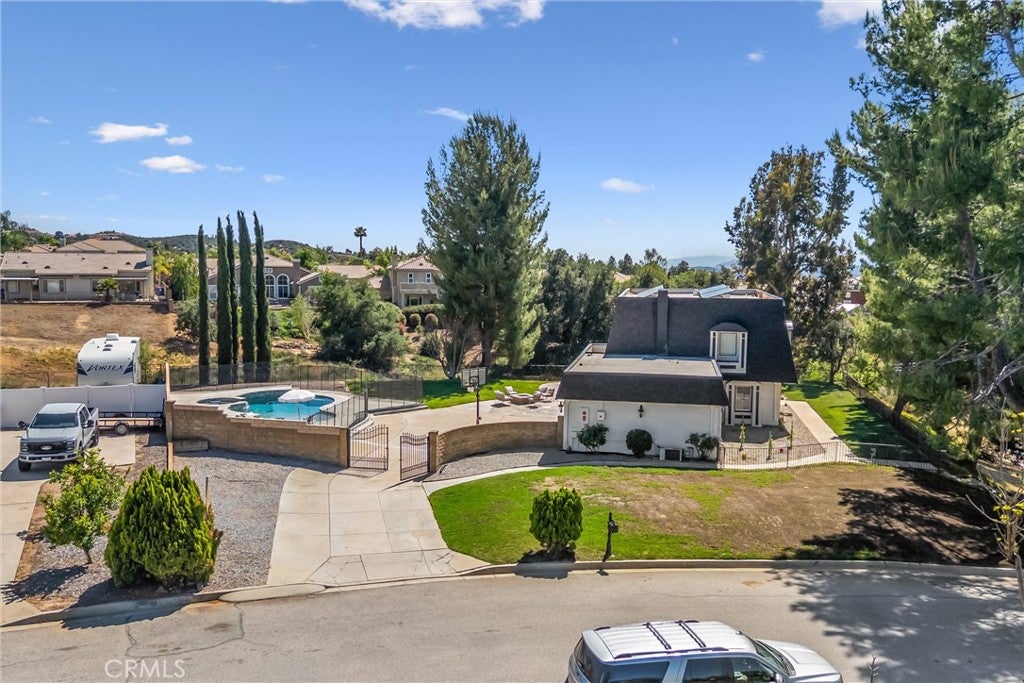 PANORAMIC VIEW HOME ON 1/2 ACRE LOT with pool, fire pit and OWNED SOLAR! This two story home features a classic mansard roof with sophisticated architectural design. Experience elevated living with sweeping mountain and canyon views on a rare oversized lot. Designed for entertaining and everyday comfort with owned solar providing energy savings and a private backyard retreat.