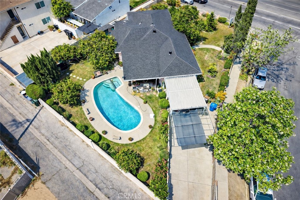 Well sought after North Hollywood area. Property is a corner lot with huge lot. Features: 3 BR, 2BA, DA, central air and heat, hardwood floors and tie floors, kitchen has granite countertops. Bathrooms have been remodeled. Garage was converted to a family room done with permits and has a carport. Huge backyard has patio and inviting pool great for entertainment.