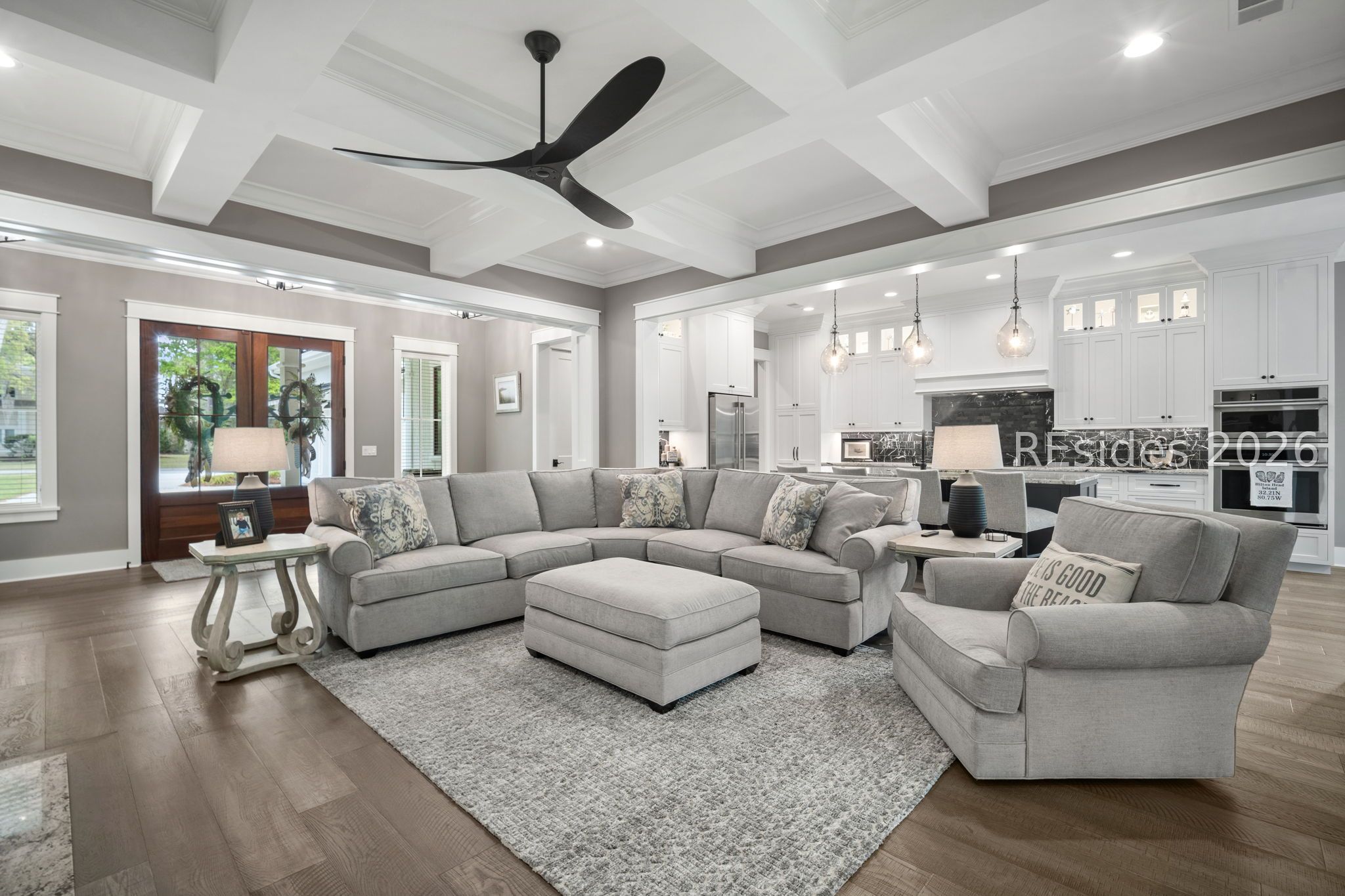 Luxury Living in Indigo Run - Broad Pointe Hilton Head Island. Experience the best of Lowcountry living in this nearly new (2024) custom-built waterfront home located in the exclusive Broad Pointe section of Indigo Run on Hilton Head Island. Lightly used as a second home and professionally designed by Kilmer Fine Interiors with some furnishings included, this property offers a rare opportunity for a move-in ready luxury retreat. Step inside to discover a bright, open-concept floor plan featuring 10ft ceilings, 8ft doors, custom moldings, coffered ceilings, and elegant built-ins throughout. The spacious living area flows seamlessly into a chefs kitchen with granite countertops, induction stovetop, wall oven, walk-in pantry, and an expansive dining area-perfect for entertaining. Enjoy peaceful tidal creek views leading to Broad Creek, enhanced by abundant natural light and oversized windows. The thoughtfully designed layout includes 4 bedrooms, 4 bathrooms, and a versatile upstairs bonus room with office area, along with walk-in attic storage. The primary suite is a true retreat, complete with a soaking tub, large walk-in shower, and spa-like ambiance. Outdoor living shines with a welcoming front porch and a screened, covered rear patio overlooking a private saltwater pool - ideal for relaxing or entertaining year-round. Additional highlights include:3-car garage, gas Fireplace, professionally landscaped grounds, and custom high-end finishes throughout. Residents of Broad Pointe enjoy exclusive access to a community pool, spa, kayak storage, and a 500-ft pier with cabana on Broad Creek. Indigo Run also offers optional club and two world-class golf memberships (The Golf Club & Golden Bear). Located just minutes from the beaches of Hilton Head Island and the shops, dining, and entertainment of Shelter Cove Harbour & Marina, this home combines luxury, privacy, and convenience in one exceptional offering.