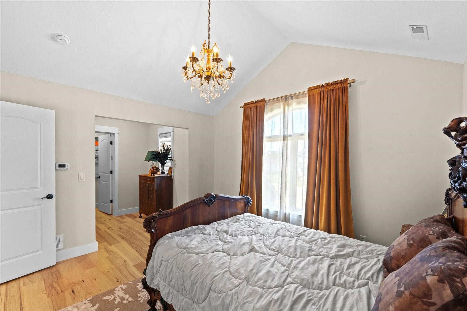 Stunning custom home offering over 5,500 finished square feet, perfectly positioned on a private, elevated lot with picturesque wooded views. This 5-bedroom residence blends timeless elegance with modern functionality, showcasing exceptional craftsmanship and thoughtful design throughout. The main level features gorgeous hardwood floors, abundant natural light, and expansive windows that frame the serene, wooded backyard. The spacious kitchen is both beautiful and functional, complete with a large center island, secondary prep sink, walk-in pantry, and new Bosch refrigerator and dishwasher-ideal for everyday living and effortless entertaining. The first-floor primary suite serves as a luxurious retreat, featuring a generous walk-in closet and a spa-like private bath with separate tub and shower. Upstairs, newly installed hardwood flooring continues throughout, complementing a thoughtfully designed layout that includes a private en suite bedroom, while two additional bedrooms are connected by a well-appointed Jack-and-Jill bath providing both comfort and a refined sense of privacy for family and guests alike. The finished walkout basement offers incredible versatility, complete with a kitchenette, spacious family room, rec area, additional bedroom, and a full bath. Perched on a hill with views of the wooded outlot, the setting feels exceptionally private and truly park-like. Additional highlights include geothermal heating for enhanced energy efficiency and year-round comfort. The whole house has been recently painted including all ceilings. A rare opportunity to own a beautifully updated home in a breathtaking setting.
