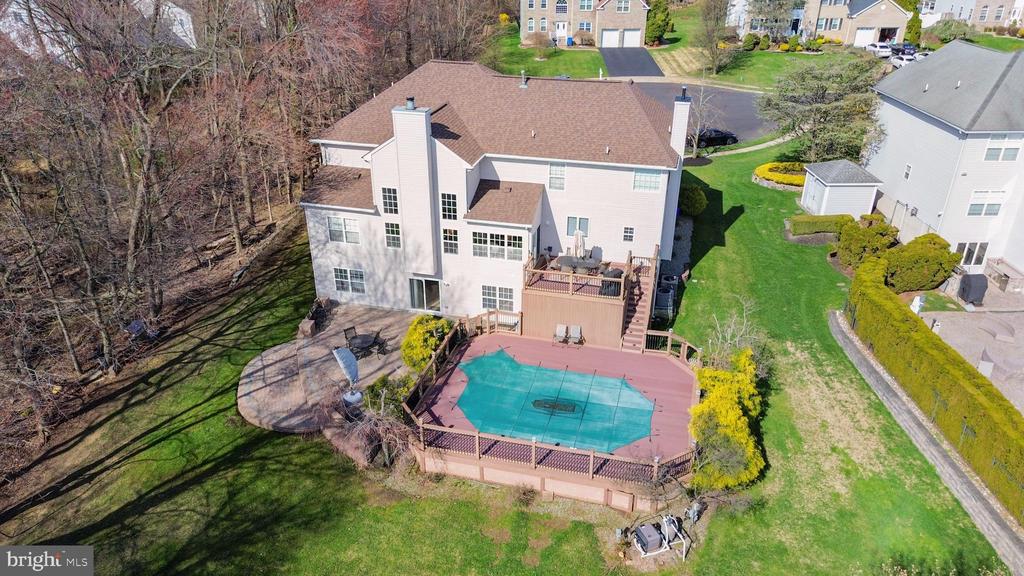 Welcome to this exceptional 5-bedroom, 4 full bath home nestled on a quiet cul-de-sac in the highly desirable Ridgewood Estates community of Monroe! Offering approximately 3,803 sq ft of beautifully upgraded living space, this home combines elegance, comfort, and functionality throughout. A rare first-floor bedroom with a full bath provides ideal space for guests or multi-generational living. The home features hardwood flooring and recessed lighting throughout, complemented by upgraded light fixtures including a stunning crystal chandelier in the foyer. The recently renovated kitchen (just 1 year old) is a true showstopper, boasting quartz countertops, 42-inch soft-close cabinetry, under-cabinet lighting, stainless steel appliances including a 6-burner stove, built-in microwave, refrigerator, and a stainless steel sink with a gooseneck faucet. Custom drapes and blinds add a sophisticated touch throughout the home. The family room offers warmth and charm with a wood-burning fireplace and custom mirror accent above. Step outside to your private backyard oasis featuring a wooded backdrop, paver patio, two-tier deck, and an above-ground pool with a saltwater system and gas heater—perfect for entertaining or relaxing. Additional exterior highlights include a paver front walkway, sprinkler system, and newer exterior lighting. The 2-car garage is fully equipped with insulated doors, two openers, two keypads, and built-in overhead storage. The finished walkout basement with 9-foot ceilings expands your living space with a wet bar area complete with granite countertops, ceramic tile backsplash, built-in cabinetry, and refrigerator, along with a media area with built-in TV, exercise room, private office, two unfinished storage rooms, and a full bath featuring a jacuzzi tub and separate shower. The laundry room has been upgraded with new vinyl flooring, built-in cabinetry, and a stainless steel sink with utility tub. Additional features include a central intercom system, a 3-year-old roof, and completely remodeled bathrooms throughout. This meticulously maintained home truly has it all—luxury, space, and an unbeatable location!