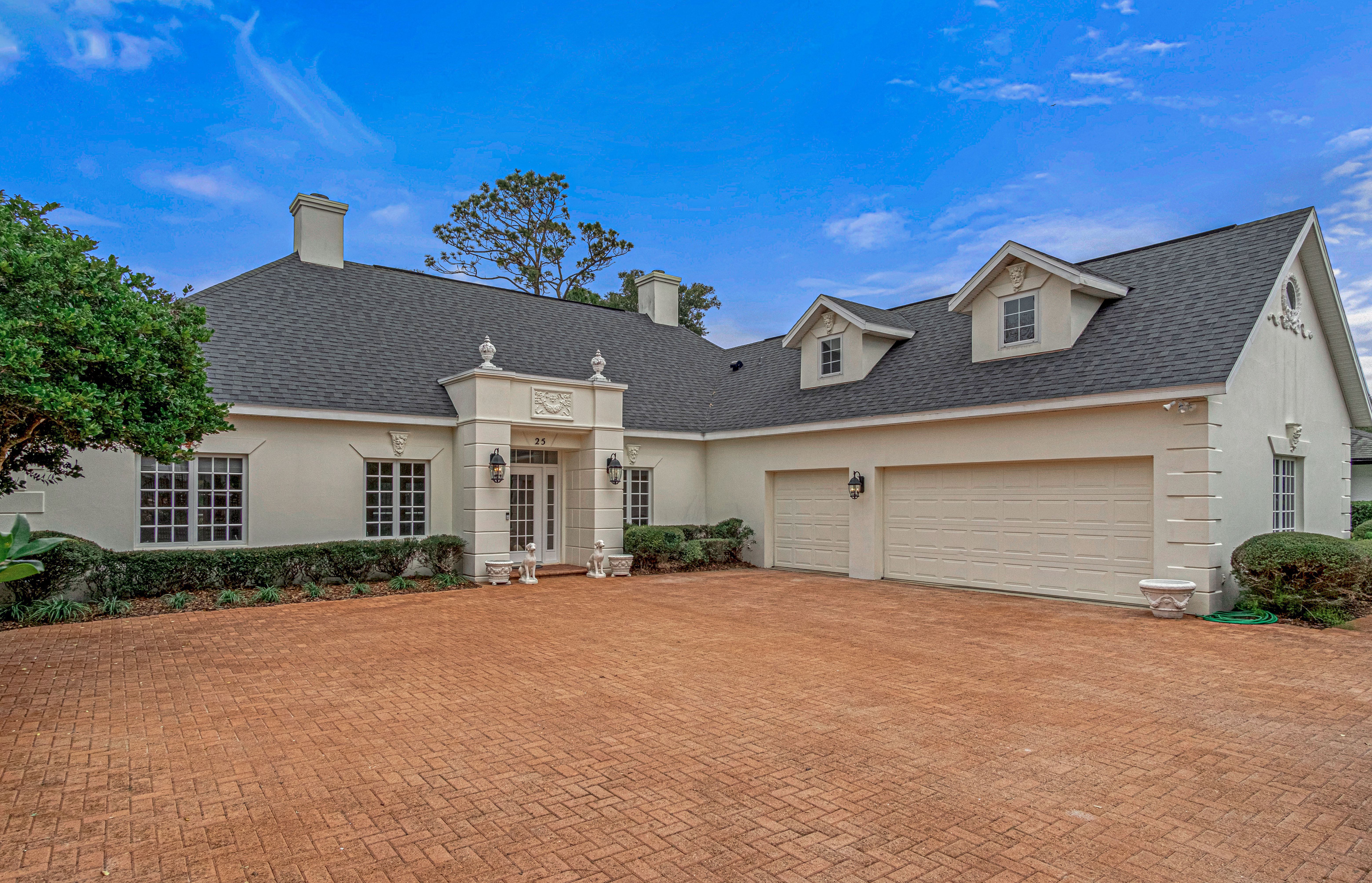 Luxury custom home with lush landscaping! On a quiet court, this stunning 4,000 square foot home overlooks the 9th fairway & serene pond beyond. Enjoy striking curb appeal with timeless Redwood exterior, lush landscaping & a circular driveway.