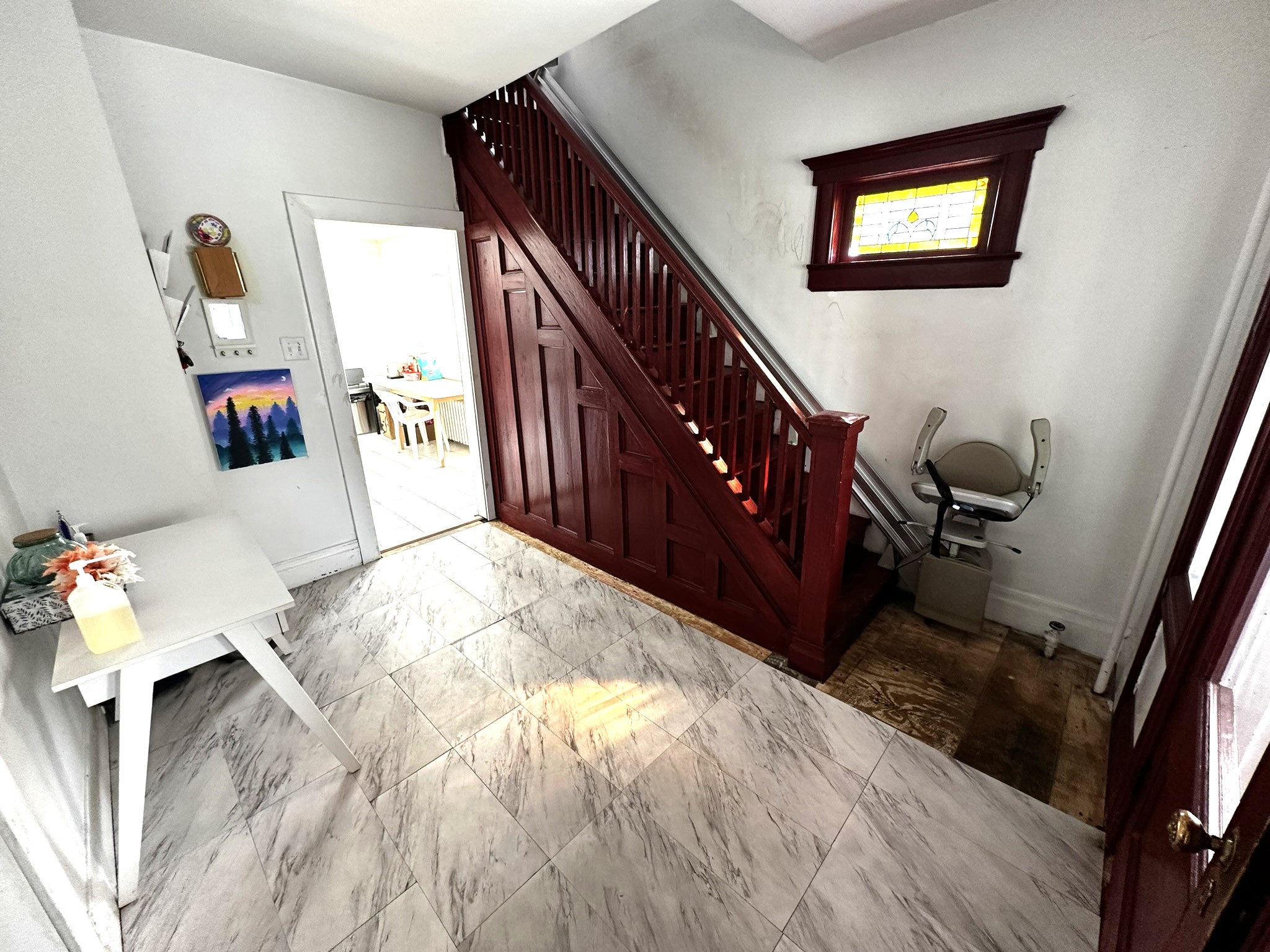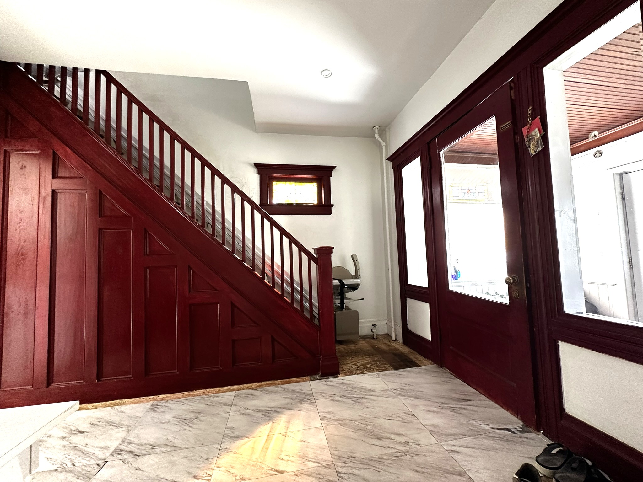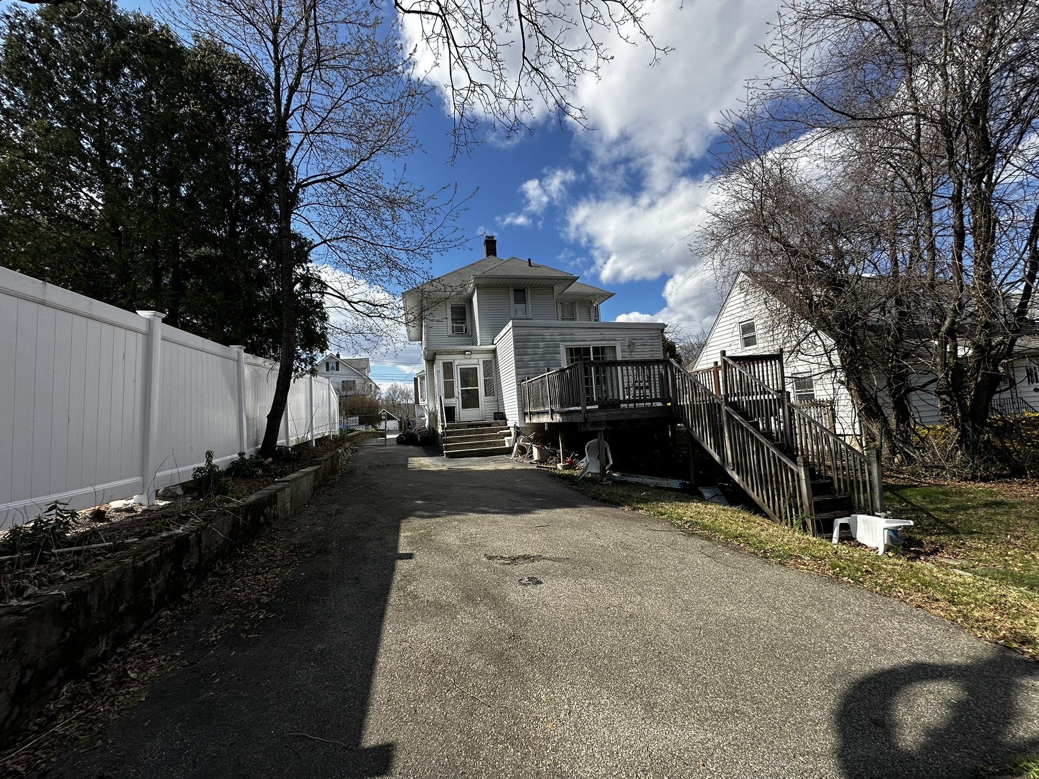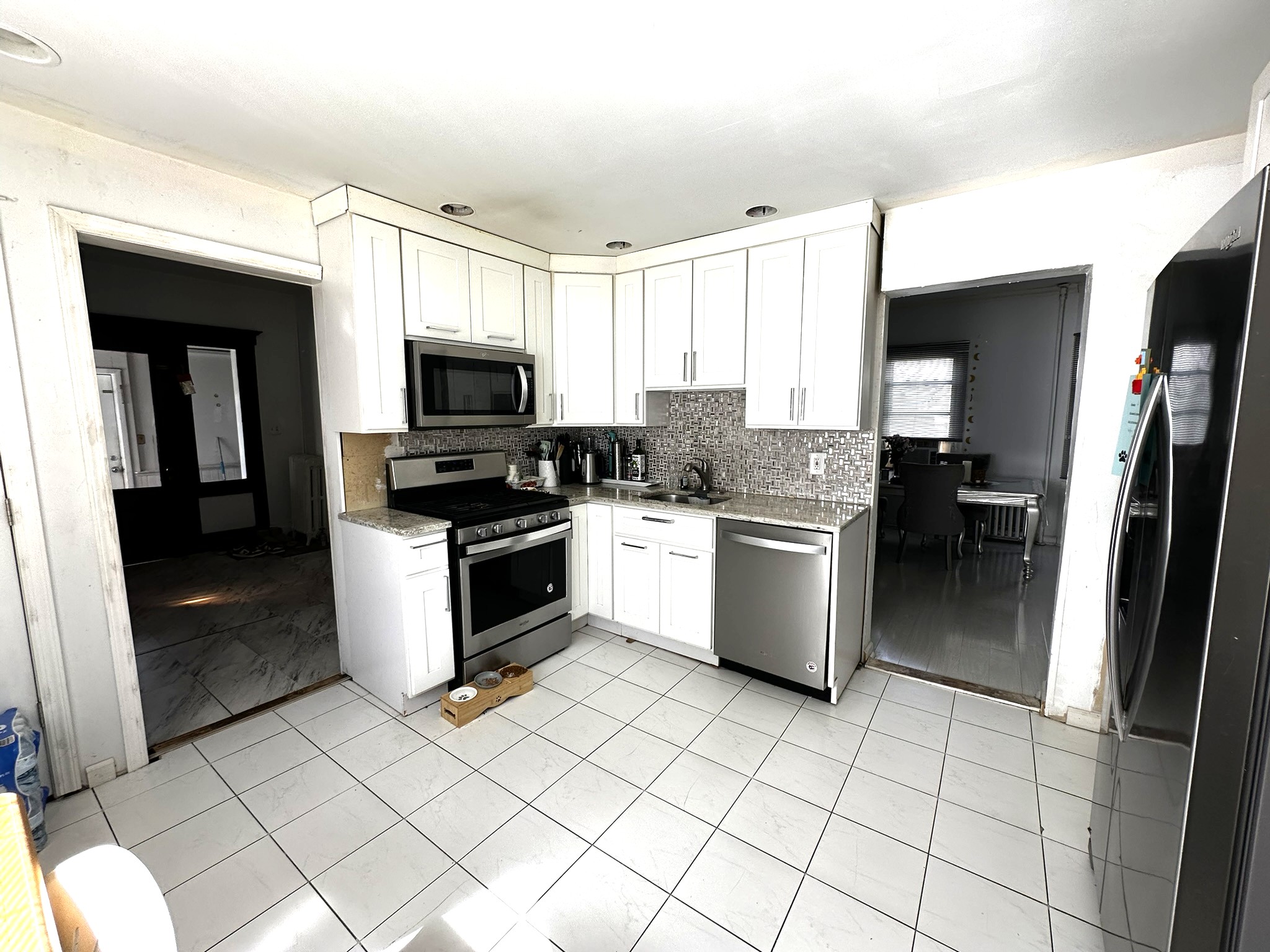 Beautiful, newly, fully renovated (2025, 2026) 1 family colonial on corner lot which features: Sun-filled Entrance foyer. 1st Flr: Opened concept flr plan w/ LR, Modern Kit, DR & LR. The new Kitchen has new SS appliances (oven/range, refrig,DW, microwave), quartz tops & backsplash, plenty of new Shaker cabinetry. 1 BR, 1 Full Bath w/ tile, Side Door off Kitchen to 1st flr & basement & Back door to yard. Hardwood Hickory flooring w/ 3 wide planks as installed throughout 1st & 2nd Flrs. 2nd Flr features 2 BRs, 1 office/nursery w/ access to 3rd flr attic. 1 Full Bath w/ tile. 3rd Floor: Attic w/ storage. Central Air/Forced Air/Gas Heat Basement is full unfinisheed w/ W/D hook-ups, storage space. New electric (200 amp),& plumbling (see seller's disclosure), new windows as installed throughout. New Roof. Newly Renovated 1 car detached Garage w/ newly finished indoor space, electrical outlets, vinyl flooring. Garage has new roof. Off-street parking in driveway. Must See!