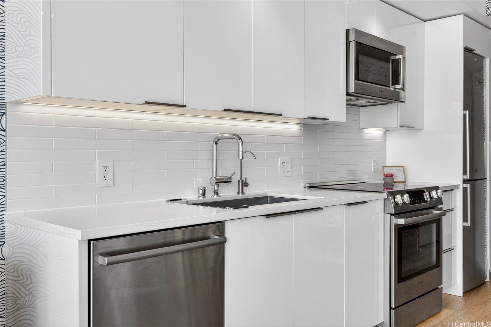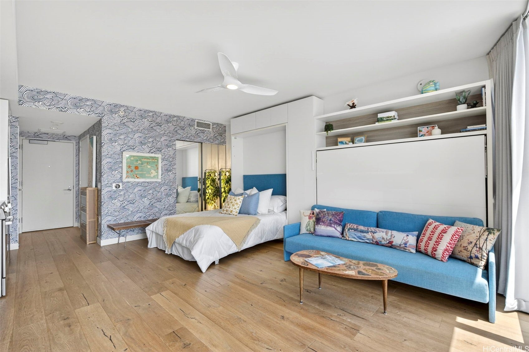 Experience the ultimate flexible living space at Aeo in a studio that lives larger than its compact footprint suggests. At the heart of this thoughtfully designed unit are two convertible wall beds that quietly transform the space, effortlessly creating functional zones to maximize comfort and cleverly providing abundant storage. This adaptable space features stunning ocean views, Bosch appliances and laundry, a TOTO washlet, and your very own private electric vehicle (EV) charger for exclusive on-demand fast charging. Aeo residents enjoy top-tier amenities, including guest suites, a fitness center, wet steam room / dry sauna, dog park, multiple pools, cabanas and grills, and private gathering spaces. In addition to convenient access to Whole Foods, in Ward Village youre just minutes away from Oahus best dining, shopping destinations including Ala Moana Center and Ala Moana Beach Park. Welcome home!