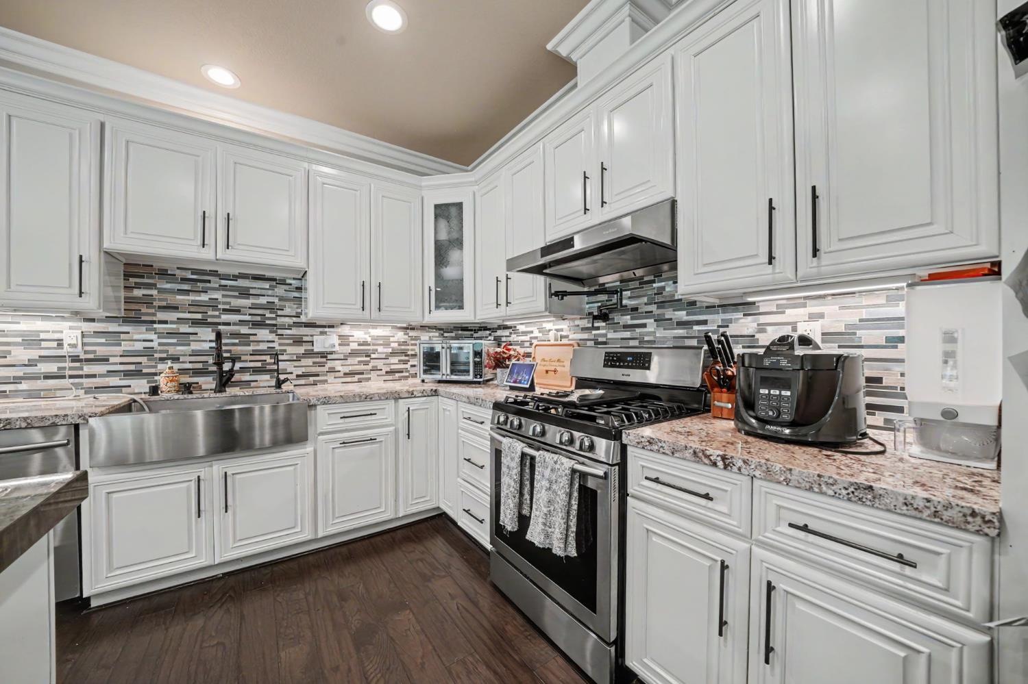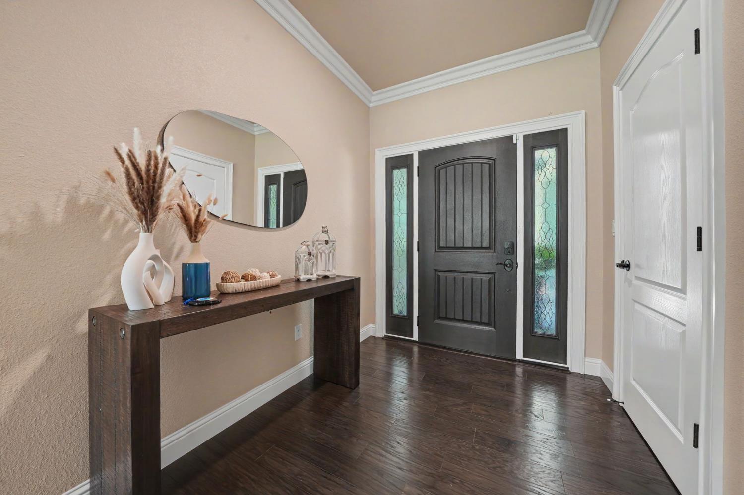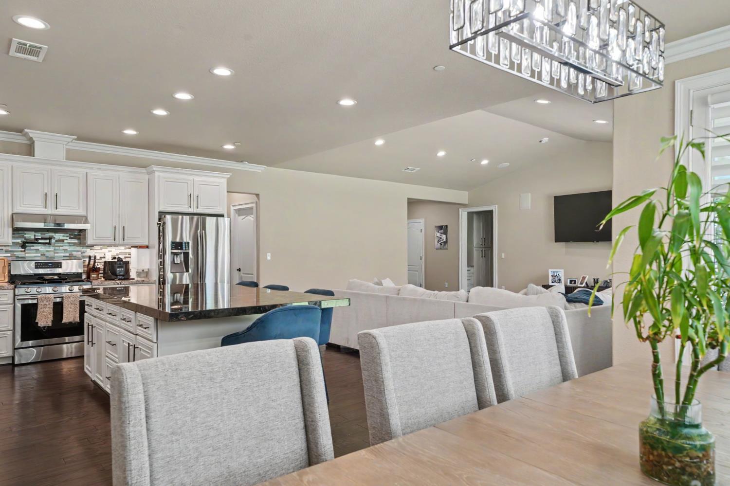 Located in the highly desirable LaContenta Golf Course community, this stunning 4-bedroom, 3-bath home offers 2,958 sq. ft. of beautifully designed living space on an expansive, nearly half-acre lot. Built in 2019 and meticulously maintained, this home shows like new with quality finishes and thoughtful design throughout. Step inside to an open and spacious floor plan featuring beautiful hardwood flooring, custom cabinetry, upgraded countertops, coffered ceilings, and crown molding. The layout is ideal for both everyday living and entertaining, with a private primary suite situated on one side of the home, a junior master suite on the opposite side, and two additional guest bedrooms centrally located for optimal functionality. The oversized primary suite offers a luxurious retreat with a large walk-in closet and a spacious, well-appointed bathroom. Exterior features include exceptional curb appeal with low-maintenance landscaping, ample parking for guests, and potential RV parking. The fully fenced, usable backyard is a blank canvas ready for your dream outdoor oasis with room for a pool, outdoor kitchen, and more all while enjoying scenic golf course views. Perfectly located for golf enthusiasts and those who love to entertain, this immaculate home combines comfort, style, and location in one exceptional package. Offering endless opportunities for recreation and relaxation ready for you to move right in and living the lifestyle youve been dreaming of.