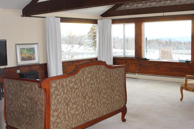 The gorgeous views of the Connecticut River Valley and Vermonts Green Mountains are not the only perks of this contemporary ranch on 6.7 acres. Enjoy these views from your wrap-around deck and large windows or from the orchard, gardens, and spacious yard. Exposed beams over a fieldstone fireplace flow through the spacious living/dining room to the master bedroom, featuring a walk-in cedar closet and master bath with an included whirlpool tub. Imagine swimming year round in your indoor pool which boasts a kitchenette and 3/4 bath. Right off of the pool room is the greenhouse for getting that garden started in the spring. The walkout basement den includes 2 attached guestrooms and a 3/4 bath of their own which could be used as an in-law apartment. Along with the two heated garages which could accomodate 3 vehicles, the property contains three other buildings, including an equipment shed and renovated 2 stall horse barn move-in ready, rubber stall mats, tack room and solar fencing. There is also a solar panel array which heats the basement. Get ready to move into a small piece of paradise. Showings start with an Open House from 10 am to 2 pm Saturday, December 6th.