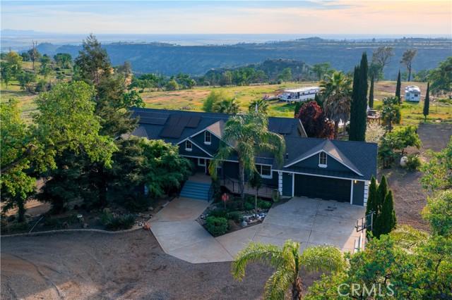Incredible once in a lifetime estate property!! The property consists of two parcels, one is 1.9 acres with custom built home offering over 3,000 sqft with massive amount of rear decking and front decking as well. Split bedroom floor plan with primary suite to right rear of home with walk in closet, spacious bedroom and nice size bathroom. The other bedrooms and office room opposite end of the home, one is junior suite as well with additional bath servicing other bedrooms. Solid surface flooring in main areas of home with carpet in bedrooms. Large open kitchen is part of the center piece to the home with granite counters, stainless appliances, breakfast bar and dinning area over looking rear and sunsets. The center of the home is grand room adorned with columns and rock fireplace plus glass doors to rear deck off the home. There has been new stairway added with custom iron railing to carry you down to the huge game room with LVP floors, Huge flat screen TV and additional TVs for game time, professional air hockey, arcade game, and tons of room for entertaining. Huge rear deck offering sitting areas, BBQ area and in deck spa to enjoy not only the most amazing sunsets and stars galore at night. Above ground large pool with decking all around and over 14 palm trees, plus nice natural pond. Tons of landscaping done with abundant amount of outdoor lighting, massive amount of wrought iron fencing with electric gated entry as well. There is a second home on the property for passive income or extended family as well. Did I mention views and sunsets!! Holy cow the most amazing sunsets can be had here with views down Dry Creek Canyon all the way to the Sutter Buttes!! This total property is nearly 16 acres in two parcels and two separate gated entries with elec key pads, the additional 13 acres has been leveled and cleared opening the door to many possibilities form ag to animals to storage or ?? All located two minutes from Lime Saddle Marina and Lake Oroville for the boat and water recreation enthusiasts!! Far to much to go on about, must see in person!!
