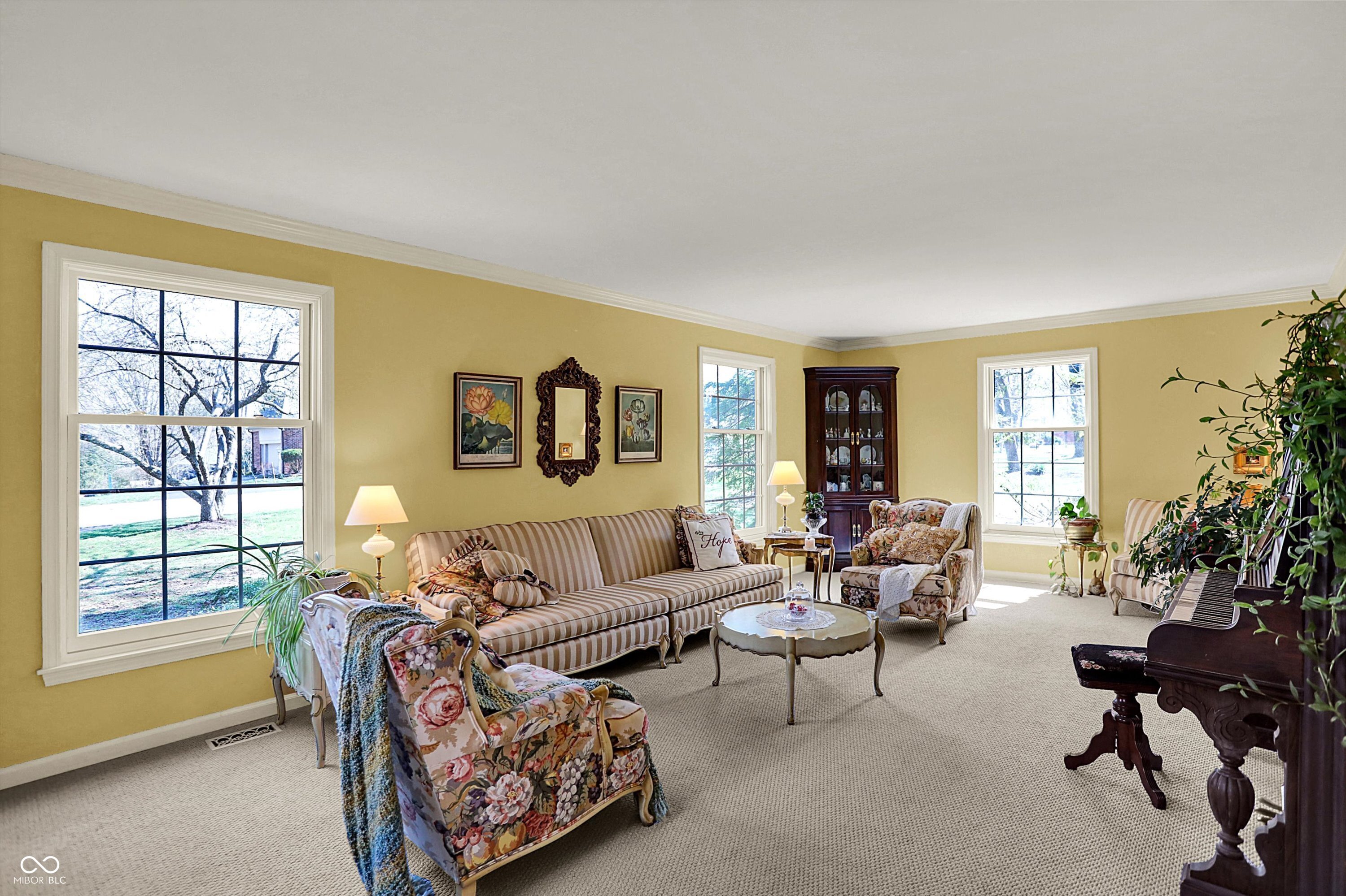 Beautiful home set on a desirable lot in Fairgreen Trace, offering a perfect blend of comfort, location, and curb appeal. This 3-bedroom, 2-bath home features 2,536 square feet of well-designed living space with 10-foot ceilings and abundant natural light throughout. The main level showcases hardwood floors and a spacious great room with a cozy gas fireplace and oversized windows that frame stunning views of the private 5-acre wooded backdrop. The kitchen comes fully equipped with all appliances, and the washer and dryer are also included for added convenience. Enjoy the peaceful setting year-round from the large composite deck or the inviting den/sunroom overlooking the woods-perfect for relaxing or entertaining. Upstairs, you'll find a versatile bonus room along with massive attic storage. Additional highlights include a sprinkler system and security system, making this home as practical as it is beautiful. Ideally located less than half a mile from the entrance to the Monon Trail, just one mile to the Monon Center, and only 1.5 miles to concerts at the gazebo, this home offers easy access to some of the area's best amenities-perfect for walking or biking. This is a rare opportunity to own a home with beautiful wooded views in a highly sought-after neighborhood.