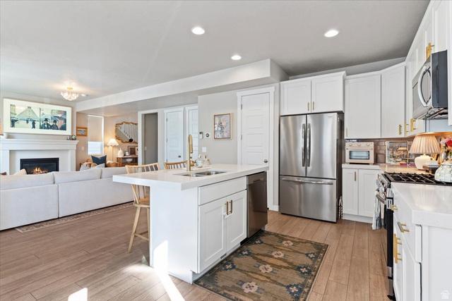 STUNNING Bountiful home! This place is clean, meticulously maintained, and perfectly move-in ready. You will think you just stepped into a magazine. Built in 2022, this nearly new home offers that new home feel without the hassle and added expenses of building. Perfectly situated in a quiet pocket of town while still being so close to all the amenities that you could ask for. The floorplan is so functional, the master suite is so spacious, and the modern aesthetics are so nice! Some of the extras include a fenced yard, water softener, and an upgraded gas fireplace in the living room. This truly is an ideal place to call home!