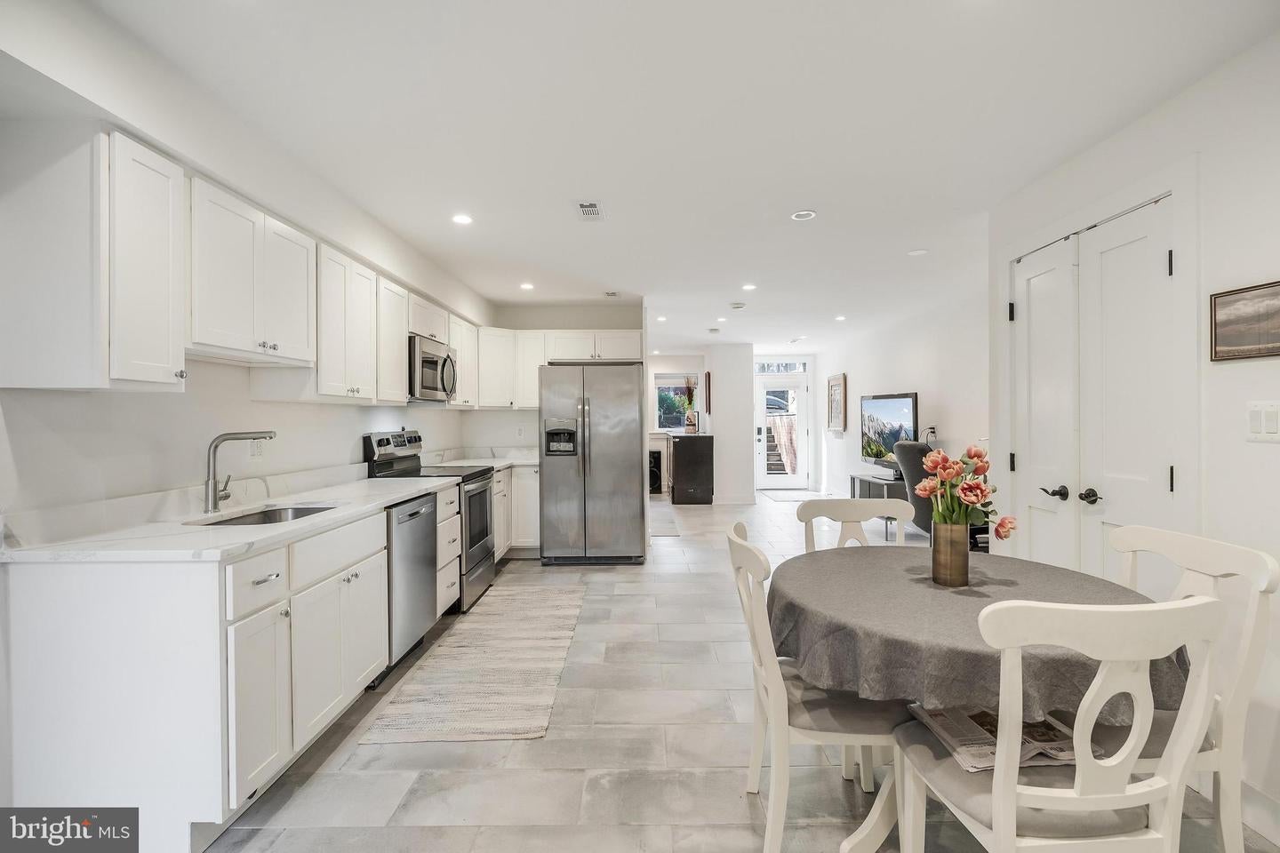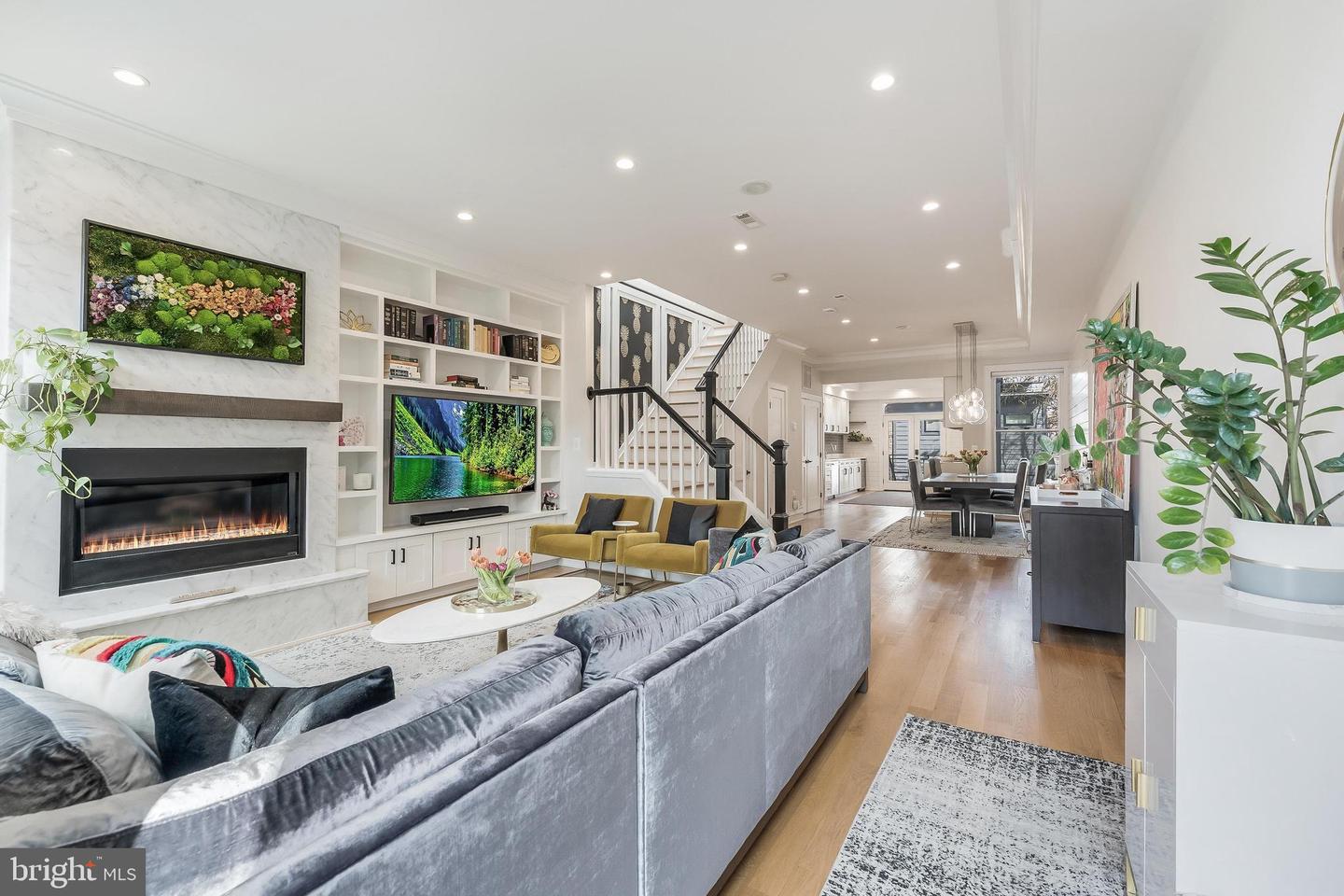 Spectacular modernized Capitol Hill classic rowhome with basement in-law suite for multigenerational living and detached carriage house with one car conditioned garage and upper level studio apartment this is not to be missed! Built in 1911 and fully reimagined in 2020, 648 F Street NE delivers the scale, quality, and flexibility that rarely comes to market in this neighborhood. The property offers five total bedrooms and four and a half bathrooms across the main house, a fully independent basement in-law suite, and a detached carriage house with studio apartment above. The main level offers nearly 9.5 foot ceilings and centers on an open and modern living and dining flow anchored by a gas fireplace, flowing into a gourmet kitchen appointed with a 48 Thermador soft open/close refrigerator, 36 six-burner Miele gas range, quartz countertops, and custom cabinetry. A half bath and rear deck with patio access complete the main level. Upstairs, three bedrooms and two full baths occupy the entire upper level, including a primary bedroom with a substantial walk-in closet. A newly created attic with pull-down stair access provides storage that is genuinely uncommon in Capitol Hill rowhouses of this era. Ceiling height is just under nine feet. The basement in-law suite is a fully independent living space with one bedroom, a full bath, complete kitchen, in-unit laundry, and both front and rear entrances ideal for multigenerational living or long-term guests. The detached carriage house features a one-car conditioned garage with its own mini-split HVAC equally suited as a home office or flex space as it is for parking and a studio apartment above with full bath, kitchenette, and private balcony. The owner has held a DC short-term rental license for the carriage house studio. The property is further equipped with leased solar panels, a whole-house water filtration system, new HVAC system, home speaker system, top-down/bottom-up blackout shades throughout, retractable screens, security system, and video surveillance. Crown molding, hardwood floors, and designer details are found throughout. Situated on a quiet residential block in the heart of Capitol Hill, 648 F Street NE is walkable to the H Street Corridor, Stanton Park, Eastern Market, Union Station, Union Market, two grocery stores, yoga studios, personal training gyms, independent coffee shops, and some of the best neighborhood bars and restaurants the city has to offer!