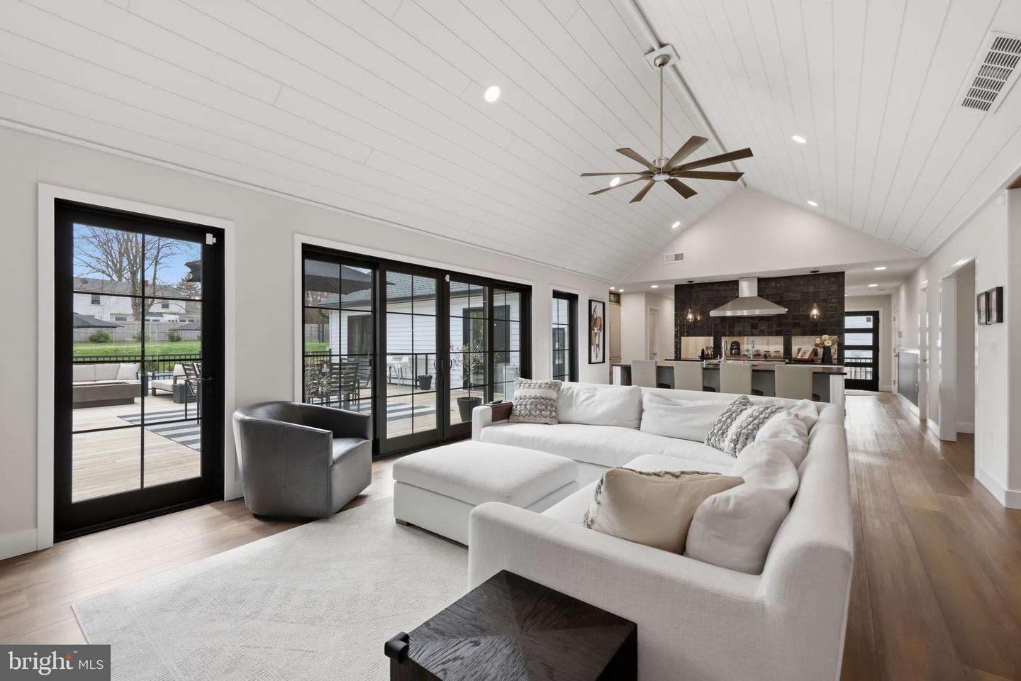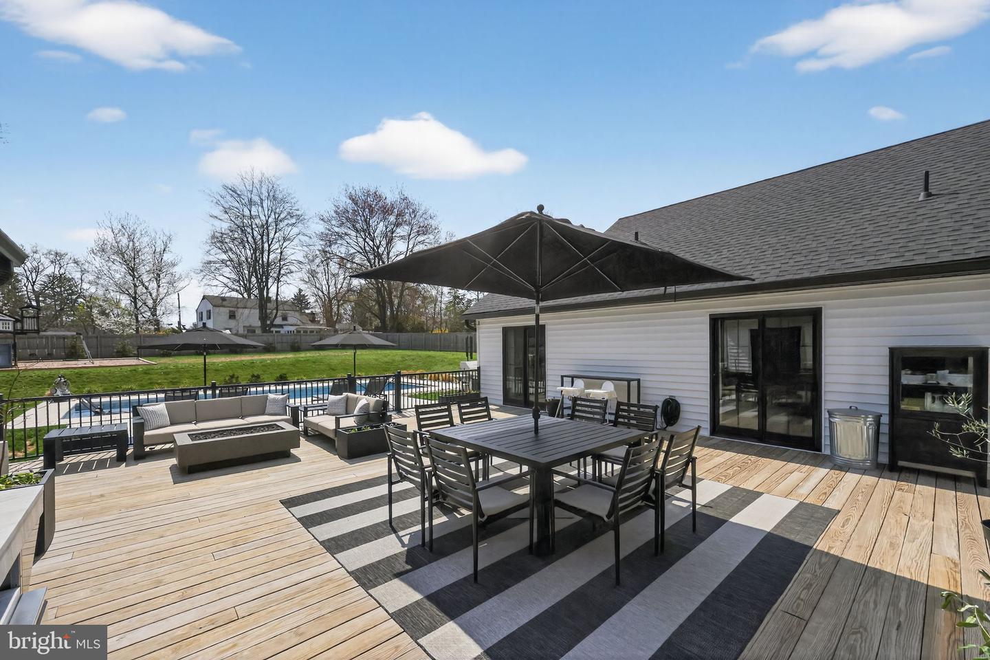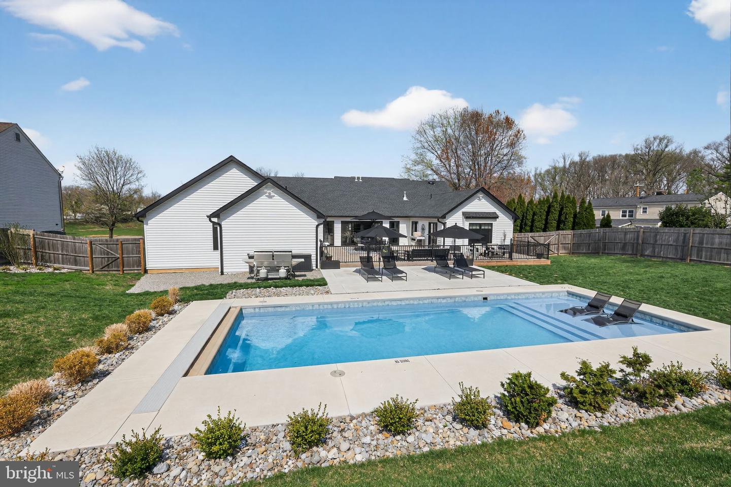 This Courtyard-Style Ranch home is one of the most luxurious and thoughtfully expanded homes in the area, offering an exceptional blend of design, space, and upscale living. Fully renovated and expanded in 2022 this stunning 3-bedroom, 2.5-bath home offers 3,400 sq ft of beautifully finished living space set on a spacious, private lot in the highly desirable Pennsbury School District. With main living all on one level, high-end finishes throughout, and a beautifully designed backyard retreat, this home blends everyday comfort with impressive entertaining spaces. Double front doors welcome you into a bright, open layout where wide plank flooring flows throughout the main living areas. The living room creates a warm and inviting focal point with a striking fireplace, custom built-ins, and abundant natural light, while the open flow makes the space ideal for both relaxing and entertaining. The kitchen is truly the heart of the home, thoughtfully designed with premium appliances, custom cabinetry, and generous workspace, seamlessly connecting to the dining area. A conveniently located powder room is perfect for guests. The primary suite is a standout, featuring vaulted ceilings, recessed lighting, and sliding doors that lead directly to the deck, perfect for enjoying quiet mornings or evening views of the pool and yard. The en-suite bathroom includes a double vanity and beautifully finished shower, along with a walk-in closet with custom built-ins for exceptional storage and organization. Two additional bedrooms are thoughtfully positioned and share a split bathroom, offering both privacy and functionality. A dedicated home office provides ideal work-from-home flexibility. The oversized laundry and activity room adds everyday convenience with generous workspace, storage, and a full tile dog bath, perfect for keeping things tidy after outdoor play or pool days. The finished basement expands the living space with recessed lighting, custom wine racks and an 85 TV. Step outside and enjoy a backyard designed for both relaxation and entertaining. The fenced yard offers privacy and open space, while the deck overlooks the beautifully designed heated saltwater pool withtanning ledge, creating a true outdoor retreat. Whether hosting gatherings or enjoying quiet time at home, this outdoor setting is as impressive as the interior. Ideally located in the Pennsbury School District, this home is just minutes from Main Street in Yardley, where you can enjoy quaint shops, local restaurants, and small-town charm. Nearby Yardley Golf Club, along with additional dining and shopping options, adds to the convenience. Easy access to Route 1 and I-95 makes commuting simple while still enjoying a peaceful setting. This beautifully renovated home offers a rare combination of one-floor living, high-end finishes, and exceptional indoor-outdoor spaces in a prime location, schedule your private tour and experience everything this impressive property has to offer.