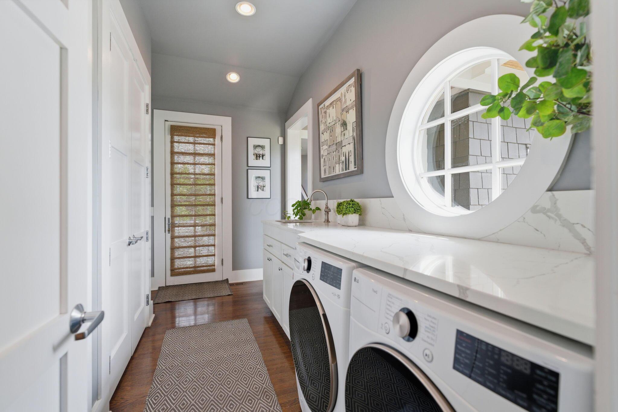 Perfectly situated along a scenic lake and miles of tranquil nature trails in Serenbes sought-after Grange Hamlet, this exceptional custom residence is a rare offering that seamlessly blends sustainability, architectural distinction, and refined modern living.