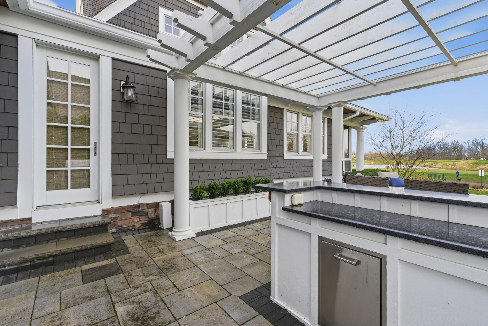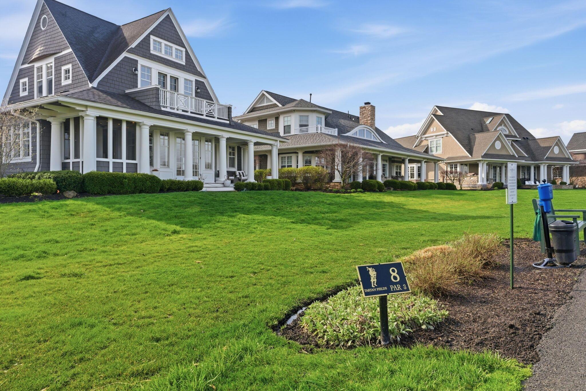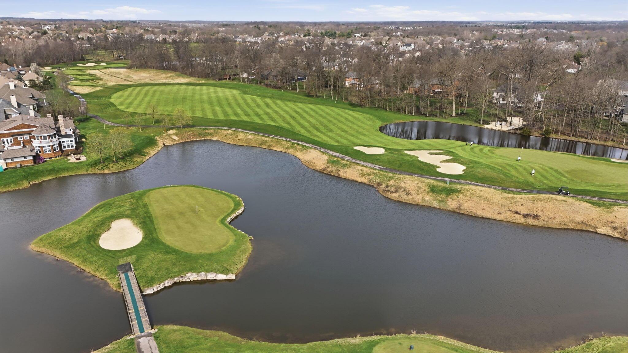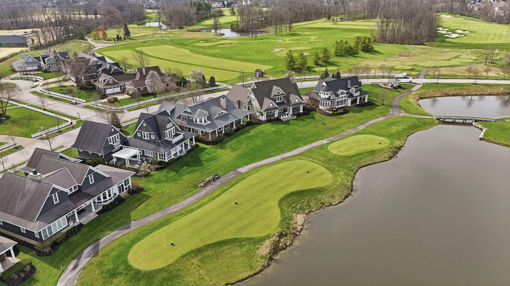 Welcome to maintenance-free living in the Club Cottages at Tartan Fields! This charming home overlooks the 8th hole of the golf course, offering breathtaking views and a serene setting.Enter the formal foyer, which leads to the great room with a fireplace and windows framing the backyard, flowing into the dining area. Updated kitchen features a large island, white cabinetry, Wolf appliances, and quartz countertop that extends up backsplash. Private first-floor master suite includes built-ins, a walk-out to the rear covered porch, and a beautifully updated master bathroom with a large glass shower, sconces, RH double vanity, and heated floors. Two separate staircases lead to distinct upper areas: a bonus room above the garage, currently used as an office and offering plenty of flexible space and natural light, and an additional loft off main staircase with built-ins, a full bathroom, and a bedroom with a balcony. Lower level features a spacious recreational room with a bar, pool table, and family room with built-ins. An additional bedroom and full bathroom with heated floors complete this level. Outside, enjoy a large side patio with a built-in kitchen and pergola overlooking the backyard. Two-car garage includes an epoxy floor bump-out and plenty of storage. Plantation shutters throughout the home!
