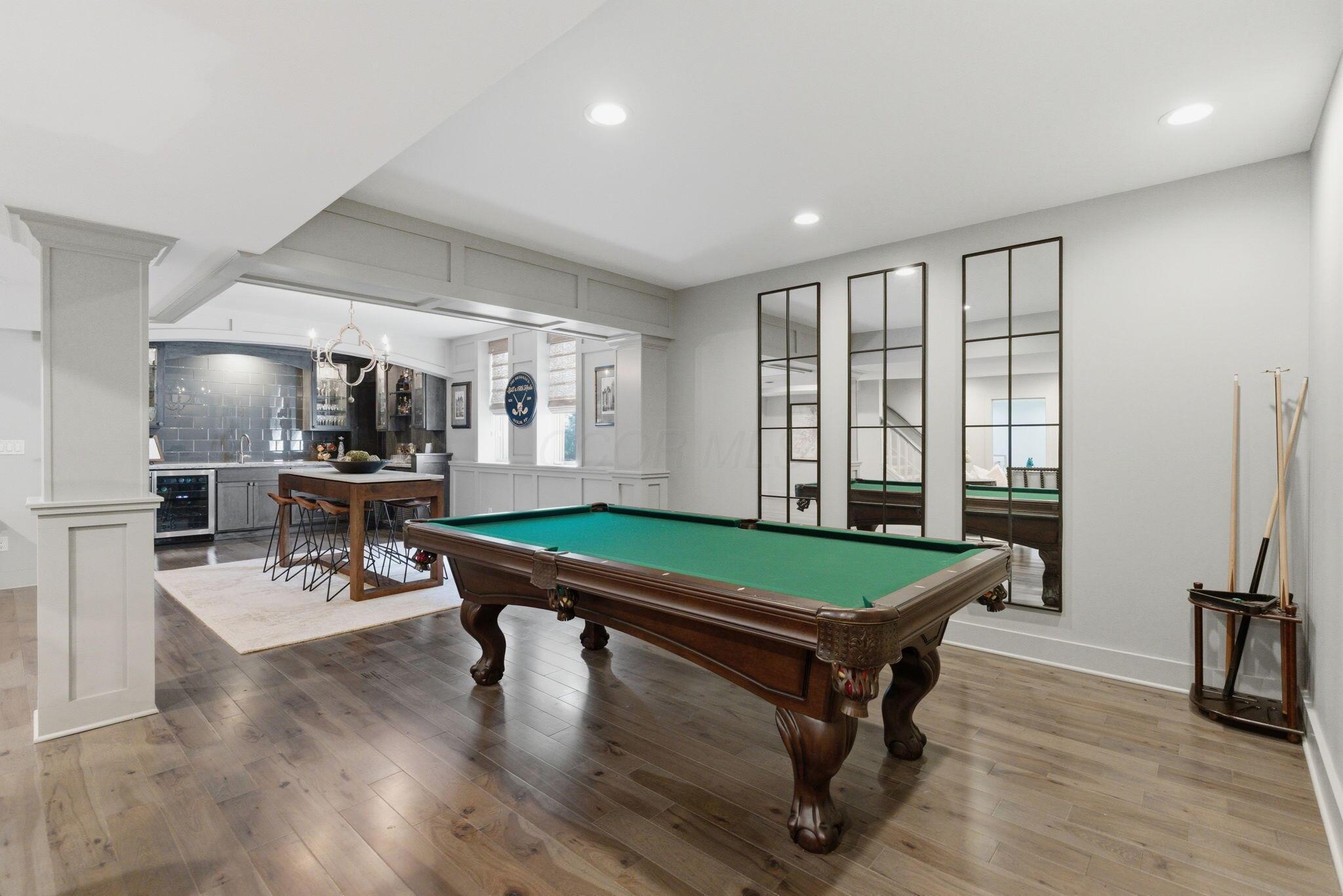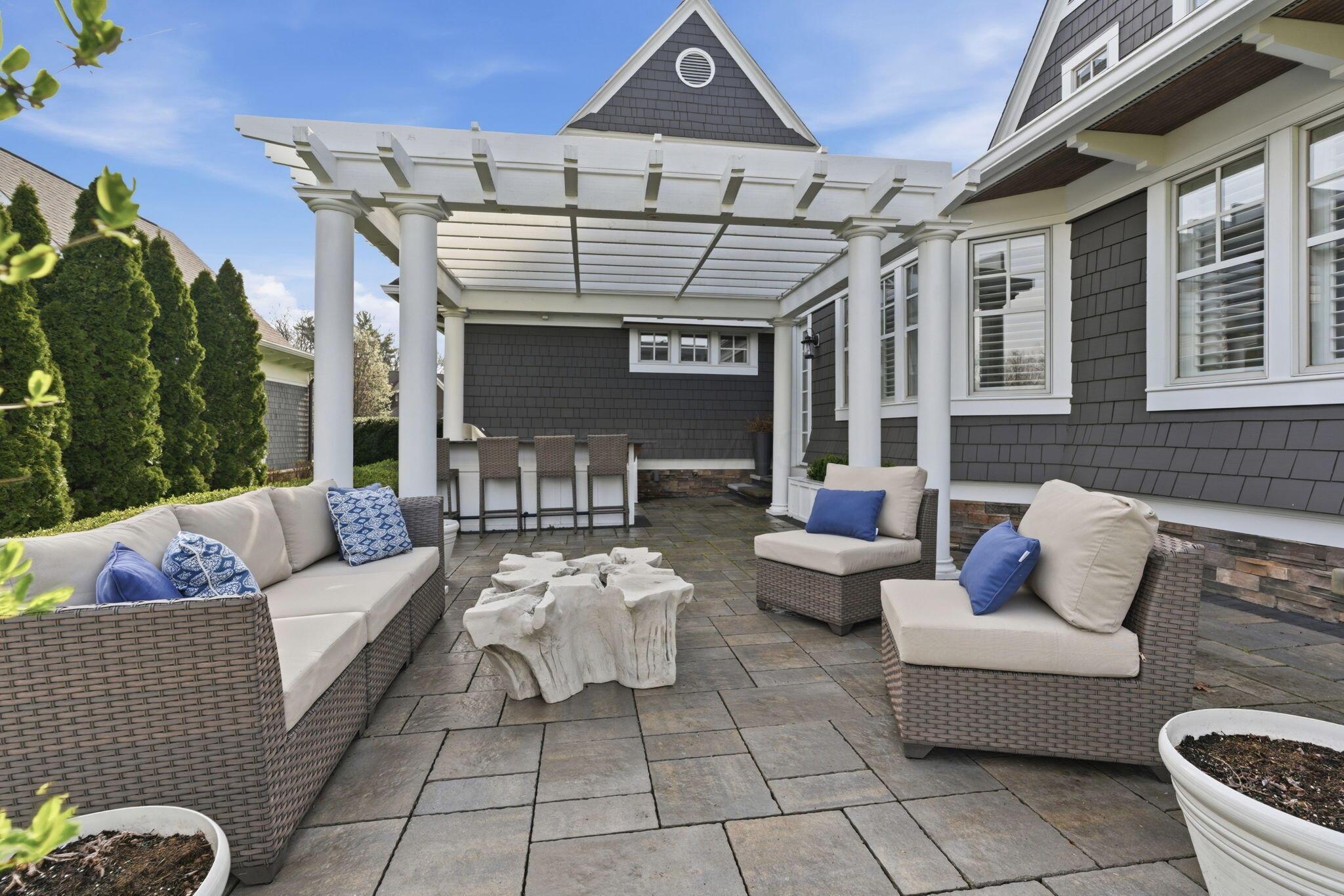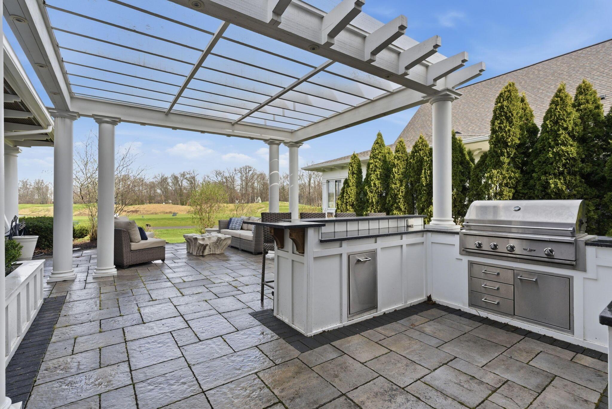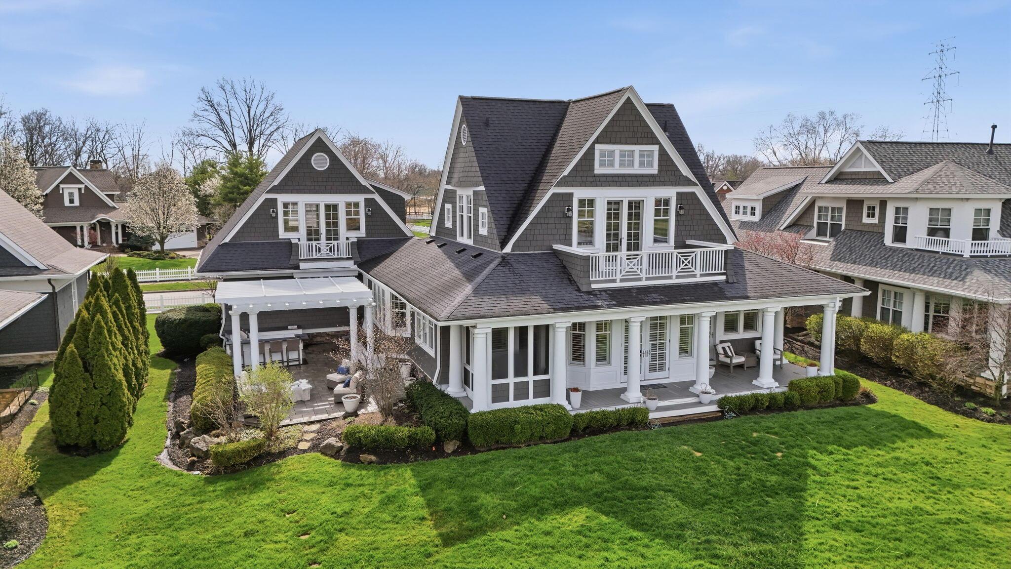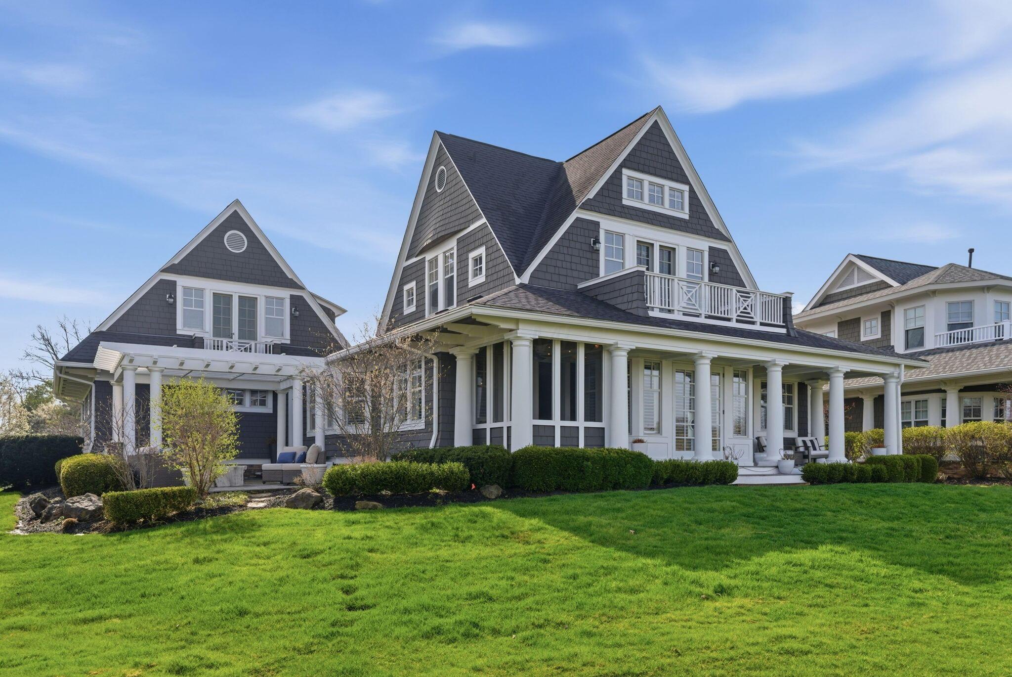 Welcome to maintenance-free living in the Club Cottages at Tartan Fields! This charming home overlooks the 8th hole of the golf course, offering breathtaking views and a serene setting.Enter the formal foyer, which leads to the great room with a fireplace and windows framing the backyard, flowing into the dining area. Updated kitchen features a large island, white cabinetry, Wolf appliances, and quartz countertop that extends up backsplash. Private first-floor master suite includes built-ins, a walk-out to the rear covered porch, and a beautifully updated master bathroom with a large glass shower, sconces, RH double vanity, and heated floors. Two separate staircases lead to distinct upper areas: a bonus room above the garage, currently used as an office and offering plenty of flexible space and natural light, and an additional loft off main staircase with built-ins, a full bathroom, and a bedroom with a balcony. Lower level features a spacious recreational room with a bar, pool table, and family room with built-ins. An additional bedroom and full bathroom with heated floors complete this level. Outside, enjoy a large side patio with a built-in kitchen and pergola overlooking the backyard. Two-car garage includes an epoxy floor bump-out and plenty of storage. Plantation shutters throughout the home!