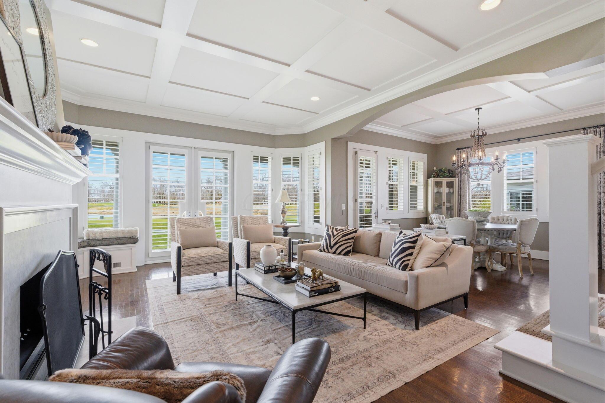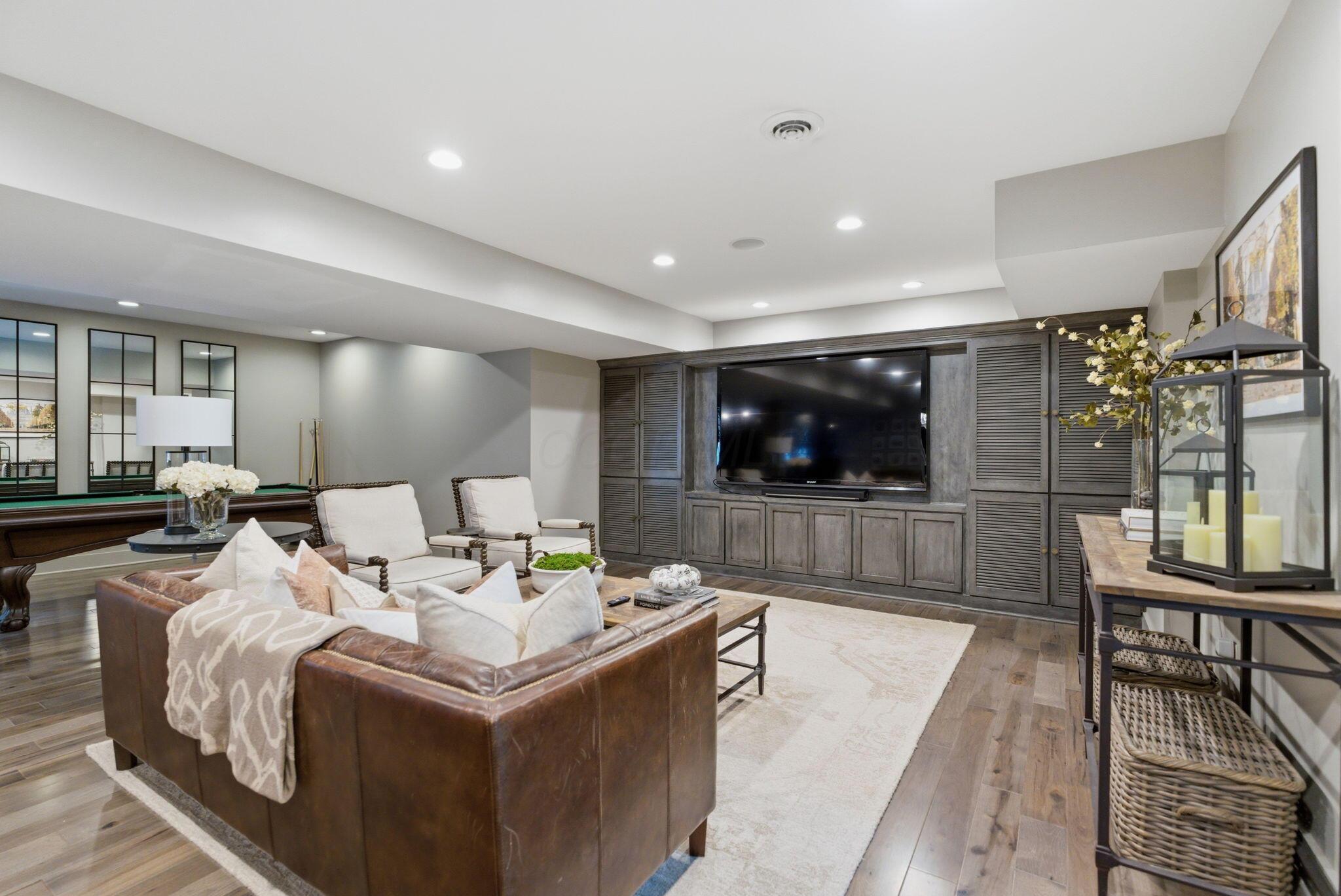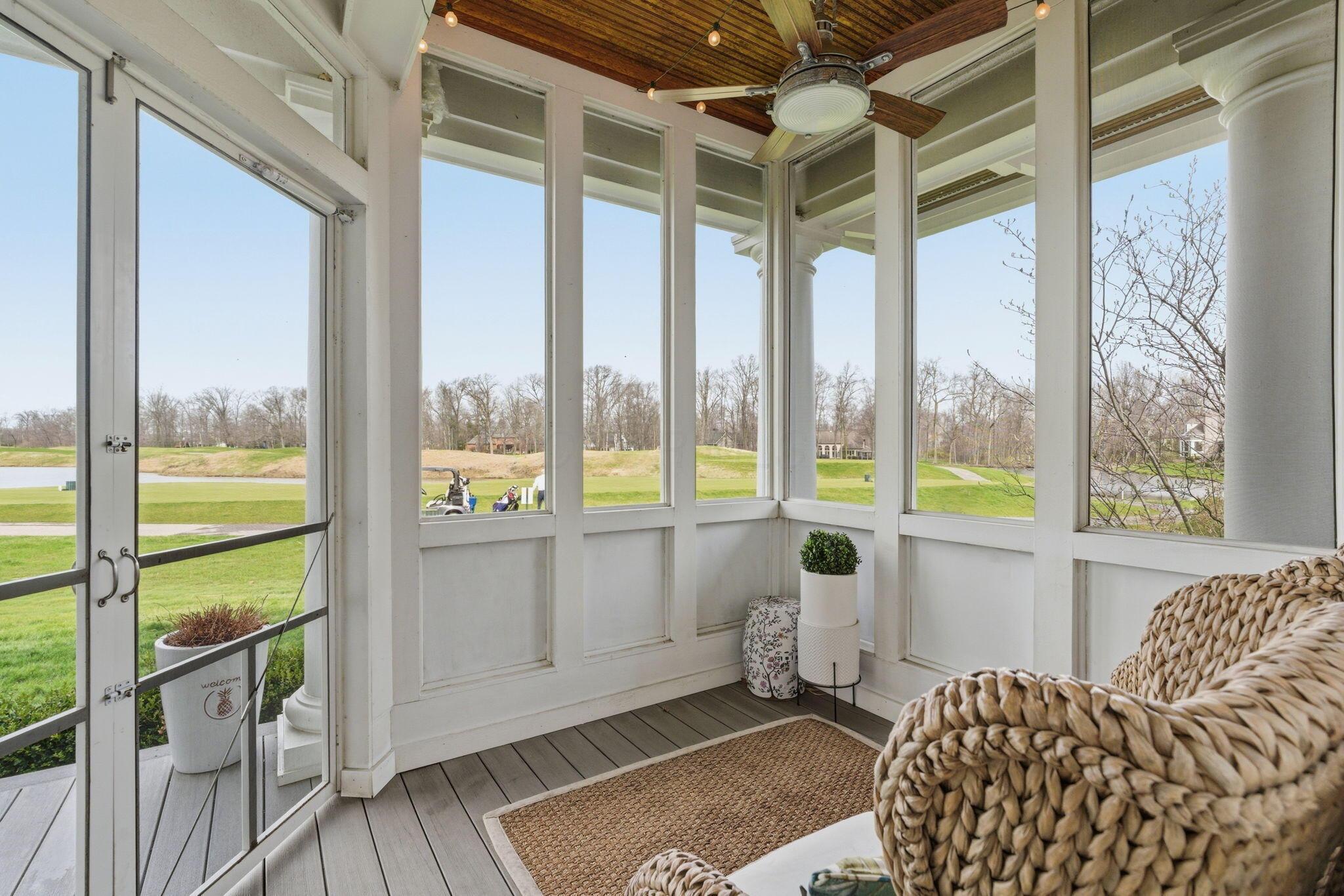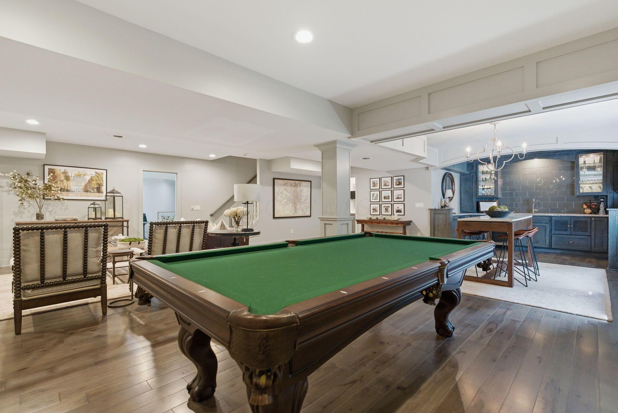 Welcome to maintenance-free living in the Club Cottages at Tartan Fields! This charming home overlooks the 8th hole of the golf course, offering breathtaking views and a serene setting.Enter the formal foyer, which leads to the great room with a fireplace and windows framing the backyard, flowing into the dining area. Updated kitchen features a large island, white cabinetry, Wolf appliances, and quartz countertop that extends up backsplash. Private first-floor master suite includes built-ins, a walk-out to the rear covered porch, and a beautifully updated master bathroom with a large glass shower, sconces, RH double vanity, and heated floors. Two separate staircases lead to distinct upper areas: a bonus room above the garage, currently used as an office and offering plenty of flexible space and natural light, and an additional loft off main staircase with built-ins, a full bathroom, and a bedroom with a balcony. Lower level features a spacious recreational room with a bar, pool table, and family room with built-ins. An additional bedroom and full bathroom with heated floors complete this level. Outside, enjoy a large side patio with a built-in kitchen and pergola overlooking the backyard. Two-car garage includes an epoxy floor bump-out and plenty of storage. Plantation shutters throughout the home!