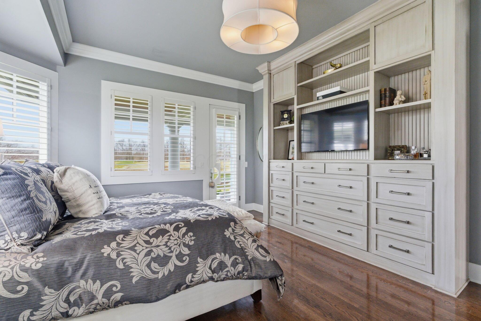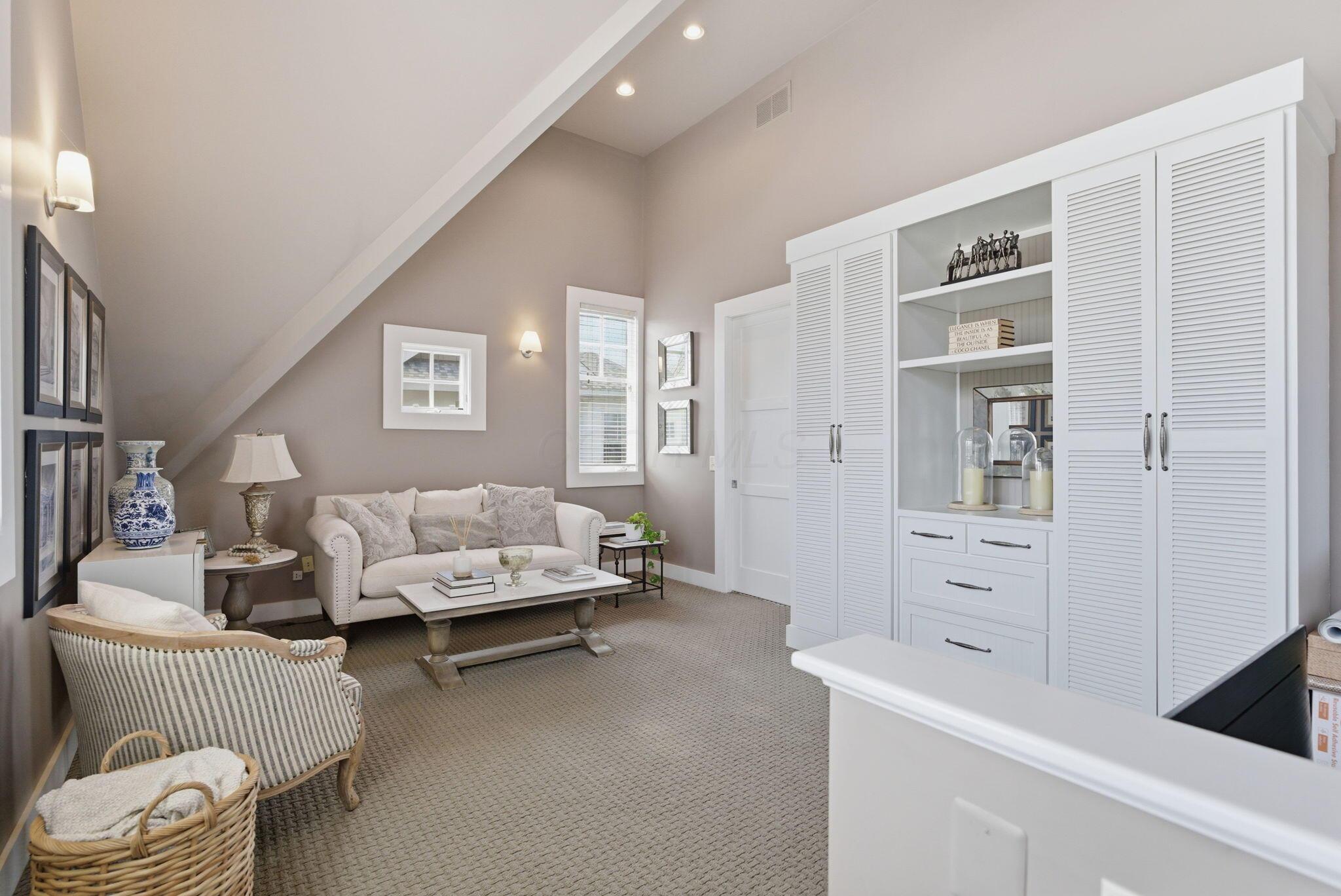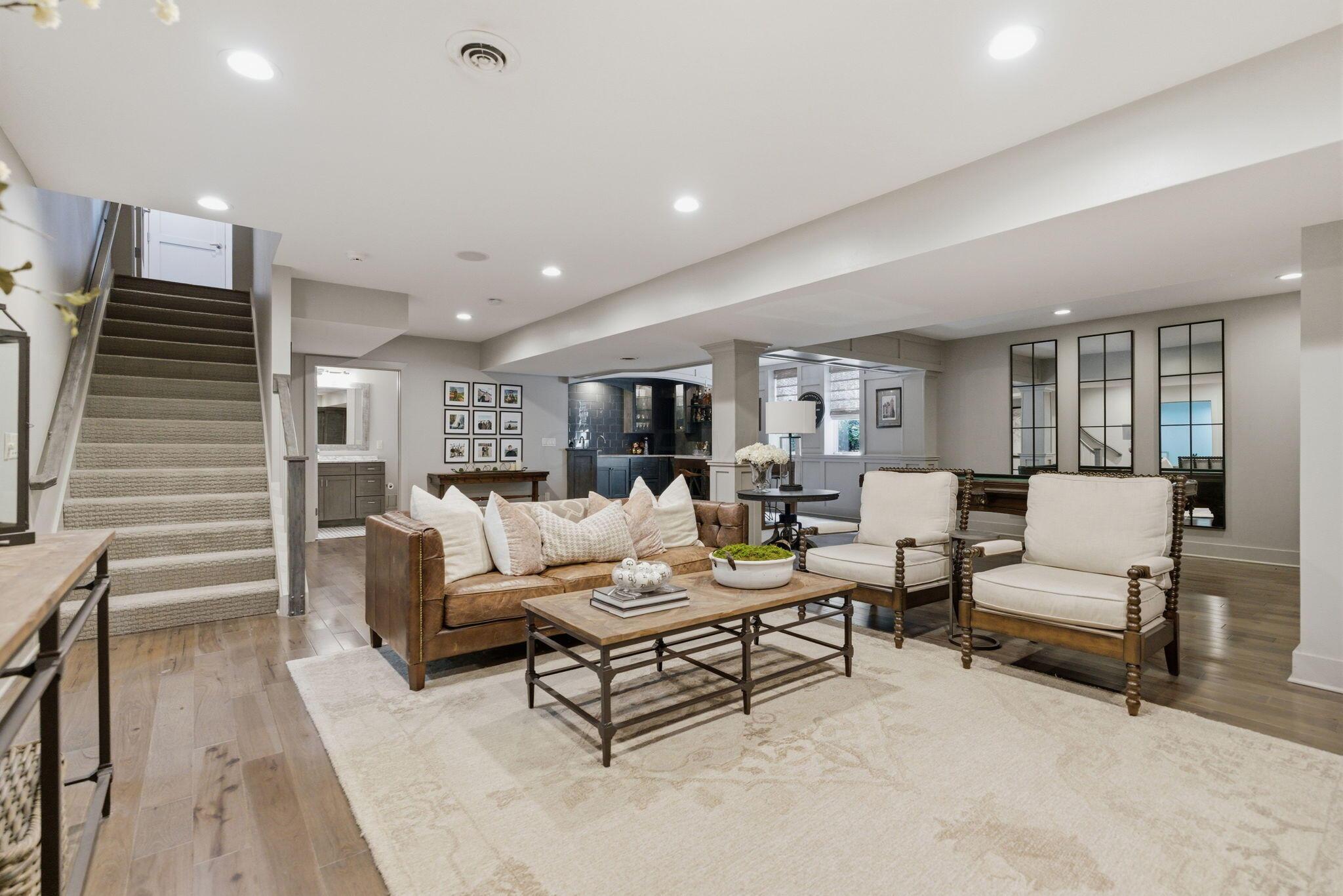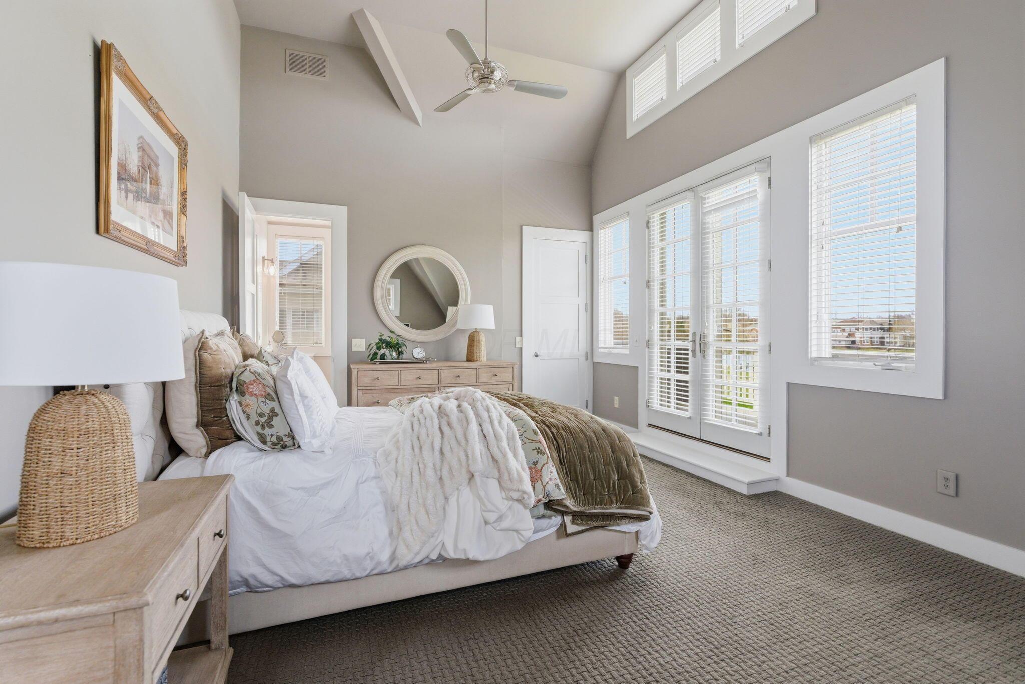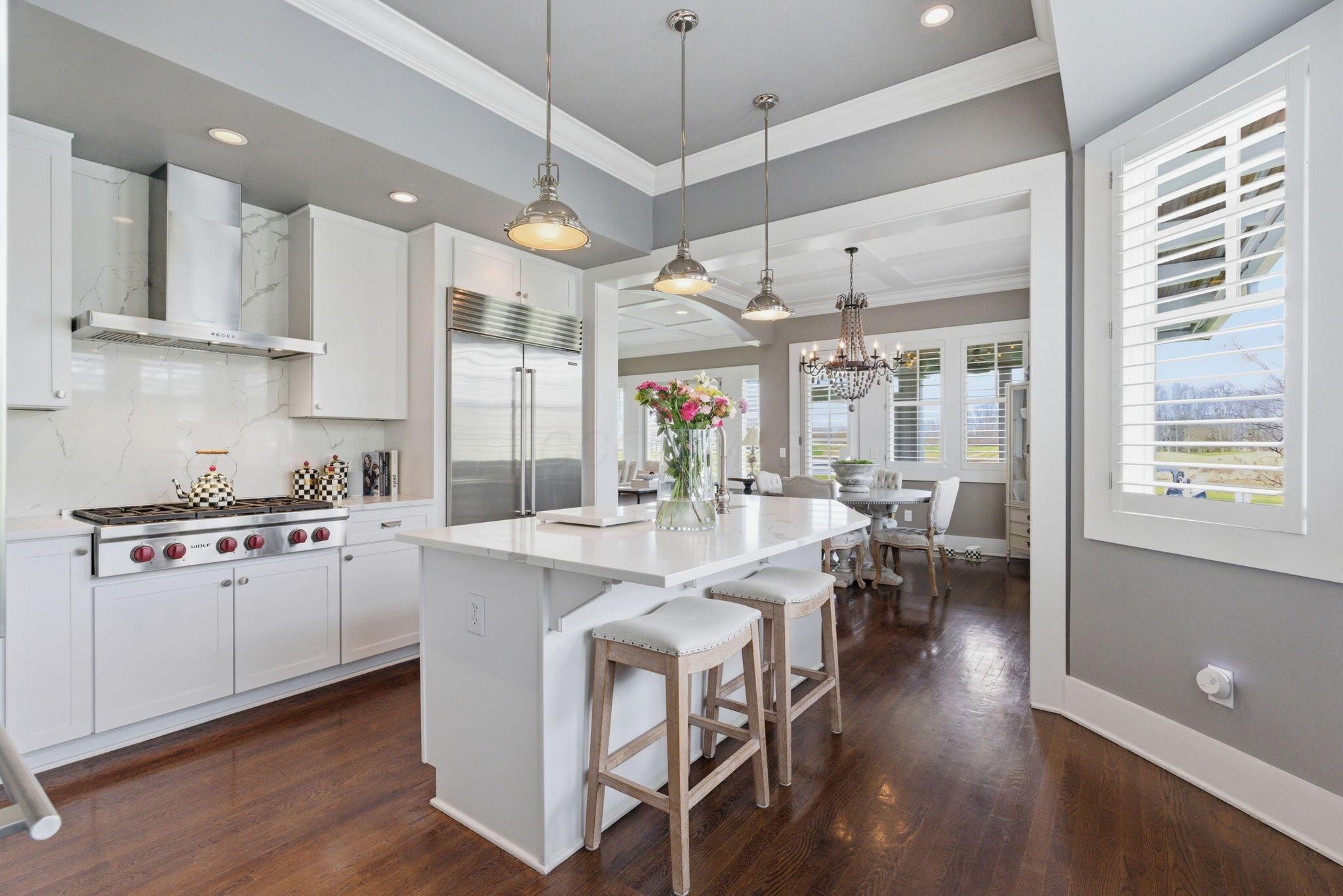 Welcome to maintenance-free living in the Club Cottages at Tartan Fields! This charming home overlooks the 8th hole of the golf course, offering breathtaking views and a serene setting.Enter the formal foyer, which leads to the great room with a fireplace and windows framing the backyard, flowing into the dining area. Updated kitchen features a large island, white cabinetry, Wolf appliances, and quartz countertop that extends up backsplash. Private first-floor master suite includes built-ins, a walk-out to the rear covered porch, and a beautifully updated master bathroom with a large glass shower, sconces, RH double vanity, and heated floors. Two separate staircases lead to distinct upper areas: a bonus room above the garage, currently used as an office and offering plenty of flexible space and natural light, and an additional loft off main staircase with built-ins, a full bathroom, and a bedroom with a balcony. Lower level features a spacious recreational room with a bar, pool table, and family room with built-ins. An additional bedroom and full bathroom with heated floors complete this level. Outside, enjoy a large side patio with a built-in kitchen and pergola overlooking the backyard. Two-car garage includes an epoxy floor bump-out and plenty of storage. Plantation shutters throughout the home!