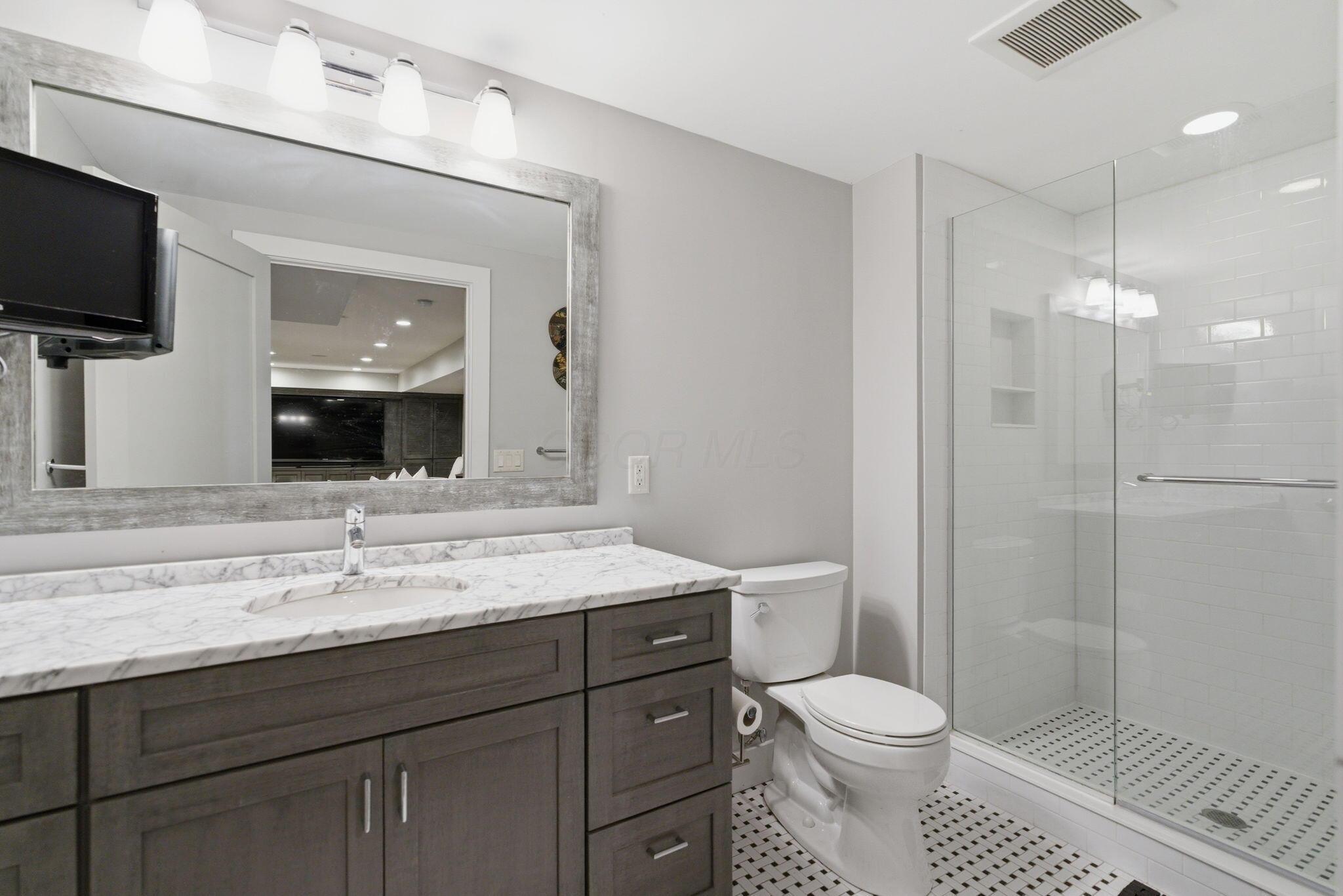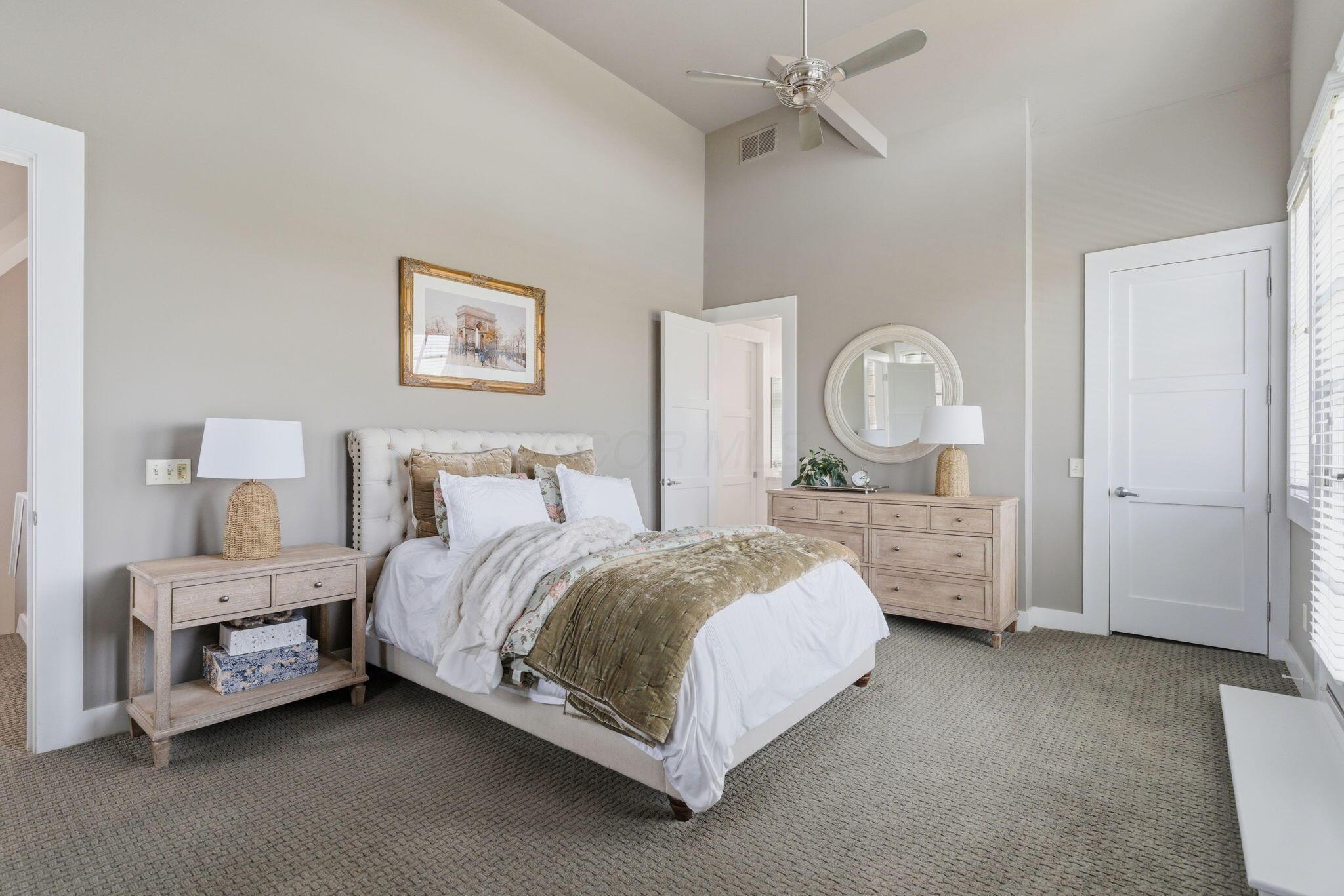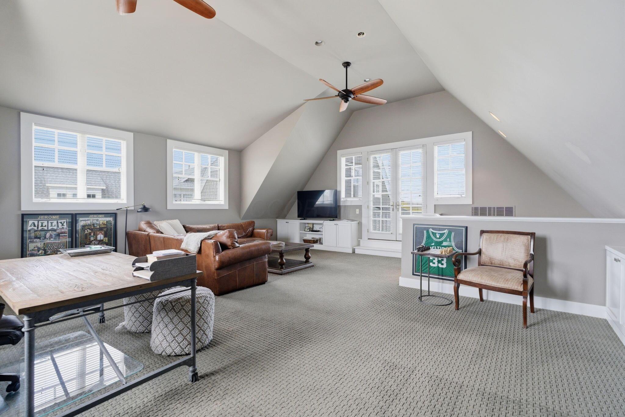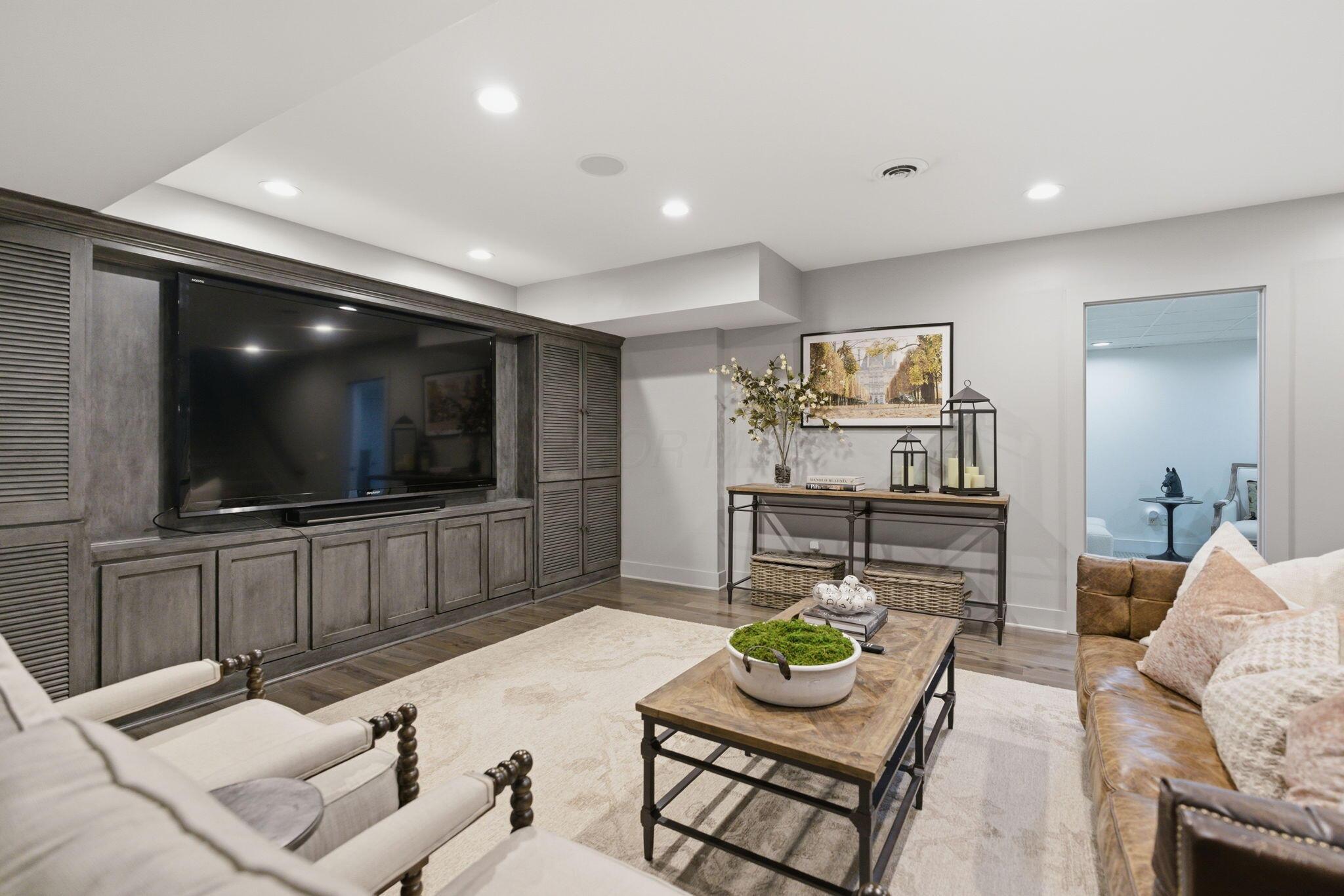 Welcome to maintenance-free living in the Club Cottages at Tartan Fields! This charming home overlooks the 8th hole of the golf course, offering breathtaking views and a serene setting.Enter the formal foyer, which leads to the great room with a fireplace and windows framing the backyard, flowing into the dining area. Updated kitchen features a large island, white cabinetry, Wolf appliances, and quartz countertop that extends up backsplash. Private first-floor master suite includes built-ins, a walk-out to the rear covered porch, and a beautifully updated master bathroom with a large glass shower, sconces, RH double vanity, and heated floors. Two separate staircases lead to distinct upper areas: a bonus room above the garage, currently used as an office and offering plenty of flexible space and natural light, and an additional loft off main staircase with built-ins, a full bathroom, and a bedroom with a balcony. Lower level features a spacious recreational room with a bar, pool table, and family room with built-ins. An additional bedroom and full bathroom with heated floors complete this level. Outside, enjoy a large side patio with a built-in kitchen and pergola overlooking the backyard. Two-car garage includes an epoxy floor bump-out and plenty of storage. Plantation shutters throughout the home!