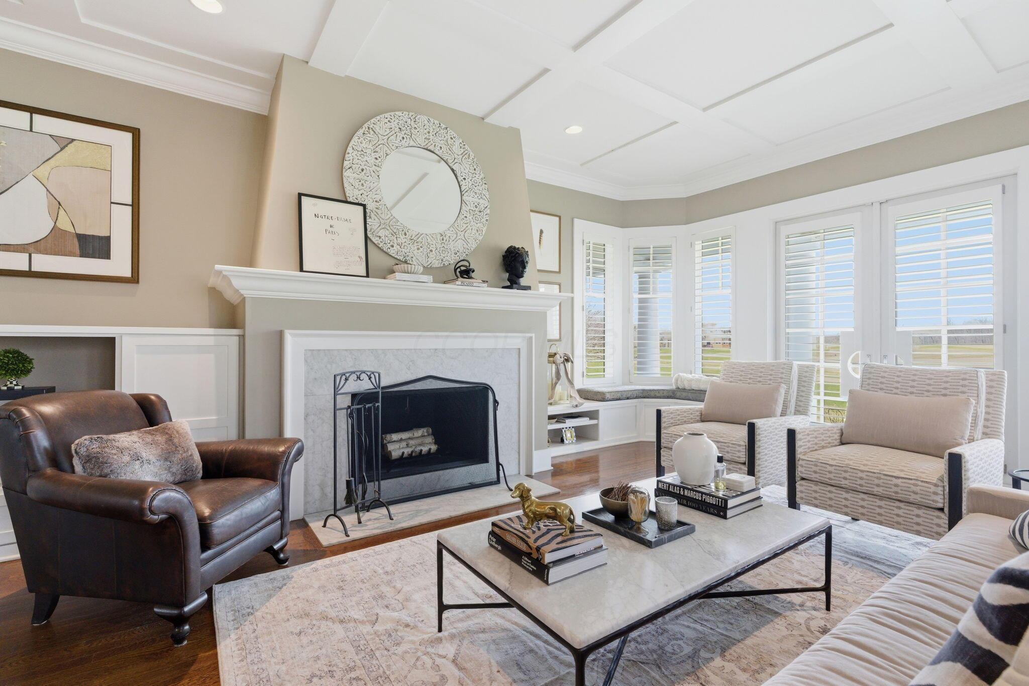 Welcome to maintenance-free living in the Club Cottages at Tartan Fields! This charming home overlooks the 8th hole of the golf course, offering breathtaking views and a serene setting.Enter the formal foyer, which leads to the great room with a fireplace and windows framing the backyard, flowing into the dining area.