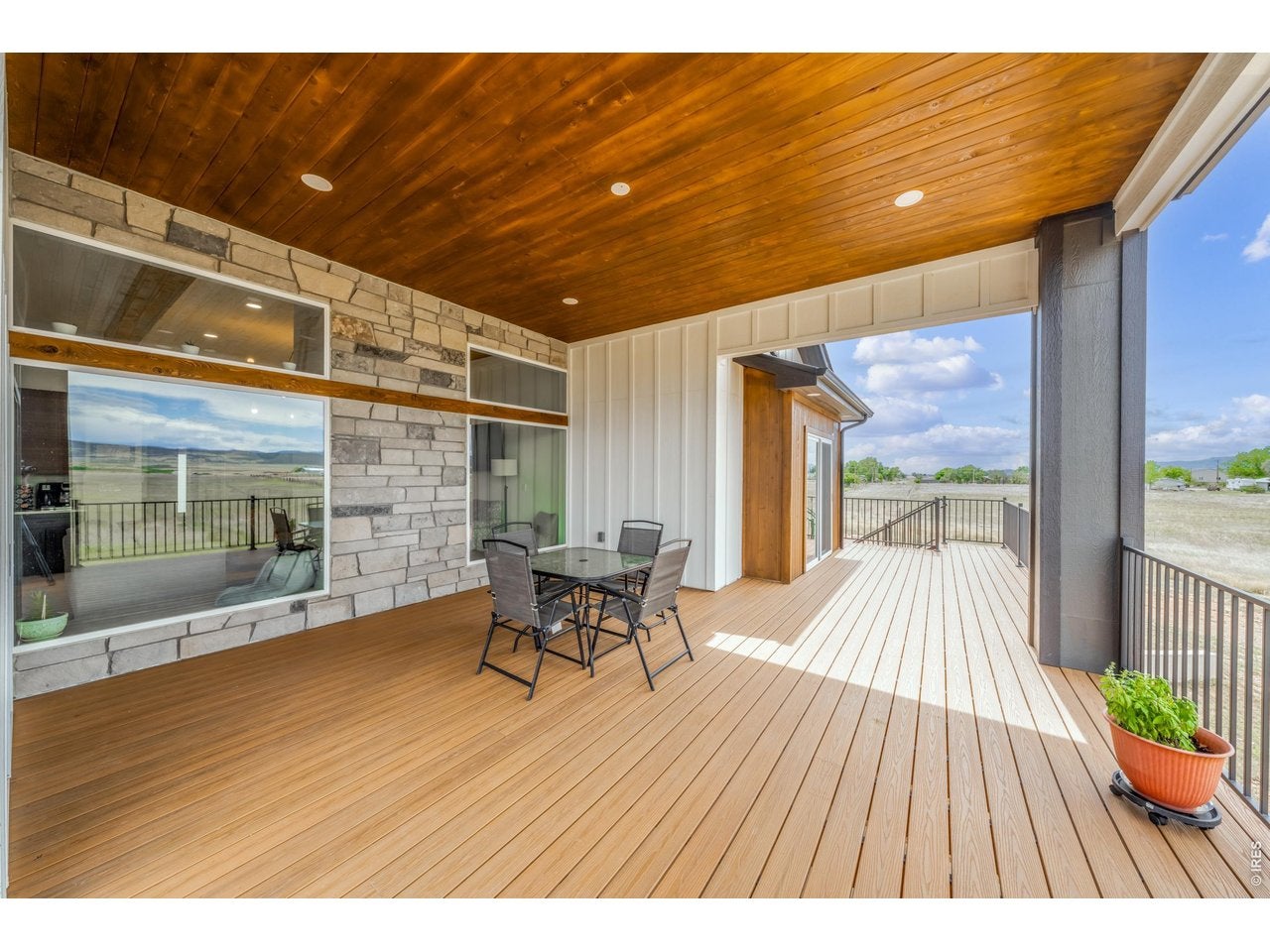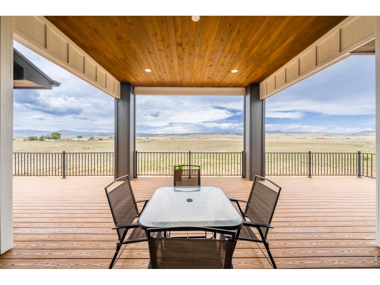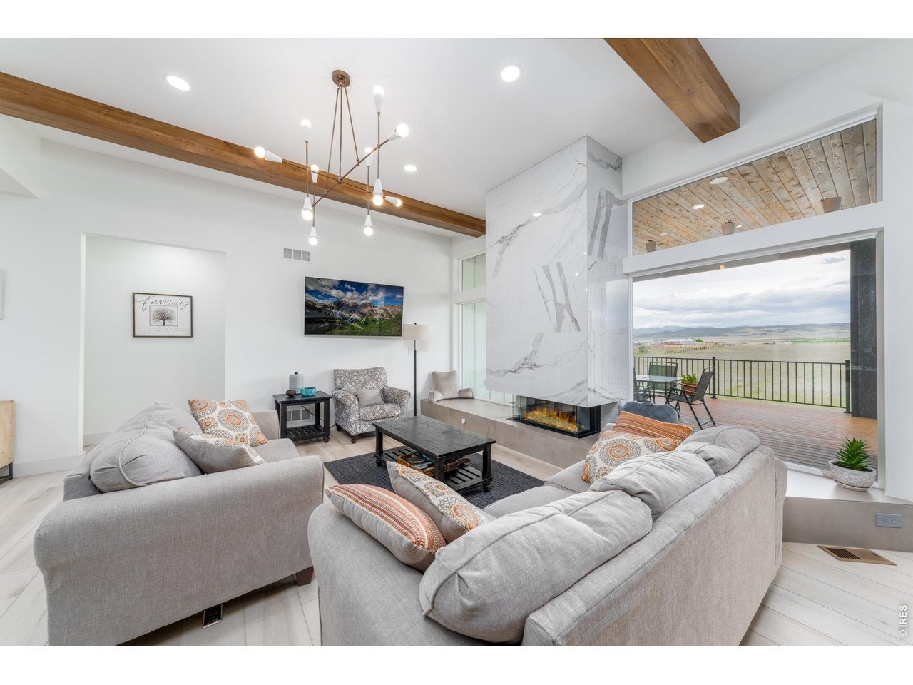 A Rare 52-Acre Colorado Estate with a Stunning Custom Home located in Fort Collins! Experience the ultimate in Colorado living on 52 private acres of pristine beauty, just 15 minutes from Old Town Fort Collins. At the heart of this extraordinary property is a nearly new, custom-built 5-bedroom, 4-bath ranch-style home, designed to showcase sweeping mountain views and unmatched craftsmanship. Step inside and be greeted by soaring vaulted ceilings with rich walnut beams, setting the tone for a home that blends elegance and warmth. The dramatic Sierra Flame porcelain tile fireplace anchors the open-concept living space, while floor-to-ceiling Simonton Daylight Max windows capture endless views of the Front Range and flood the home with natural light. The gourmet kitchen is a chefs dream, featuring GE Monogram appliances, quartz countertops, and custom Highland cabinetry-perfect for everyday living or entertaining on a grand scale. Retreat to the luxurious primary suite, complete with a spa-inspired bath and a steam shower offering light therapy and aromatherapy settings for the ultimate relaxation experience. The walk-out basement expands your living possibilities with 10-foot ceilings, a layout ready for a secondary kitchen or bar, plus abundant storage. Outside, savor the serenity of your land from the expansive west-facing deck, crafted from premium Fiberon and designed to wrap around the home for panoramic views. Whether you dream of horses, trails, or simply wide-open space, this property offers unparalleled privacy, freedom, and natural beauty-a true Colorado legacy estate.
