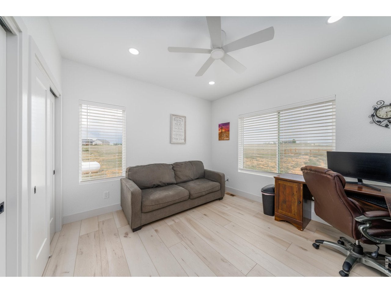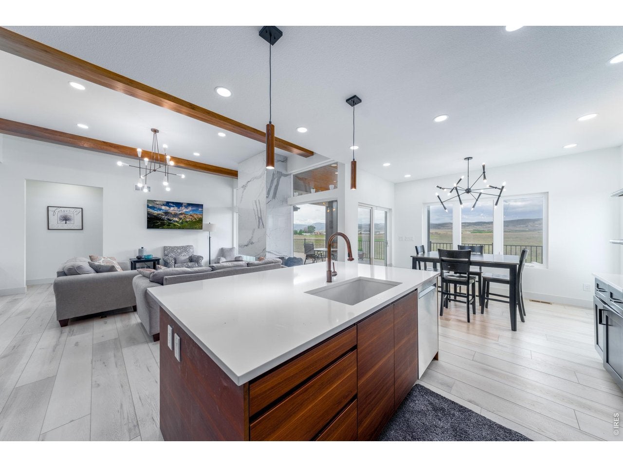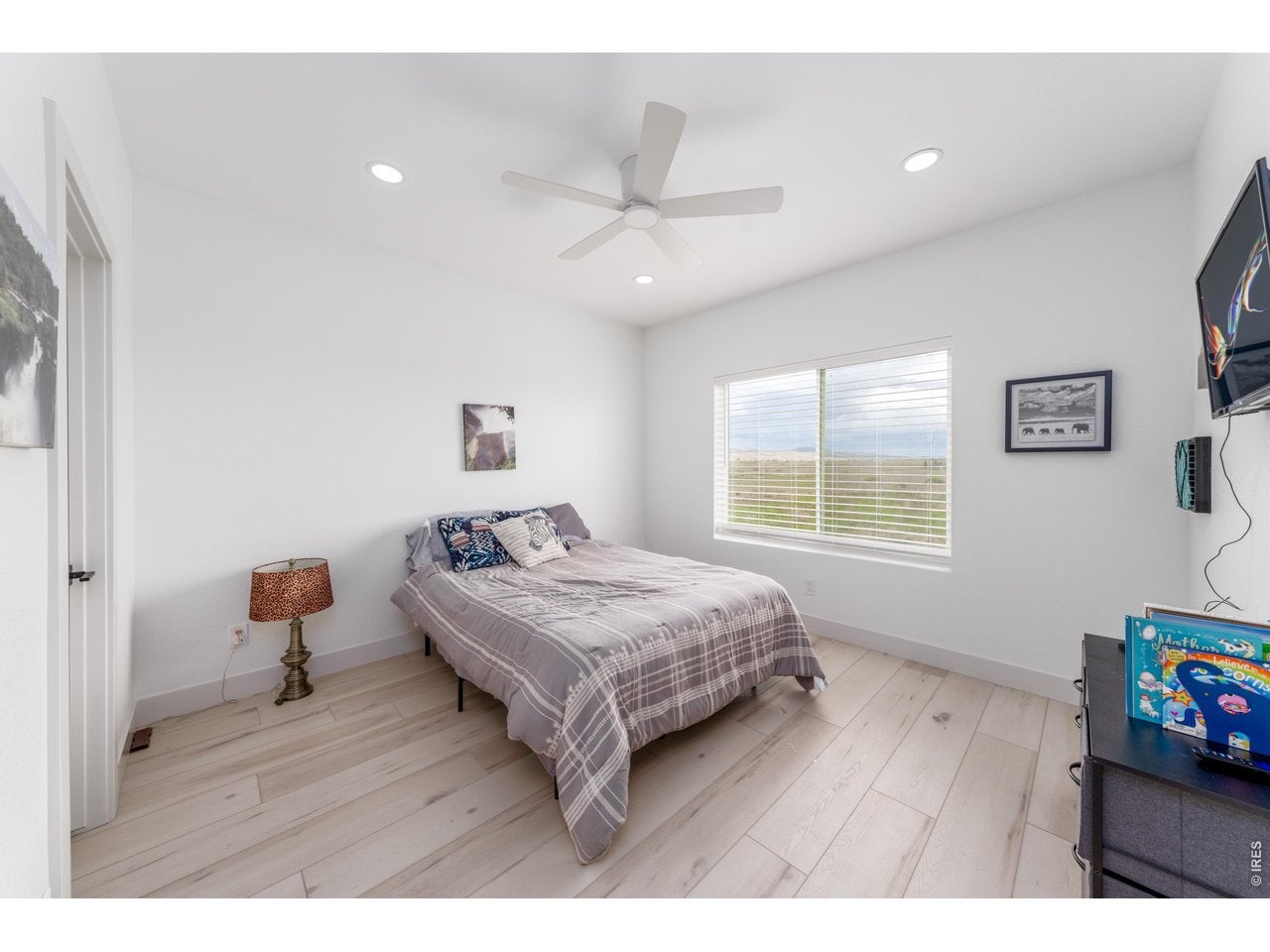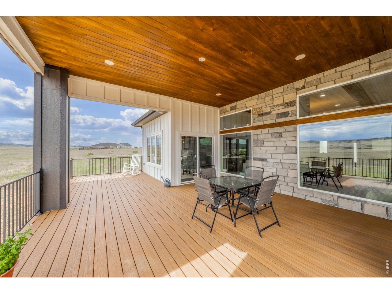 A Rare 52-Acre Colorado Estate with a Stunning Custom Home located in Fort Collins! Experience the ultimate in Colorado living on 52 private acres of pristine beauty, just 15 minutes from Old Town Fort Collins. At the heart of this extraordinary property is a nearly new, custom-built 5-bedroom, 4-bath ranch-style home, designed to showcase sweeping mountain views and unmatched craftsmanship. Step inside and be greeted by soaring vaulted ceilings with rich walnut beams, setting the tone for a home that blends elegance and warmth. The dramatic Sierra Flame porcelain tile fireplace anchors the open-concept living space, while floor-to-ceiling Simonton Daylight Max windows capture endless views of the Front Range and flood the home with natural light. The gourmet kitchen is a chefs dream, featuring GE Monogram appliances, quartz countertops, and custom Highland cabinetry-perfect for everyday living or entertaining on a grand scale. Retreat to the luxurious primary suite, complete with a spa-inspired bath and a steam shower offering light therapy and aromatherapy settings for the ultimate relaxation experience. The walk-out basement expands your living possibilities with 10-foot ceilings, a layout ready for a secondary kitchen or bar, plus abundant storage. Outside, savor the serenity of your land from the expansive west-facing deck, crafted from premium Fiberon and designed to wrap around the home for panoramic views. Whether you dream of horses, trails, or simply wide-open space, this property offers unparalleled privacy, freedom, and natural beauty-a true Colorado legacy estate.