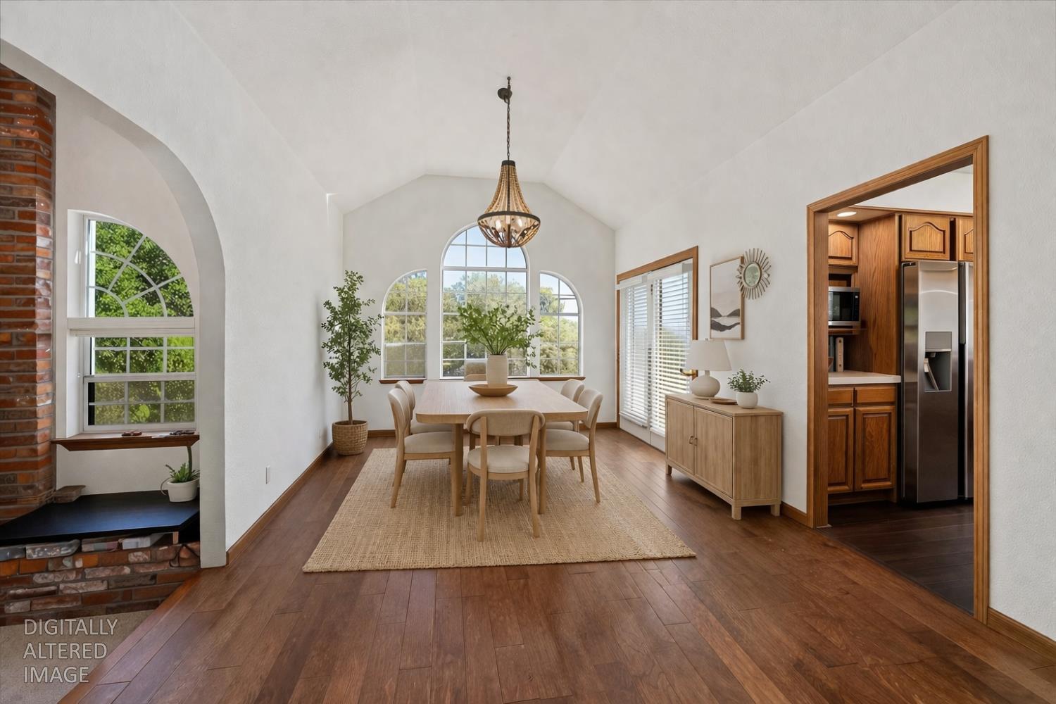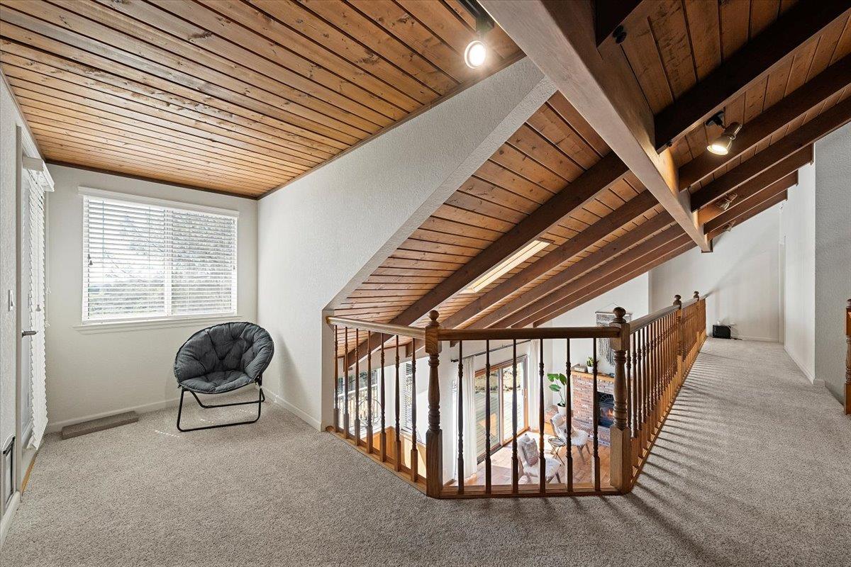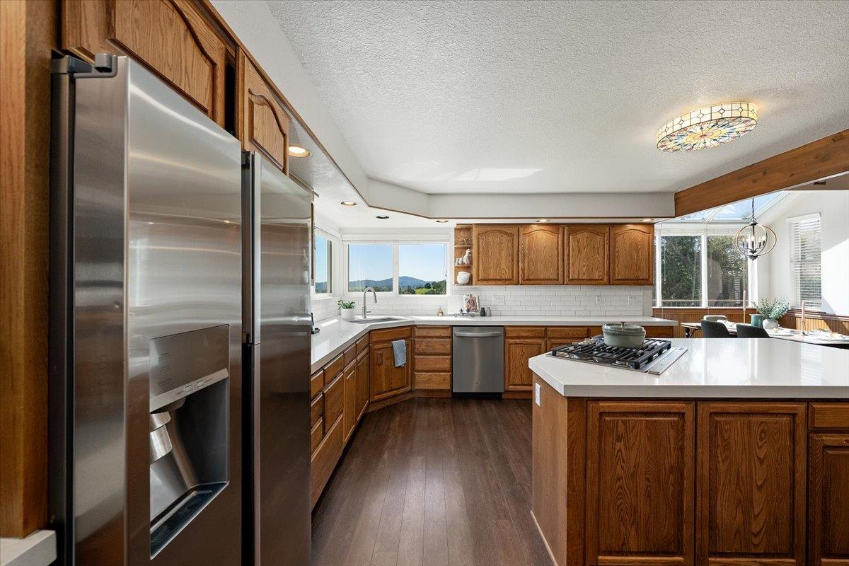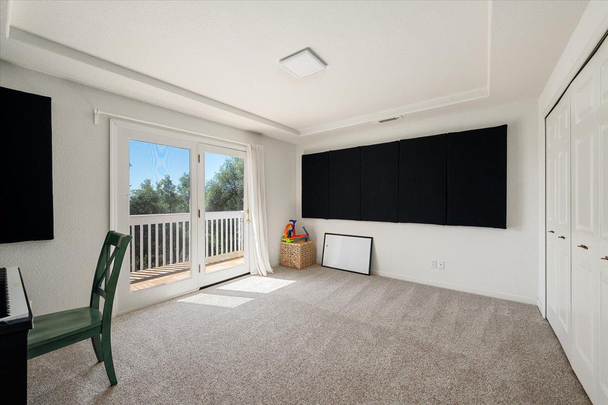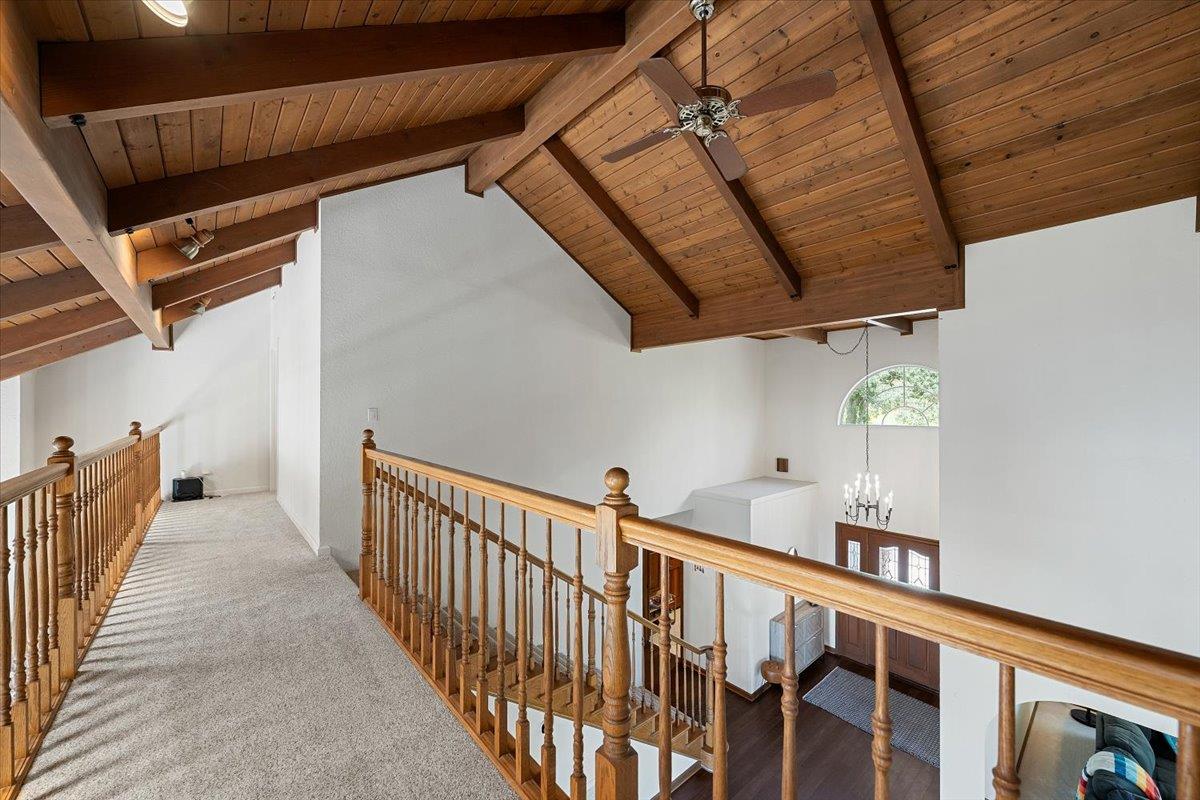 Tucked among the rolling hills of the Sierra foothills, this inviting home offers the perfect blend of comfort, privacy, and natural beauty. Set on a peaceful, tree-studded 5 acre parcel surrounded by mature oaks and scenic views, it provides a tranquil retreat just minutes from town. Inside, the home is bright and welcoming, with wooden vaulted ceilings that add warmth, character, and a sense of openness throughout the main living areas. At the heart of the home is a spacious, open kitchen featuring ample cabinetry and workspace, ideal for both everyday living and entertaining. The kitchen flows seamlessly into a cozy breakfast nook for casual dining, while a separate formal dining room offers an elegant space for hosting gatherings and special occasions. Designed with flexibility in mind, the thoughtful floor plan includes both a comfortable family room and a formal living room, creating distinct spaces for relaxation and entertaining. The main-level primary suite serves as a private retreat, complete with a woodstove and an en-suite bath featuring dual sinks and a jetted tub. Upstairs, three well-sized bedrooms provide comfortable accommodations, along with an updated bathroom that adds modern style and convenience. This layout offers a natural separation between living and sleeping areas, enhancing both privacy and functionality. A generous deck extends the living space outdoors, offering the perfect setting for relaxing, entertaining, or simply taking in the serene surroundings. Whether youre seeking a full-time residence or a peaceful foothill escape, this home delivers comfort, charm, and a true connection to nature.