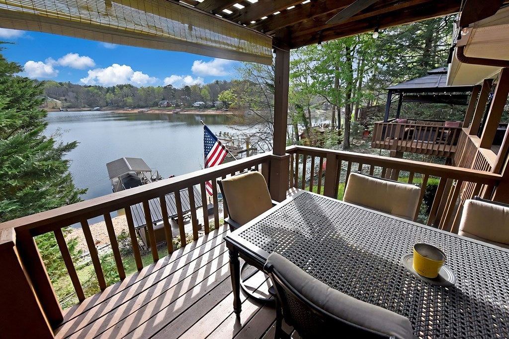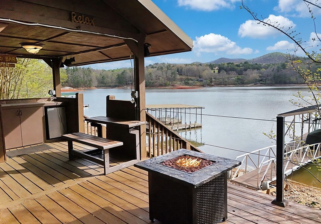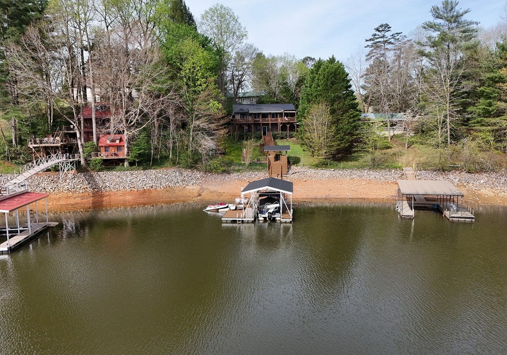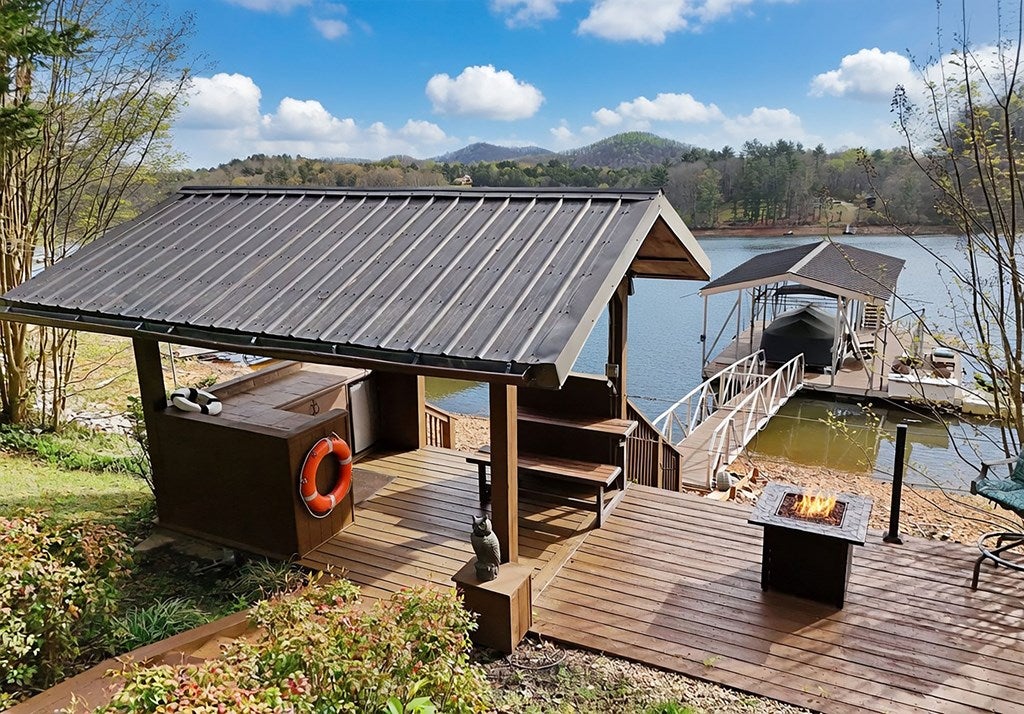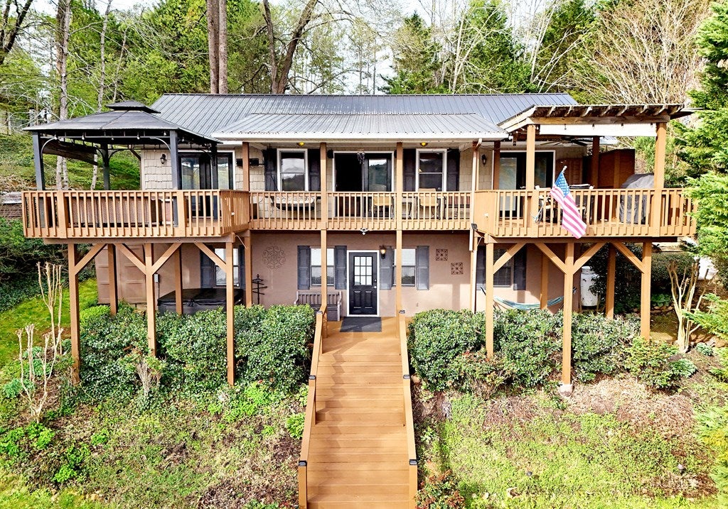 Welcome to lakefront living at its finest on beautiful Lake Nottely, just minutes from downtown Blairsville. This fully furnished 3 bedroom, 3 bath home offers the perfect blend of comfort, functionality, and outdoor enjoyment with year round water at your private covered dock. The main level features two spacious bedrooms, both designed as master suites, offering privacy and convenience for family or guests. The open living area flows seamlessly into the kitchen and dining space, all positioned to take in the peaceful lake setting. A two car garage adds easy access and everyday practicality. The finished basement is built for entertaining, complete with an additional master suite, a wet bar, and plenty of space to relax after a day on the water. Step outside and you will find multiple areas designed to enjoy the outdoors, including a hot tub, a fire pit with a dedicated sitting area, and a charming pavilion featuring a bar and refrigerator, perfect for hosting without ever leaving your backyard. Whether you are looking for a full time residence, a second home, or an investment opportunity, this property checks all the boxes with its unbeatable location close to town, functional layout, and true lakefront lifestyle. Enjoy boating, fishing, and year round water access all from your own dock while still being just minutes from shopping, dining, and everything Blairsville has to offer.