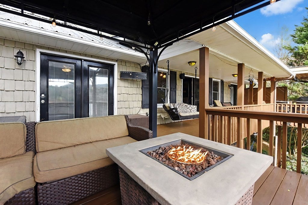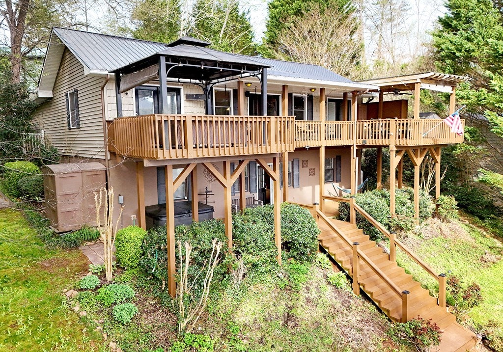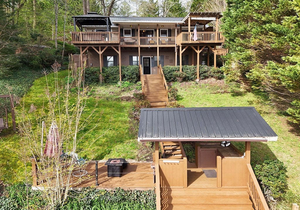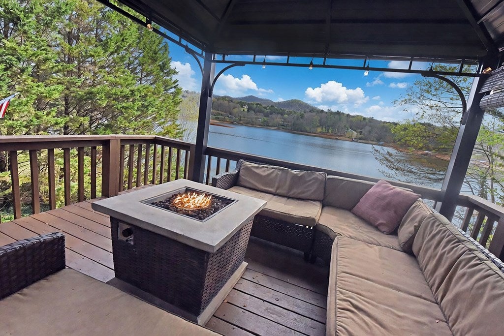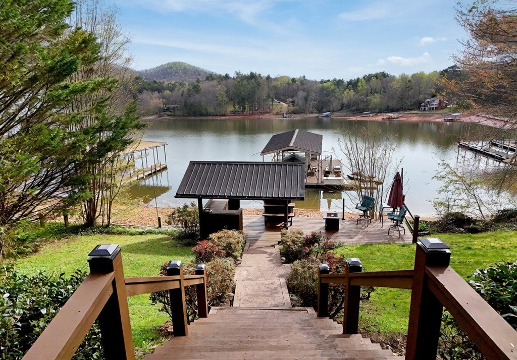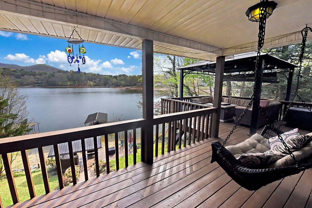 Welcome to lakefront living at its finest on beautiful Lake Nottely, just minutes from downtown Blairsville. This fully furnished 3 bedroom, 3 bath home offers the perfect blend of comfort, functionality, and outdoor enjoyment with year round water at your private covered dock. The main level features two spacious bedrooms, both designed as master suites, offering privacy and convenience for family or guests. The open living area flows seamlessly into the kitchen and dining space, all positioned to take in the peaceful lake setting. A two car garage adds easy access and everyday practicality. The finished basement is built for entertaining, complete with an additional master suite, a wet bar, and plenty of space to relax after a day on the water. Step outside and you will find multiple areas designed to enjoy the outdoors, including a hot tub, a fire pit with a dedicated sitting area, and a charming pavilion featuring a bar and refrigerator, perfect for hosting without ever leaving your backyard. Whether you are looking for a full time residence, a second home, or an investment opportunity, this property checks all the boxes with its unbeatable location close to town, functional layout, and true lakefront lifestyle. Enjoy boating, fishing, and year round water access all from your own dock while still being just minutes from shopping, dining, and everything Blairsville has to offer.