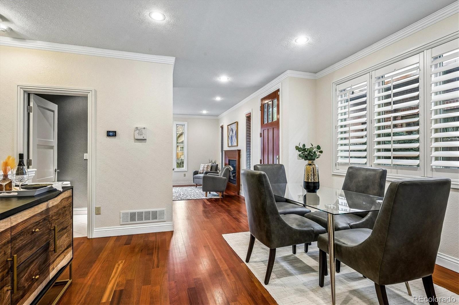 Perfectly positioned just half a block from iconic Washington Park, this exceptional townhome offers the ultimate blend of location, luxury, and lifestyle. Enjoy strolls to beloved neighborhood cafs and restaurants, with Cherry Creek Norths premier shopping, dining, and galleries just moments away. Recently refreshed and designed for effortless entertaining, the open-concept main level features a spacious kitchen with center island, slab granite countertops, and stainless steel appliances, flowing seamlessly into light-filled living and dining areas. The front living area with fireplace could also make a great office for the work at home professional. Indoor-outdoor living is elevated with a privately fenced backyardideal for morning coffee, alfresco dinners, or relaxing evenings at home. The primary suite is a true retreat, complete with a cozy fireplace, spa-inspired en-suite bath, and a walk-in closet outfitted with custom built-ins. A second en-suite bedroom completes the second floor. Upstairs, a versatile rooftop room opens to a private deck showcasing breathtaking park and mountain viewsan inspiring space for the ultimate home office, studio, or lounge. Additional highlights include a finished basement offering flexible living space wired for surround sound plus a third bedroom and 4th bath. A two-car garage offers added convenience. This is refined urban living at its beststeps from the park, surrounded by vibrant amenities, and thoughtfully designed for modern Denver living, in move-in condition.