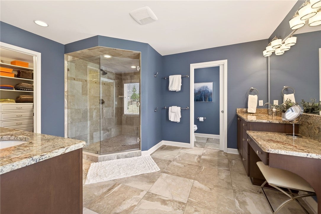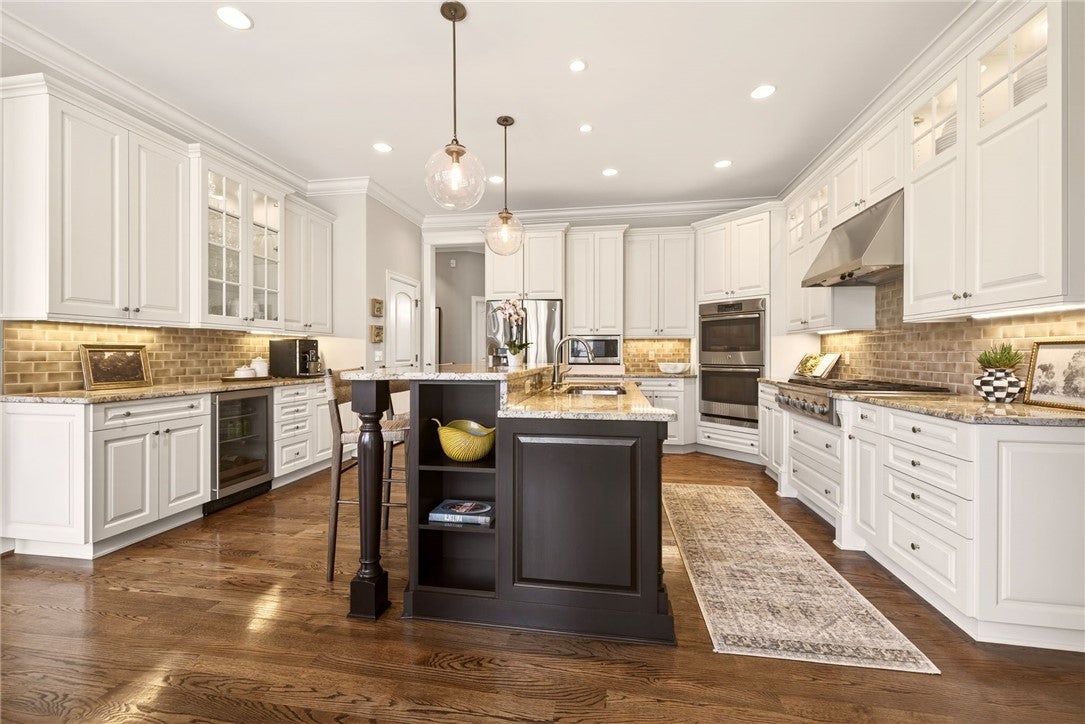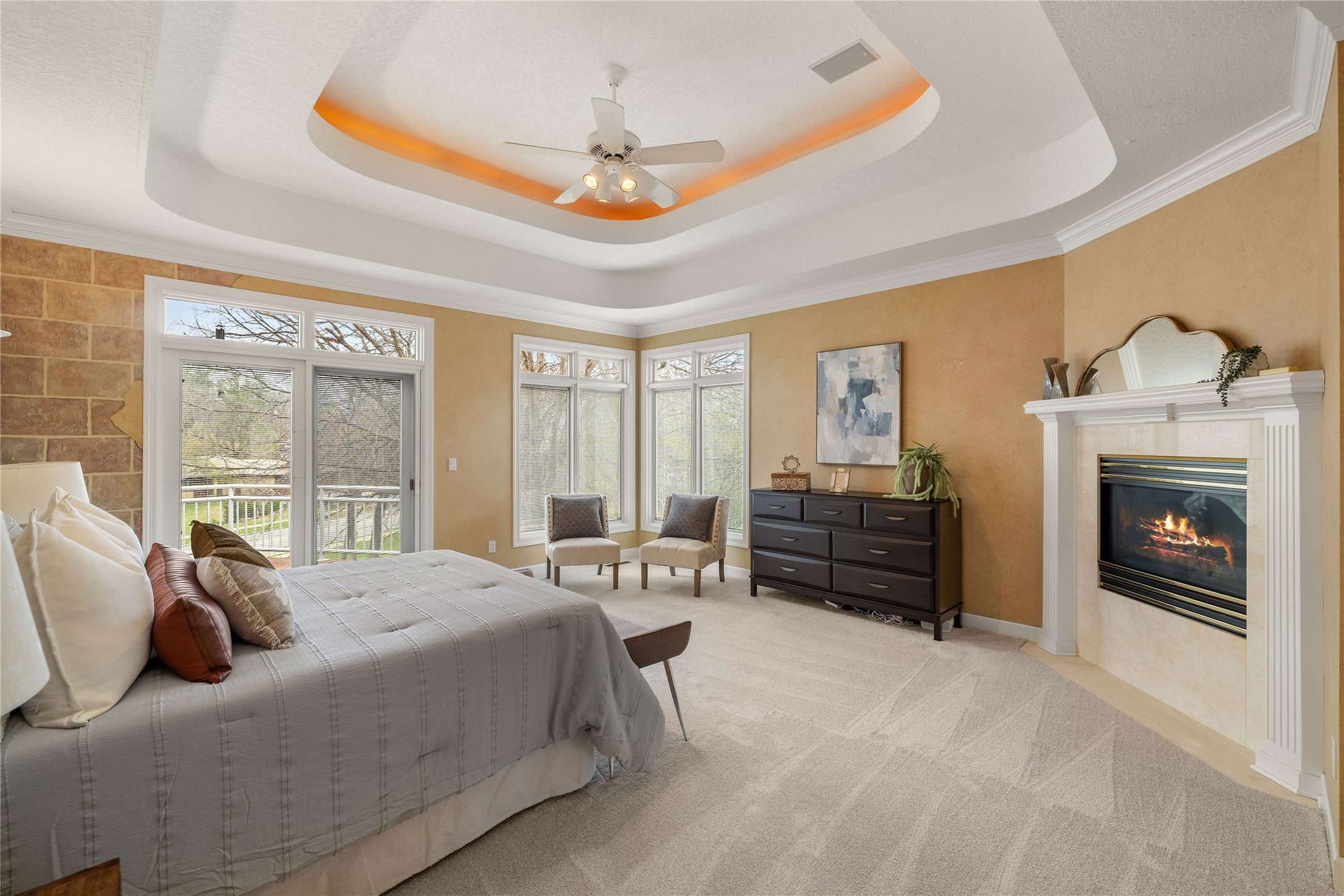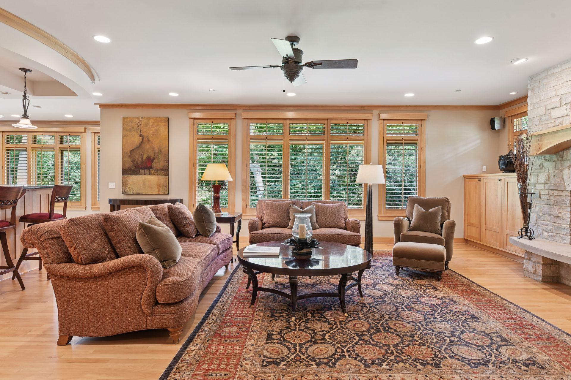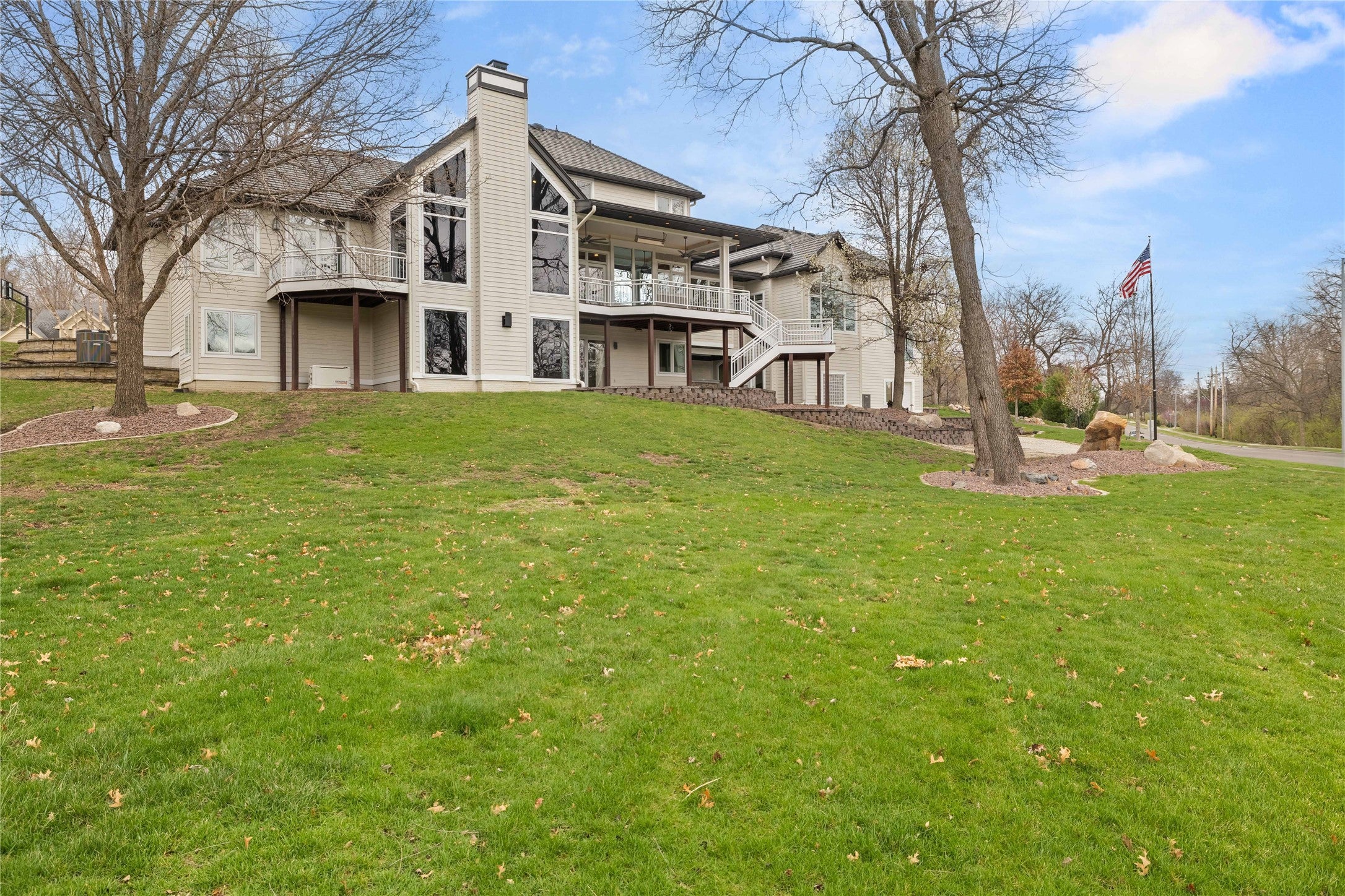 Exquisite custom built, one owner home on a quiet WDM cul-de-sac offering over 8,500 sq ft of finished living space and an incredible 2,700 sq ft of garage space (up to 17 cars). Grand two story entry, sunken great room with floor to ceiling windows, gas fireplace, and custom-built ins. Open kitchen with cherry cabinetry and granite counters plus access to a partially covered deck with gas hookup and outdoor fridge. Main level primary suite features a fireplace, private balcony, heated floors, soaking tub, and hidden TV in the mirror. Upstairs are 3 add. BR and Bath, Bonus room. Enclosed breezeway leads to another second full kitchen, perfect for entertaining or multigenerational living. Upper level here offers two flex rooms. Walkout lower level includes two additional bedrooms, en-suite bath, fireplace, patio access, abundant storage, and more garage space. Dual zoned HVAC. Truly a one-of-a-kind home with endless possibilities. See feature sheet for full list of updates. All information obtained from seller and public record.