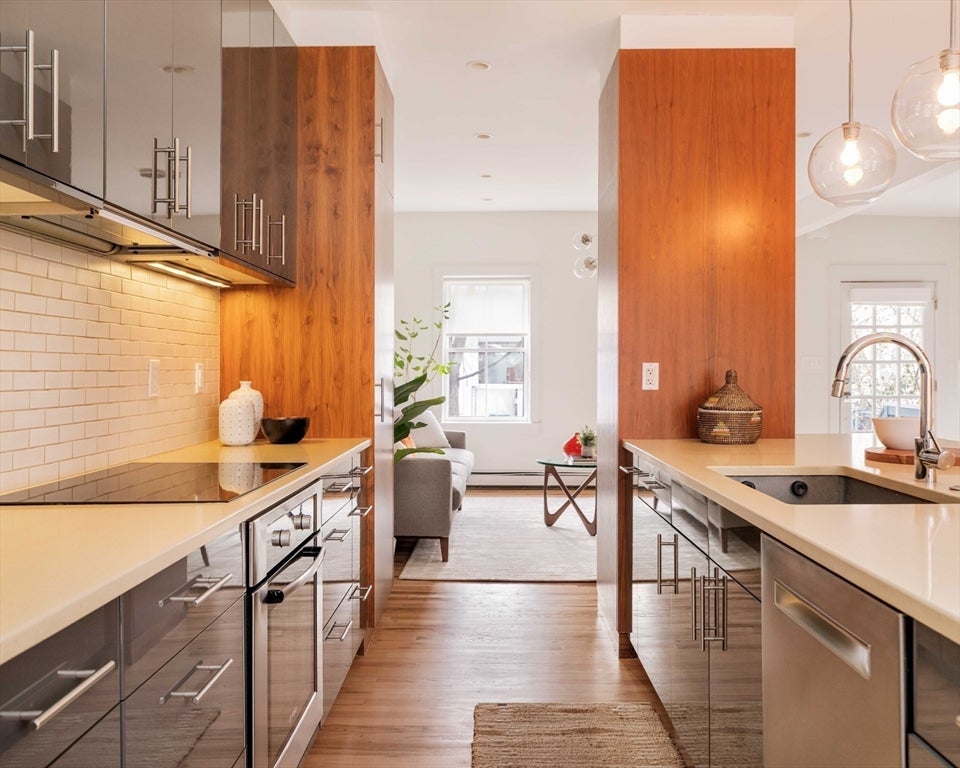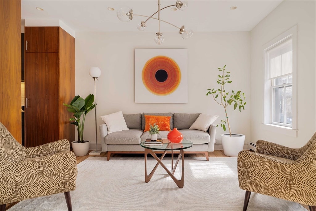 Cambridgeport Developed by acclaimed Cambridge architect David Aposhian and reimagined with Top Boston interior designers, this classic townhome is a sophisticated and highly livable expression of modern family living. A complete renovation elevates every detailfrom custom baths to thoughtfully crafted interiorsbalancing playful design with everyday function. The stunning kitchen is a true centerpiece, blending walnut and glossy cabinetry, paneled walls and ceilings, dining nook with banquette, abundant built-ins and storage. Three bedrooms are privately arranged on the upper levels, while the lower level offers a versatile family, media, or craft room with built-ins and a beverage station. Set in leafy, hip and family friendly Cambridgeport, moments to Central Square, the Charles River and parks, a fenced bluestone gravel patio, exterior shed, basement storage plus off-street parking, complete this exceptional offeringperfect for those seeking design, comfort, and connections