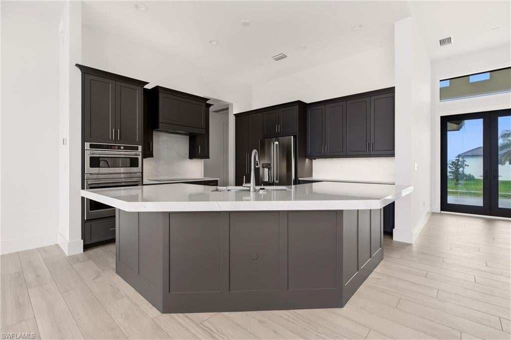 One or more photo(s) has been virtually staged, AI generated or rendered. WATERFRONT NEW CONSTRUCTION!!!Discover Luxury Island living at this stunning Brand New 5-bedroom, 4.5-bath Waterfront home in Marco Island! With Over 4,500 sq ft under roof and 3,200 sq ft of air-conditioned living space, this property offers space, style & comfort for family and guests. For those of you who are Boat lovers, Enjoy Gulf Access with only one bridge to navigate & has a 14ft Clearance that is perfect for boating and water adventures. Just 6 blocks from the Private Residents beach,combines Waterfront views, Island convenience and Luxury Living. This Home has Custom Finishes & Upgrades throughout and is in a Great Location, in the Center of the Island. Southern Exposure & Mesmerizing Sunsets you will enjoy your Screened in Lanai and 2nd Floor Balcony to soak it all in. Now lets head inside where you will get Amazed with all of the Custom Upgrades and Designs.The moment you walk in,you will fall in love with the Fully Pocketed Glass Doors that gives you Full Access and Views to your Screened in Lanai ,Pool and Water Views... The Family Room has a Custom Tray Ceiling with LED lights for the perfect Glow, these lights are also under your Kitchen Island , Below and Above your upper Cabinets too, creating a Beautiful Ambiance at night. The Kitchen is a Chefs Dream with a Spacious Island , Quartz Counter Tops and Matching Backsplash. Upgraded Cabinets and wait til you check out the Hidden Walk In Pantry. Stainless Steel Upgraded Appliances, Induction Cook top and Built in Microwave & Oven to finish it off. Your Dining Area also has Sliding doors to let in all of the Natural Sunlight and Views. Head over to your Main Bedroom Suite Complete with Tray ceiling, 2 Walk -in Closets, Bathroom with Dual Vanity, Soaking Tub and Custom Designed Shower and Upgraded Tiles. 1st Floor Also Features an Office, 2nd Bedroom w/Full Bath that Doubles as POOL Bath from out back,Laundry Room with plenty of Storage, Half Bath & Access to your 3 Car Garage. Head Upstairs & check out the other 3 Bedrooms and 2 more Full Bathrooms. The 5th Bedroom would also make a Great Den & Bedroom Combo, especially when it leads to the Awesome 2nd Floor Balcony, from there the Views of the Island and Sunsets are Breathtaking. As if this was not enough already, head outside to my Favorite part of the house and your Backyard Oasis. There you will notice all of the Covered Area to Relax and Entertain with your Outdoor Kitchen complete with BBQ Grill, Sink and Granite Countertops, a Heated Pool with Sun Shelf & Spa all in a Screened Enclosure to Finish off this Incredible area. Take this all in while looking out over the canal where you can drop a line to go fishing, draw up plans for a Dock and Boat Lift or just check out the Dolphins, Manatees and Wildlife that stop by your home. This Home Checks ALL the Boxes -with Location, Waterfront, New Construction & More All that is missing is You !!!