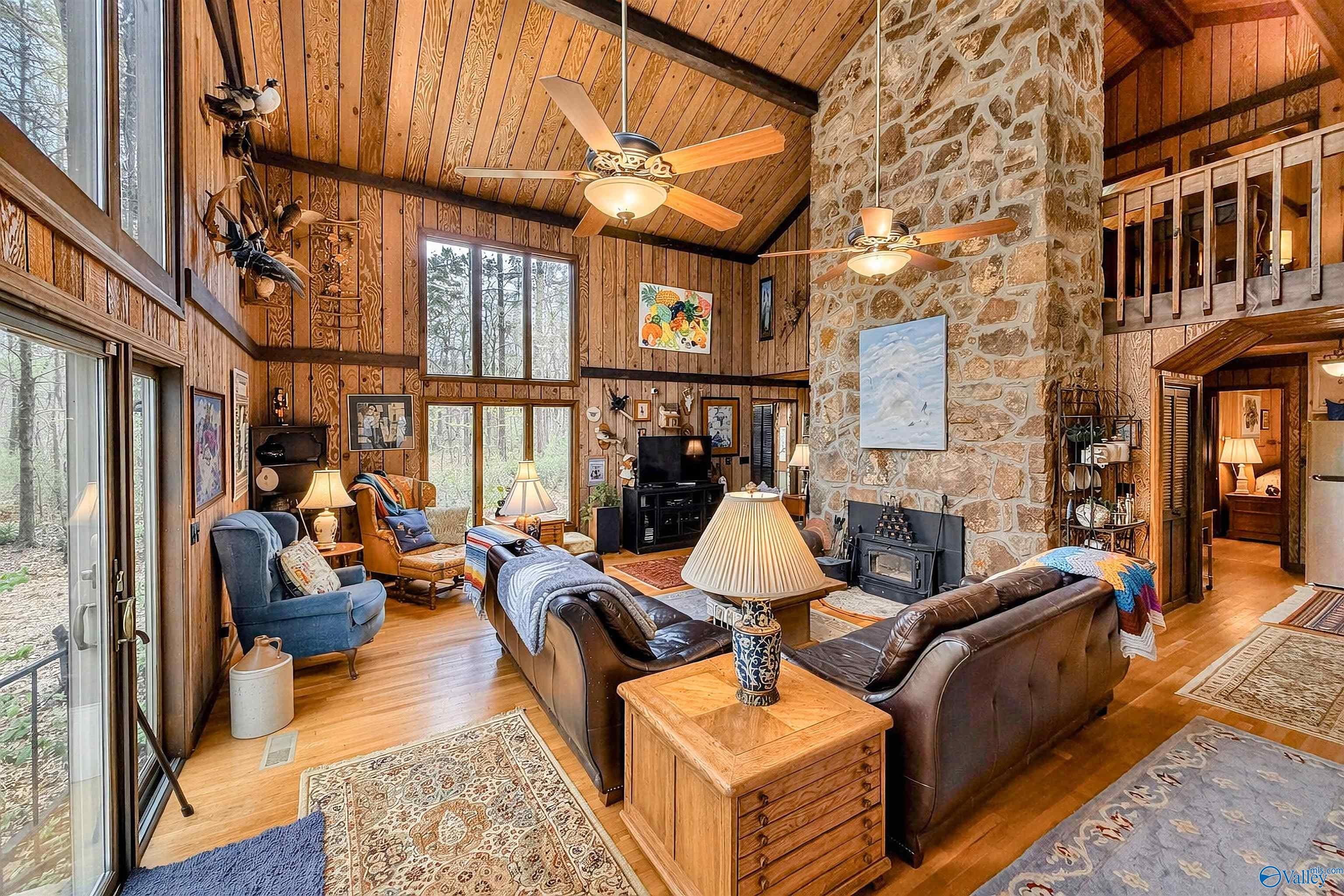 NESTLED ON /- 6.75 BROW ACRES ATOP LOOKOUT MOUNTAIN NEAR MENTONE, THIS CHARMING CABIN-STYLE INTERIOR RETREAT OFFERS BREATHTAKING WEST BROW SUNSET VIEWS AND UNFORGETTABLE MOUNTAIN SCENERY. JUST 1 MILE FROM MENTONE VILLAGE AND MINUTES FROM DESOTO FALLS, IT BLENDS PRIVACY WITH CONVENIENCE. THE OPEN LAYOUT FEATURES 3 BEDROOMS AND 3 BATHS, HIGHLIGHTED BY A 20-FOOT VAULTED CEILING, WOOD FLOORS AND WALLS, AND A STUNNING 20-FOOT ROCK FIREPLACE. ENJOY 48 SCREENED PORCH OVERLOOKING THE BROW W/ A PEACEFUL SETTING- PERFECT FOR EMBRACING MOUNTAIN LIVING AT ITS FINEST. CLICK VIRTUAL TOUR ABOVE TO SEE A VIDEO OF THE PROPERTY.
