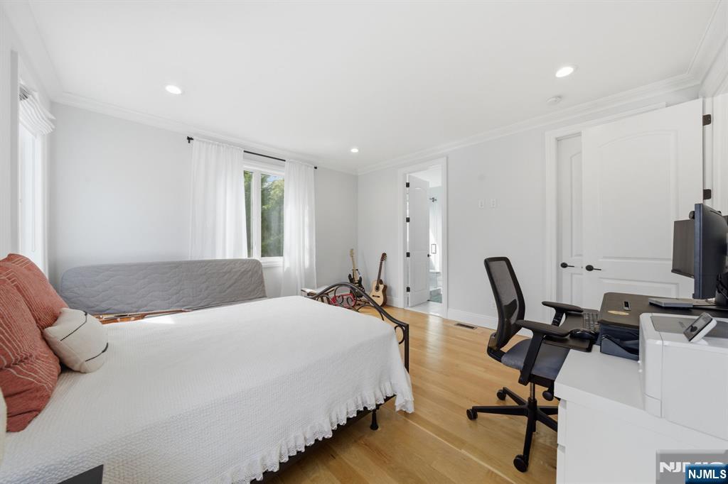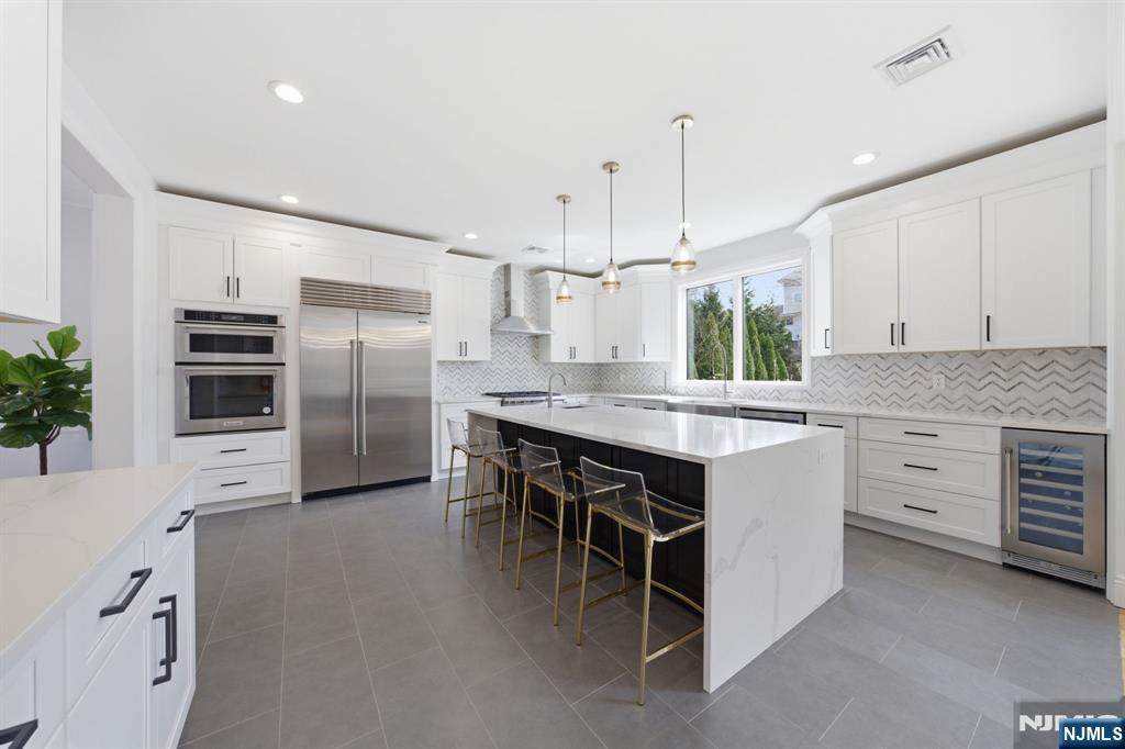 Experience the pinnacle of luxury in this 2020-built Modern Colonial, perfectly situated in the prestigious enclave of Alpine. Spanning approximately 3,307 sq. ft. of masterfully designed living space, the journey begins with a grand two-story foyer illuminated by a stunning designer chandelier and abundant natural light. The main level is an entertainers dream, featuring a formal living room anchored by a custom-designed fireplace and an elegant formal dining room. The heart of the home is the bright, open-concept chefs kitchen, outfitted with top-tier Commercial grade appliances and sliding doors that lead to an open private yard. A rare first-floor bonus suite with a full bath offers ultimate versatility for guests or a home office. Retreat to the second floor primary master bedroom boasting dual walk-in closets and a spa-inspired bath with a soaking tub and rainfall shower. In addtion to one oversized bedroom, one standard size bedroom, full bath, and a laundry room complete this level. The expansive walk-out lower level adds exceptional value, featuring a large recreation room, three walk-in closets, dedicated gym area, and full bath. Meticulous details abound: rich oak flooring, crisp crown molding, a two-car garage, and integrated security. This residence offers a seamless transition into the North Jersey/New York regions most coveted lifestyle. Welcome home where comfort meets style.