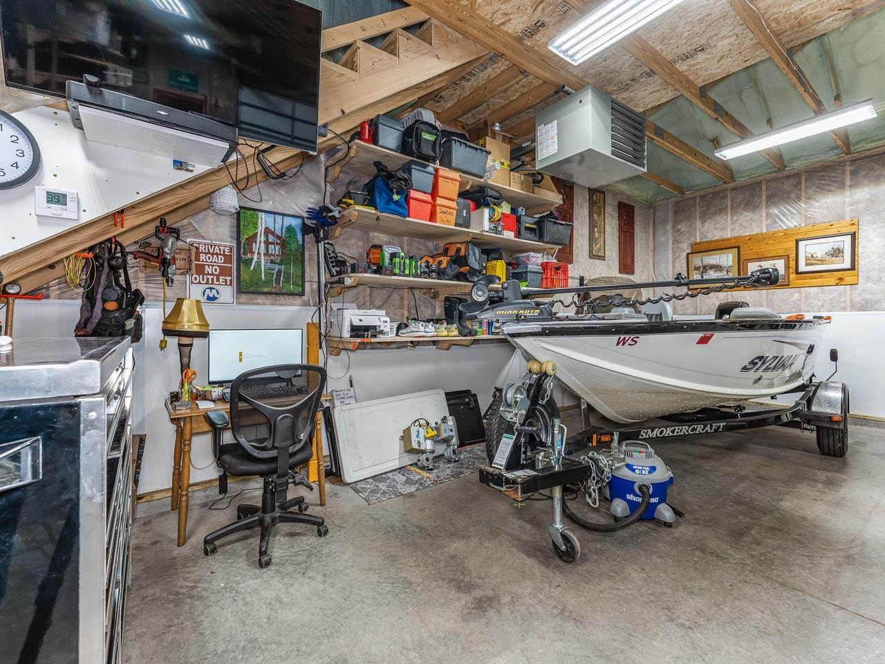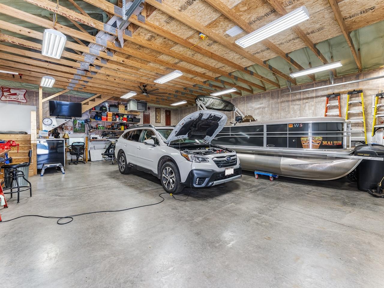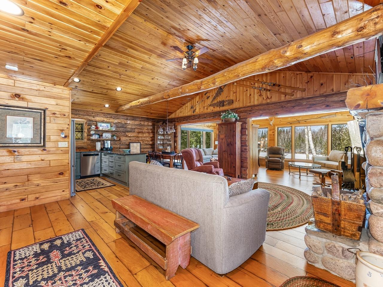 Rare is the property that offers both a meticulously updated log home and the ultimate toy shed. Tucked along 238 feet of pristine frontage on North Turtle Lake, part of a highly sought-after 3-lake chain—this gem perfectly balances rustic character with modern comfort. Inside, the open-concept layout is framed by hand-hewn log beams, wide-plank hickory floors, and an impressive stone fireplace that begs for a crackling fire. Large windows pull the water views right into the living area, while the new Trex decking offers the perfect spot for morning coffee. For hobbyists, the wow factor continues with two garages, one being fully insulated with forced air heat and stairway to upper level, they provide more than enough space for a premium workshop and all the gear you’ll need to explore the chain. With all-new mechanicals, central air, and high-end finishes throughout, this property offers a level of quality and storage that is truly hard to find in the Northwoods.