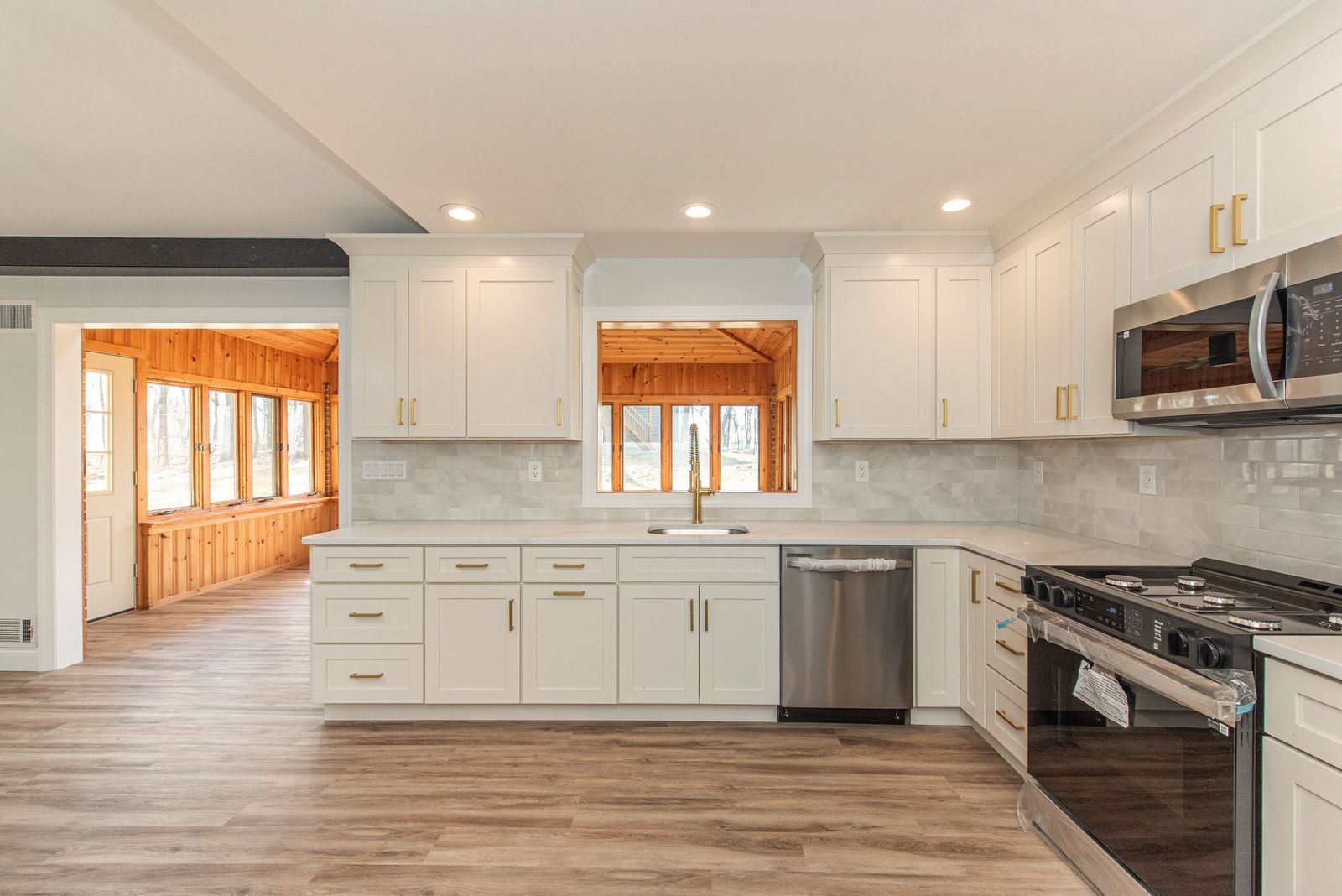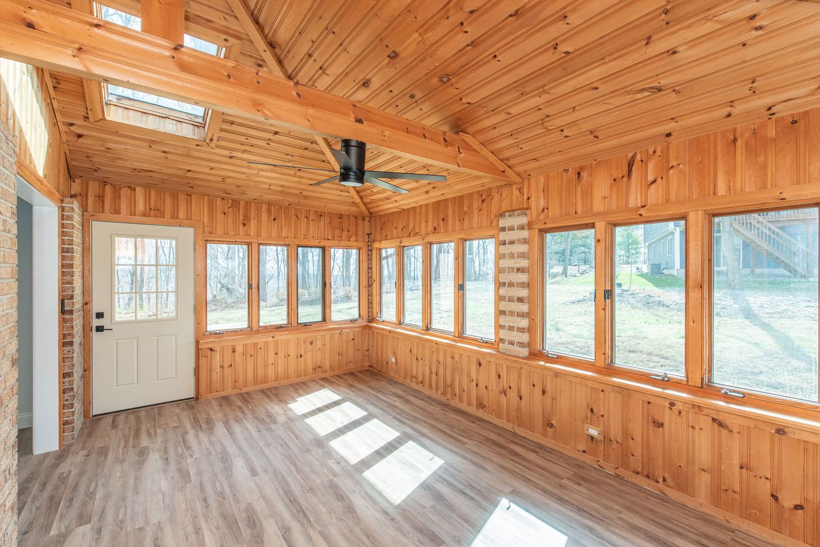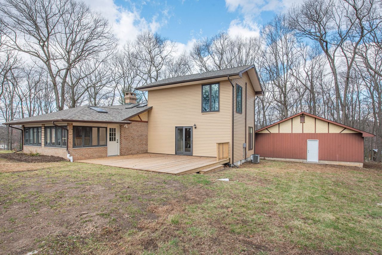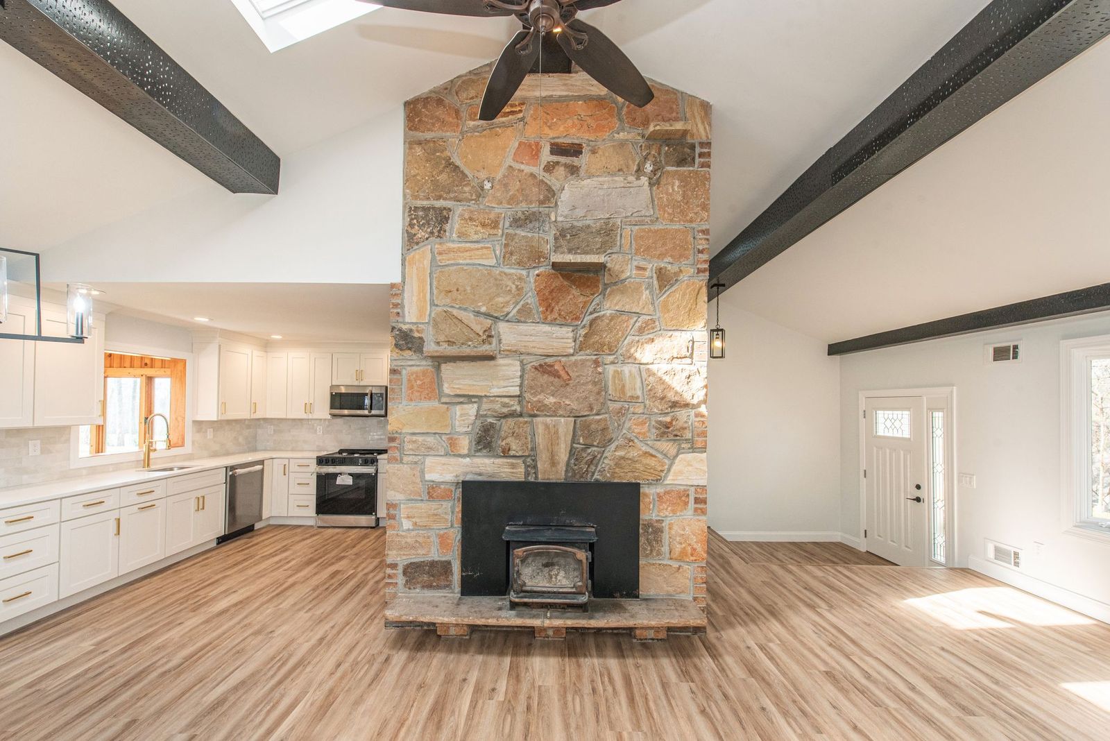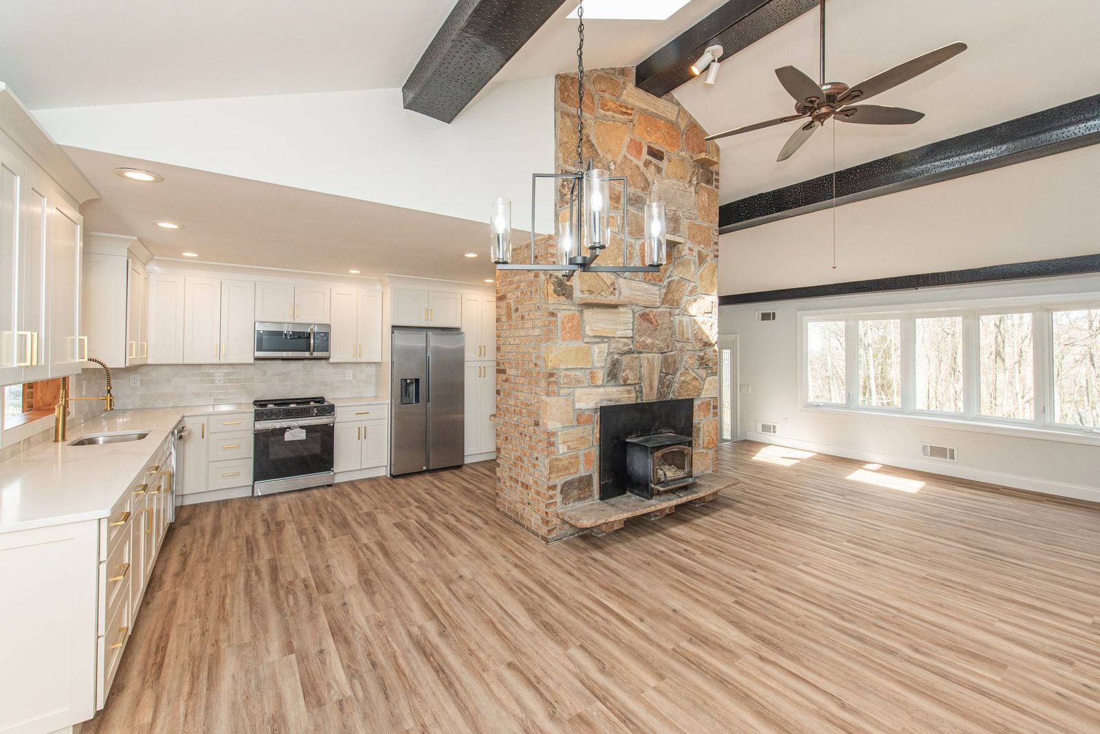 This is the one youve been waiting for! Stunning, fully remodeled 3-bedroom, 2.5 bath custom home srt on over 2 private acres of picturesque property. Step into a designer kitchen featuring stainless appliances and sleek quartz countertops, perfect for everyday living and entertaining. The brethtaking living room offers vaulted ceilings and a gorgeous fireplace, creating a dramatic yet inviting space. Escape to your private second-floor primary suite-your own peaceful retreat. A bright and spacious sunroom leads to a deck overlooking the expansive property, ideal for indoor-outdoor living. Complete with an oversized 2-car garage and brand-new roo, this home truly has it all. Nothing to do but move right in and enjoy luxury living at its finest!
