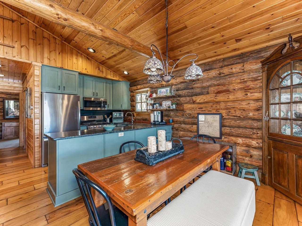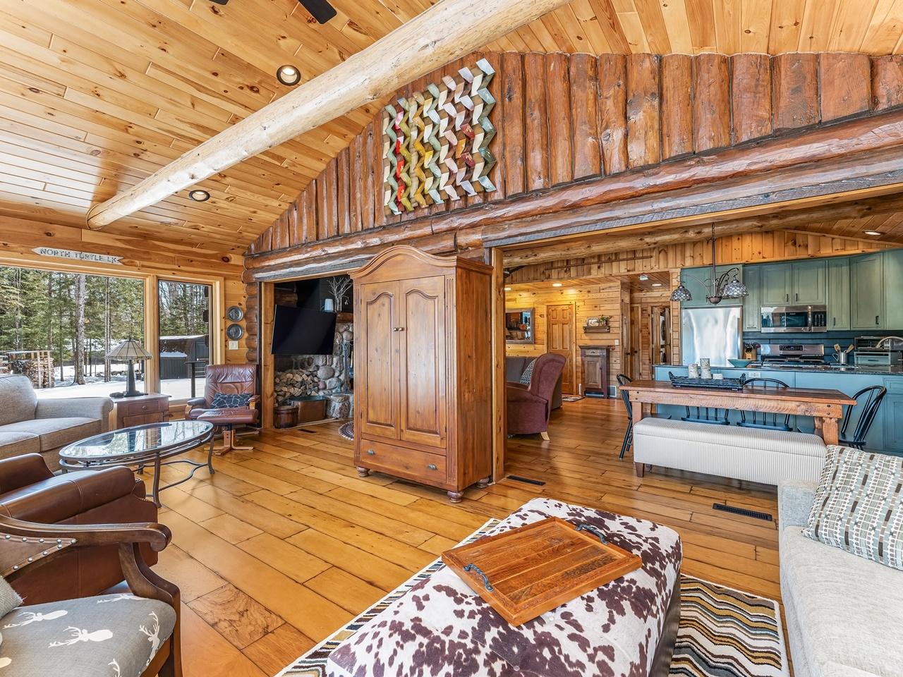 Rare is the property that offers both a meticulously updated log home and the ultimate toy shed. Tucked along 238 feet of pristine frontage on North Turtle Lake, part of a highly sought-after 3-lake chain—this gem perfectly balances rustic character with modern comfort.