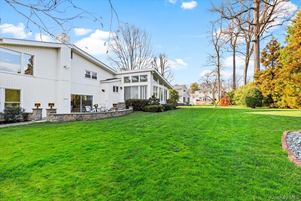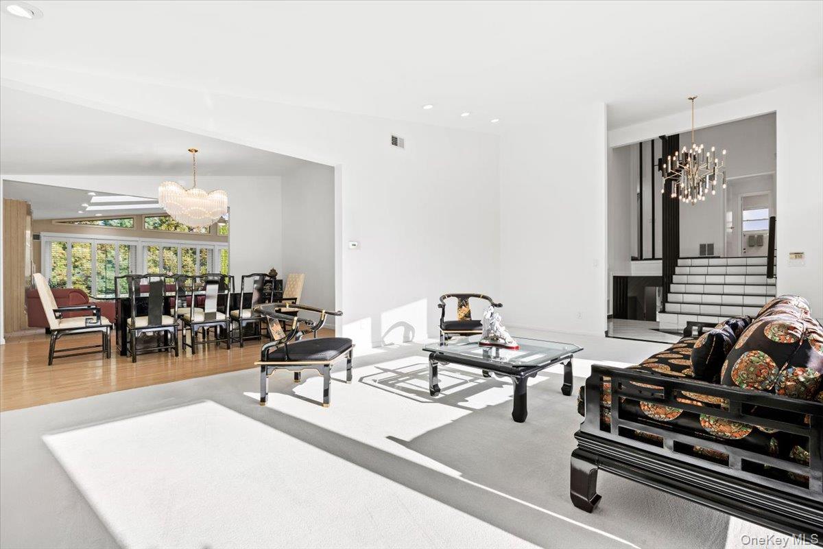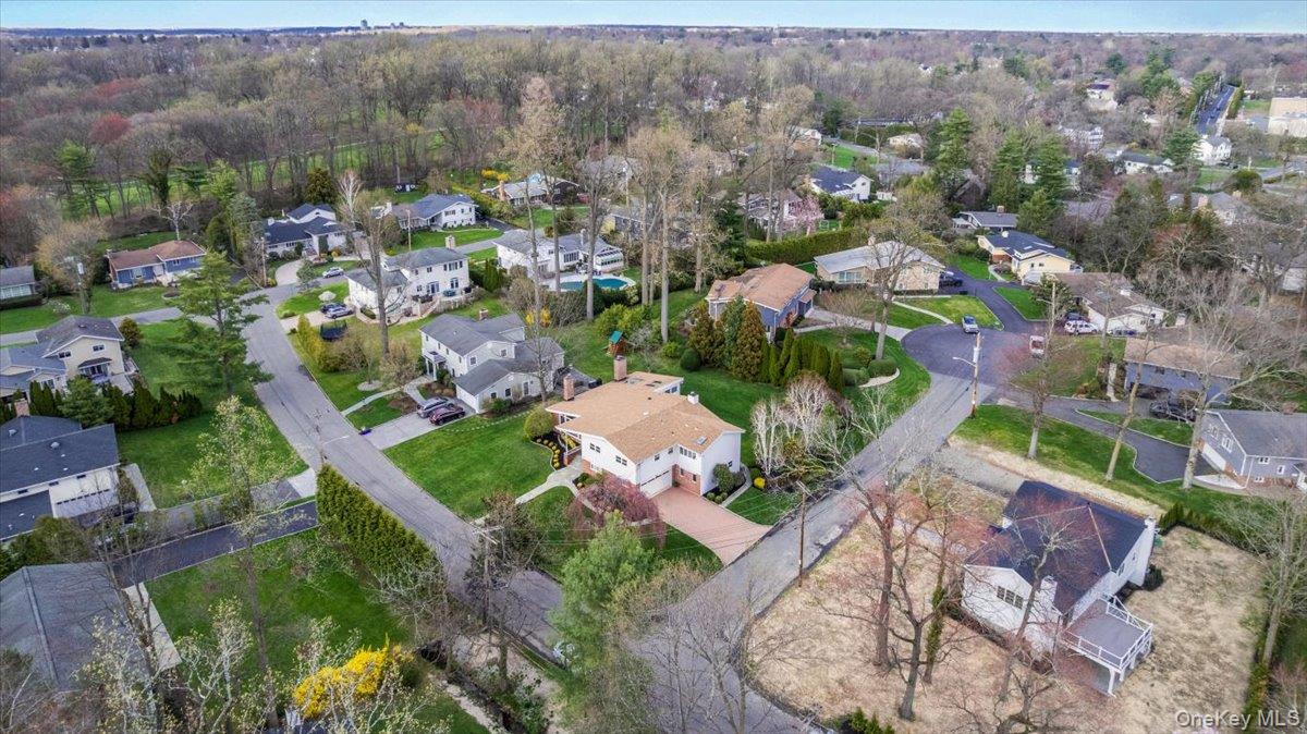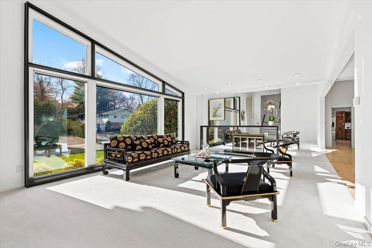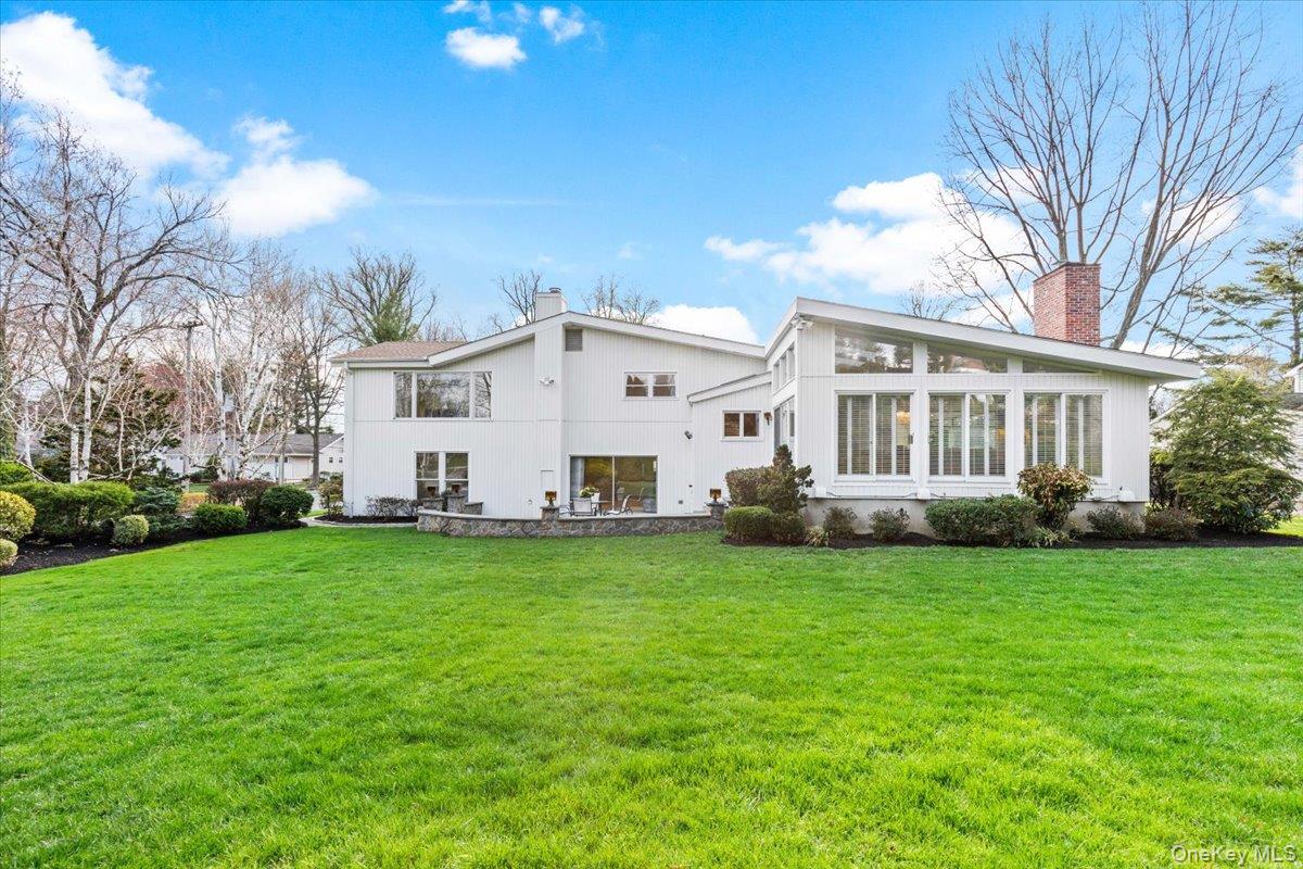 Welcome to 16 Dell Drive, an elegant Mid-Century Modern split-level residence perfectly positioned on a coveted corner lot in Lake Isle Estates. This impeccably maintained home offers five expansive bedrooms and three full baths, blending architectural sophistication with refined comfort. The grand entry sets the tone with soaring ceilings, a custom designer chandelier, and sweeping sightlines that showcase the homes exceptional scale. The main level features an airy living room anchored by a sleek fireplace, a formal dining room illuminated by a handcrafted Italian Murano crystal chandelier, and an impressive family room with a second fireplace, vaulted ceilings, skylights, and custom plantation shutters framing serene views of the park-like grounds. The oversized eat-in kitchen is ideal for both daily living and entertaining, complete with generous prep space and a built-in wine refrigerator. The upper level hosts a luxurious primary suite with dual walk-in closets, a spacious spa-inspired bath, and tranquil vistas of the property. Three additional bedroomseach generously proportionedshare a beautifully appointed hall bath. The lower level offers exceptional versatility, featuring a large family room with a wood-burning stove, an additional bedroom with a walk-in closet, a full bath, and direct access to the two-car garagean ideal setup for guests, extended family, or private living quarters. Additional premium features include a new roof, all-new LED lighting, a new secondary HVAC system, and a partial basement with laundry and ample storage. Residents of Lake Isle Estates enjoy exclusive access to The Shore Club, offering a private pool, kayaking, and non-motorized water sports. Membership eligibility at the renowned Lake Isle Country Club provides further luxury amenities, including golf, tennis, and resort-style swimming. Located within the highly regarded Eastchester Union Free School Districtwith bus service to all grade levelsand convenient to transportation, shopping, and more, this home presents a rare opportunity in a premier setting.