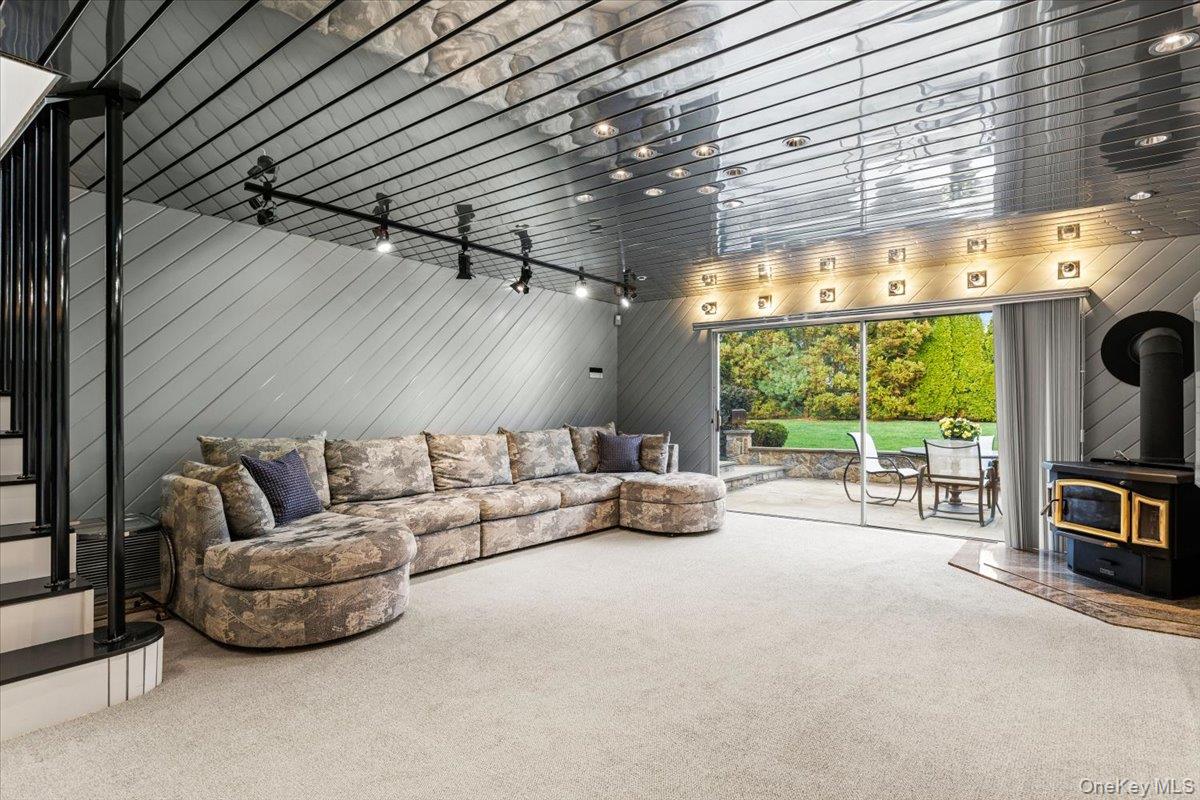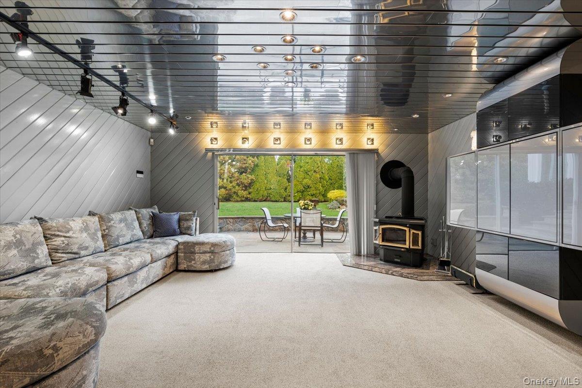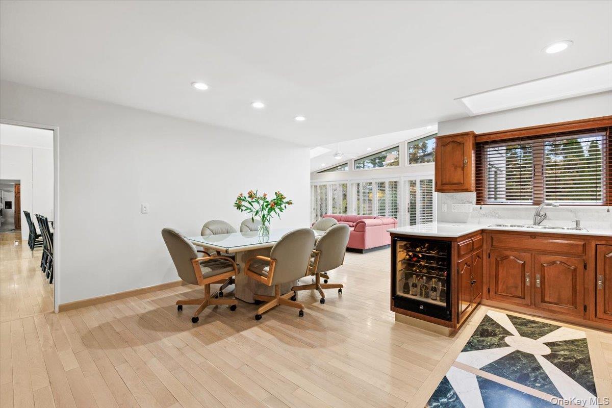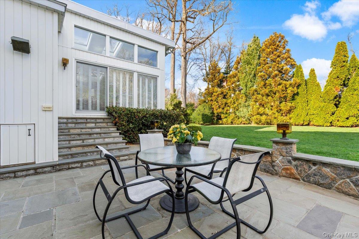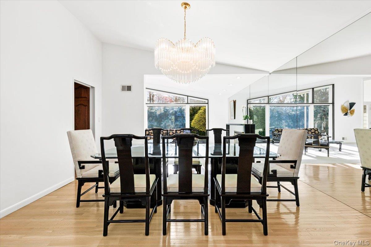Welcome to 16 Dell Drive, an elegant Mid-Century Modern split-level residence perfectly positioned on a coveted corner lot in Lake Isle Estates. This impeccably maintained home offers five expansive bedrooms and three full baths, blending architectural sophistication with refined comfort. The grand entry sets the tone with soaring ceilings, a custom designer chandelier, and sweeping sightlines that showcase the homes exceptional scale. The main level features an airy living room anchored by a sleek fireplace, a formal dining room illuminated by a handcrafted Italian Murano crystal chandelier, and an impressive family room with a second fireplace, vaulted ceilings, skylights, and custom plantation shutters framing serene views of the park-like grounds. The oversized eat-in kitchen is ideal for both daily living and entertaining, complete with generous prep space and a built-in wine refrigerator. The upper level hosts a luxurious primary suite with dual walk-in closets, a spacious spa-inspired bath, and tranquil vistas of the property. Three additional bedroomseach generously proportionedshare a beautifully appointed hall bath. The lower level offers exceptional versatility, featuring a large family room with a wood-burning stove, an additional bedroom with a walk-in closet, a full bath, and direct access to the two-car garagean ideal setup for guests, extended family, or private living quarters. Additional premium features include a new roof, all-new LED lighting, a new secondary HVAC system, and a partial basement with laundry and ample storage. Residents of Lake Isle Estates enjoy exclusive access to The Shore Club, offering a private pool, kayaking, and non-motorized water sports. Membership eligibility at the renowned Lake Isle Country Club provides further luxury amenities, including golf, tennis, and resort-style swimming. Located within the highly regarded Eastchester Union Free School Districtwith bus service to all grade levelsand convenient to transportation, shopping, and more, this home presents a rare opportunity in a premier setting.