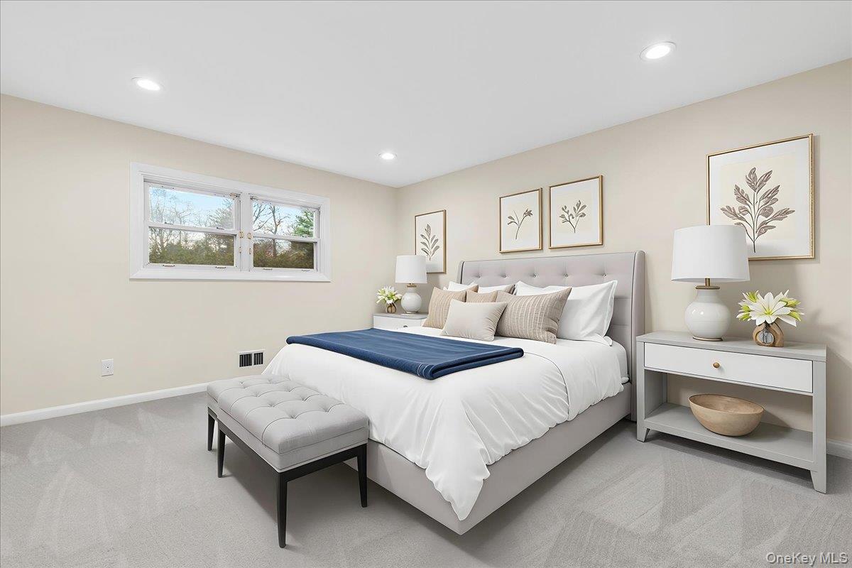 Welcome to 16 Dell Drive, an elegant Mid-Century Modern split-level residence perfectly positioned on a coveted corner lot in Lake Isle Estates. This impeccably maintained home offers five expansive bedrooms and three full baths, blending architectural sophistication with refined comfort.