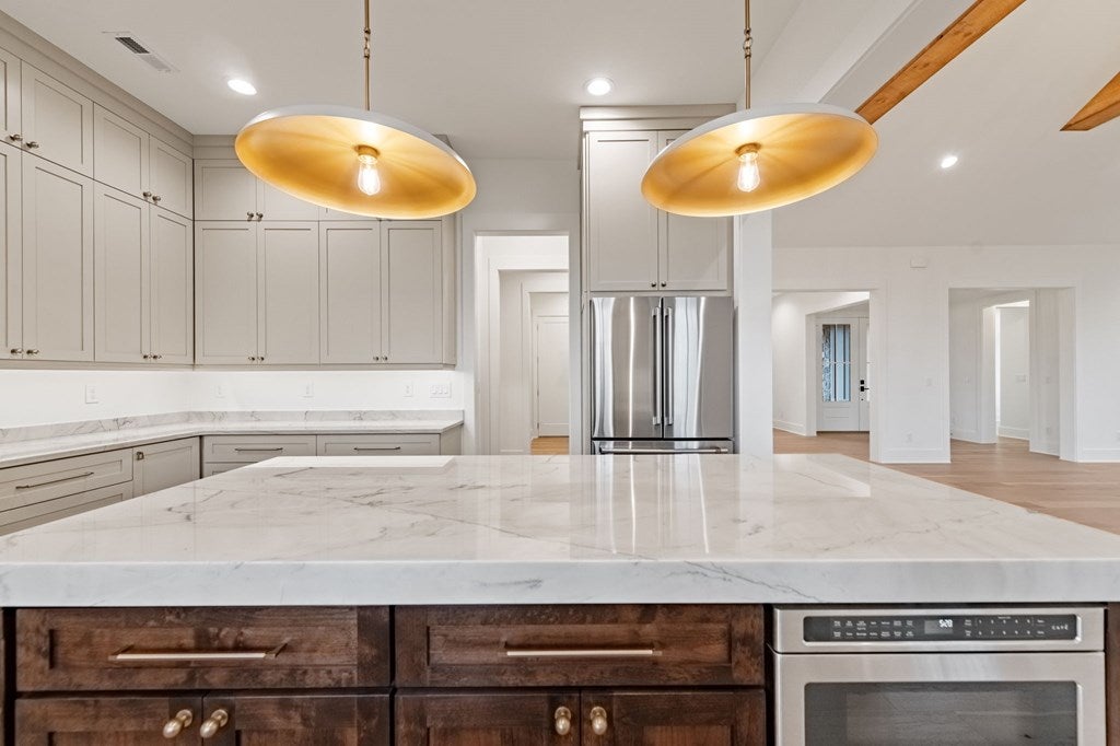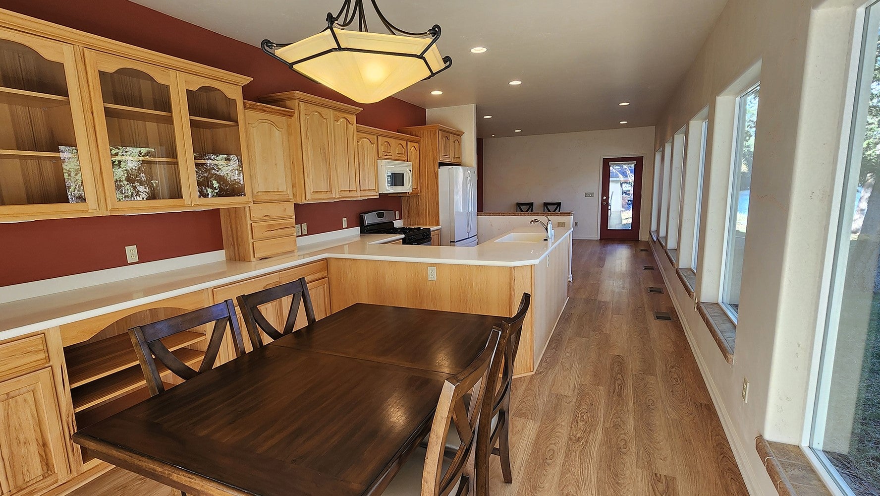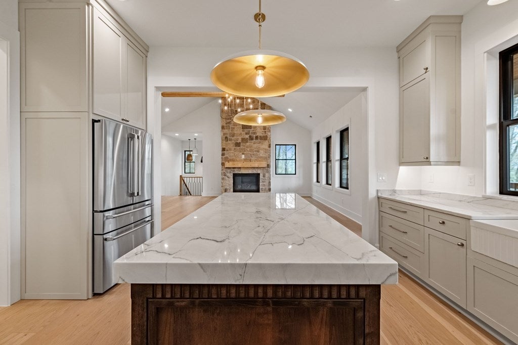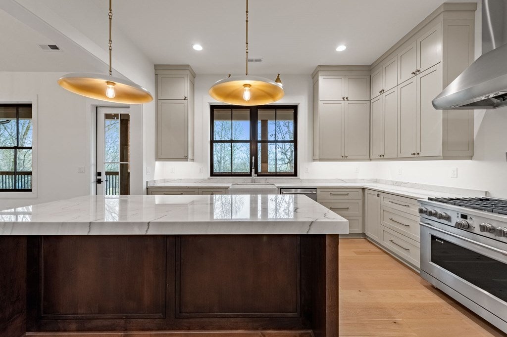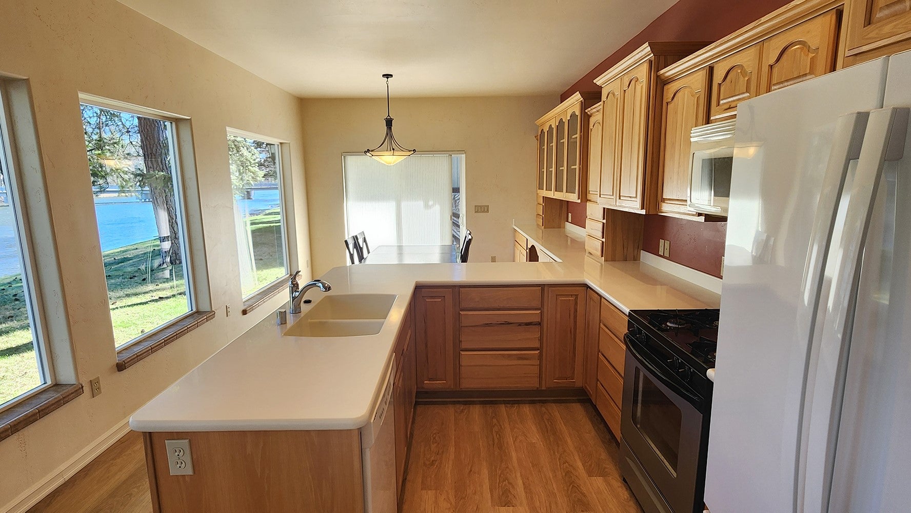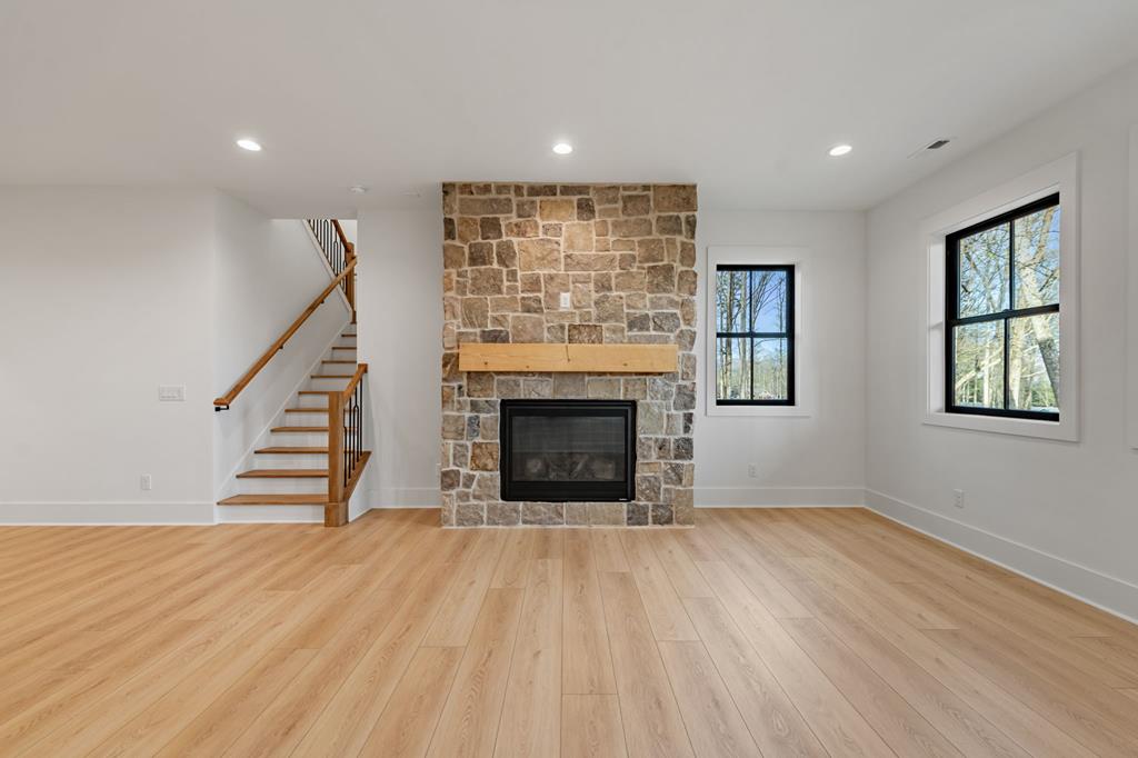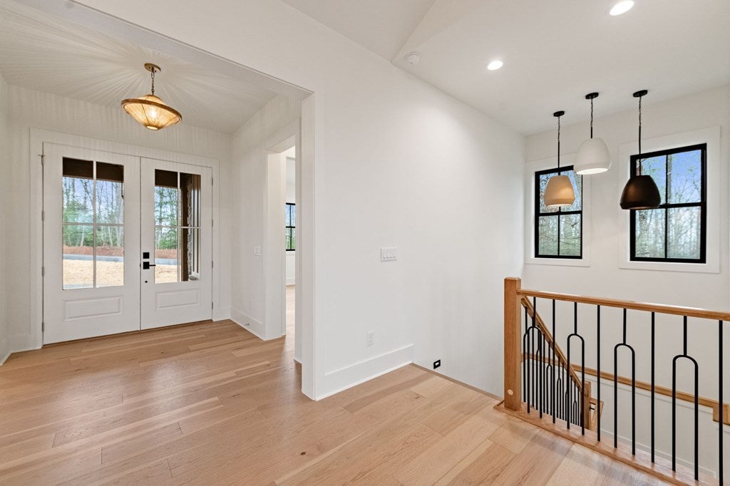 Move-in-ready custom-built 4BR/3BA home on Lower Prior Lake, offering over 3,400 sq ft of thoughtfully designed living space, featuring a walkout lower level and abundant natural light throughout.The main floor showcases white oak-washed hardwood flooring and an open staircase with custom railings and glass inserts, creating a clean, modern feel.