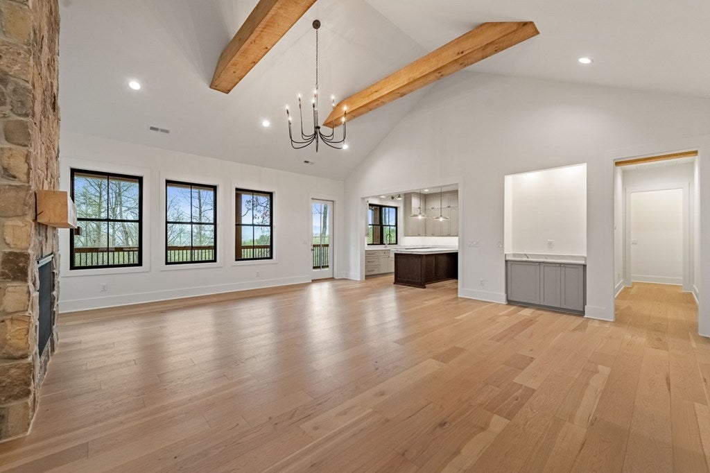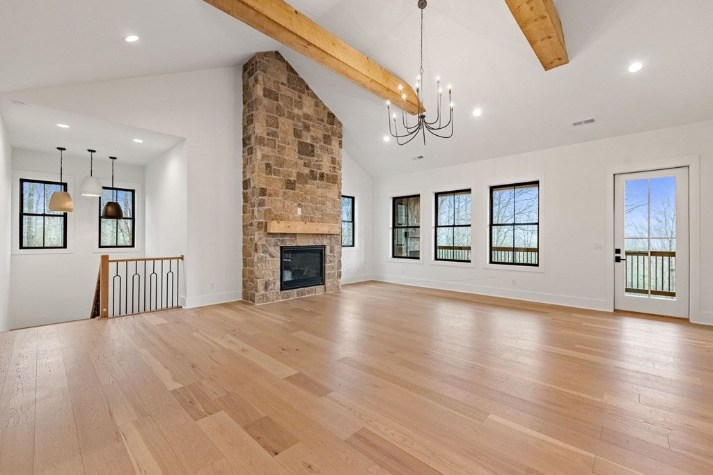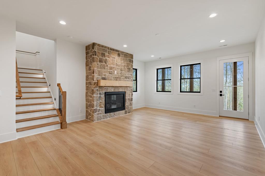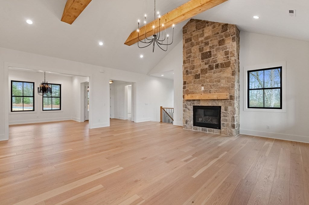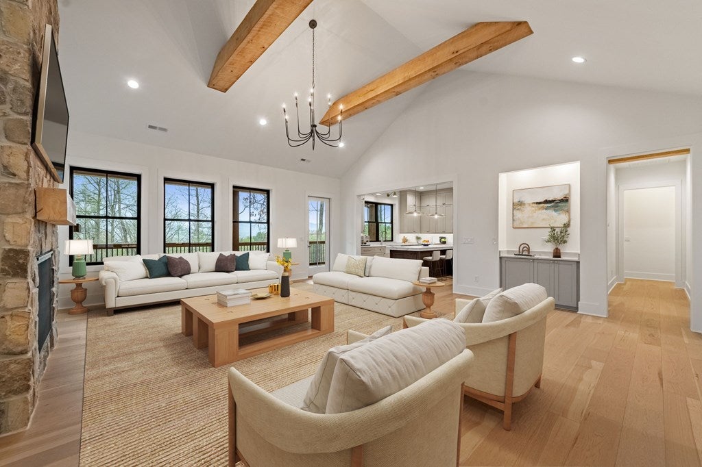 This exceptional new construction home seamlessly blends Old World European charm with modern luxury in the gated Highland Park community. Just minutes from downtown Blairsville, it offers a rare combination of privacy, convenience, and refined mountain living in a highly sought-after neighborhood. Featuring 4 bedrooms and 4.5 baths, the home boasts sweeping layered mountain views, a three-car garage, and an impressive array of high-end upgrades including a GE Caf appliance package, 10-foot ceilings, 8-foot solid core doors, a Trane dual fuel HVAC system, and an Ecobee thermostat system. Three beautifully crafted stone gas fireplaces add warmth and character, while two expansive outdoor decks provide the perfect setting to take in the breathtaking sprawling mountain views. The main level features a spacious primary suite designed as a private retreat, complete with a walk-in closet, soaking tub, and separate water closet. An additional bedroom on the main level offers flexibility for guests or a home office. The well-appointed laundry room is designed for a front-loading washer and dryer and includes abundant cabinetry for optimal storage. The lower level is thoughtfully designed for both comfort and versatility, offering two guest bedroomseach with its own en-suite batha second living area, full kitchenette, additional laundry room, and multiple flex spaces ideal for a future theater, gym, game room, or bunk room. Built with modern convenience in mind, the home is prewired for a whole-house generator and includes connections for an EV charger and hot tub. Residents enjoy access to outstanding lakeside community amenities, including an infinity-edge pool, fitness center, clubhouse with event space, movie theater, childrens playroom, kayak launch, lake access, and optional summer boat slip rentals. Listing agent holds an ownership interest in the property.