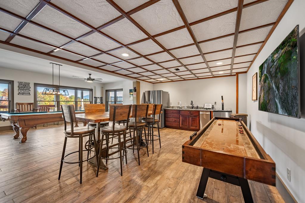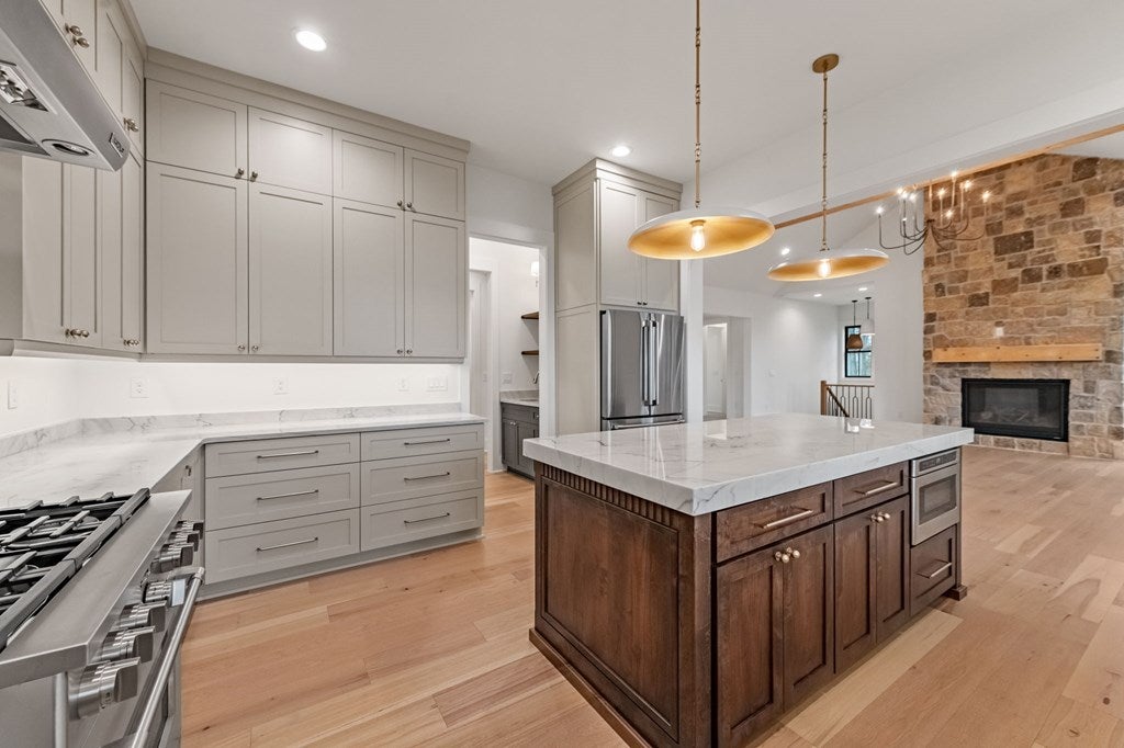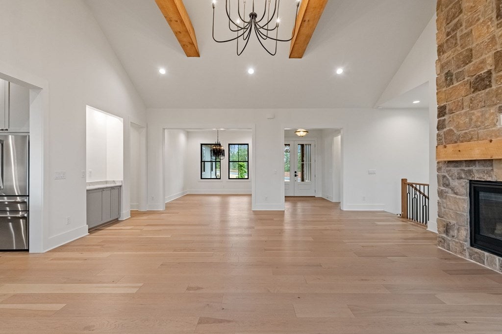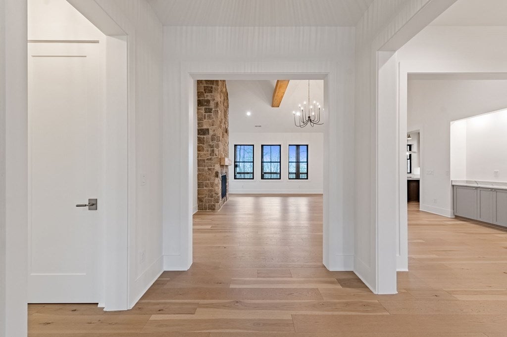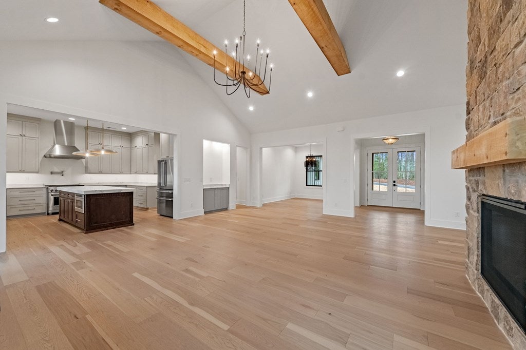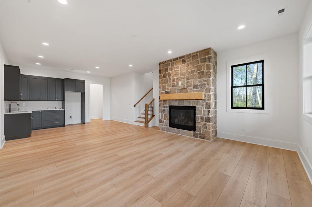 This exceptional new construction home seamlessly blends Old World European charm with modern luxury in the gated Highland Park community. Just minutes from downtown Blairsville, it offers a rare combination of privacy, convenience, and refined mountain living in a highly sought-after neighborhood. Featuring 4 bedrooms and 4.5 baths, the home boasts sweeping layered mountain views, a three-car garage, and an impressive array of high-end upgrades including a GE Caf appliance package, 10-foot ceilings, 8-foot solid core doors, a Trane dual fuel HVAC system, and an Ecobee thermostat system. Three beautifully crafted stone gas fireplaces add warmth and character, while two expansive outdoor decks provide the perfect setting to take in the breathtaking sprawling mountain views. The main level features a spacious primary suite designed as a private retreat, complete with a walk-in closet, soaking tub, and separate water closet. An additional bedroom on the main level offers flexibility for guests or a home office. The well-appointed laundry room is designed for a front-loading washer and dryer and includes abundant cabinetry for optimal storage. The lower level is thoughtfully designed for both comfort and versatility, offering two guest bedroomseach with its own en-suite batha second living area, full kitchenette, additional laundry room, and multiple flex spaces ideal for a future theater, gym, game room, or bunk room. Built with modern convenience in mind, the home is prewired for a whole-house generator and includes connections for an EV charger and hot tub. Residents enjoy access to outstanding lakeside community amenities, including an infinity-edge pool, fitness center, clubhouse with event space, movie theater, childrens playroom, kayak launch, lake access, and optional summer boat slip rentals. Listing agent holds an ownership interest in the property.